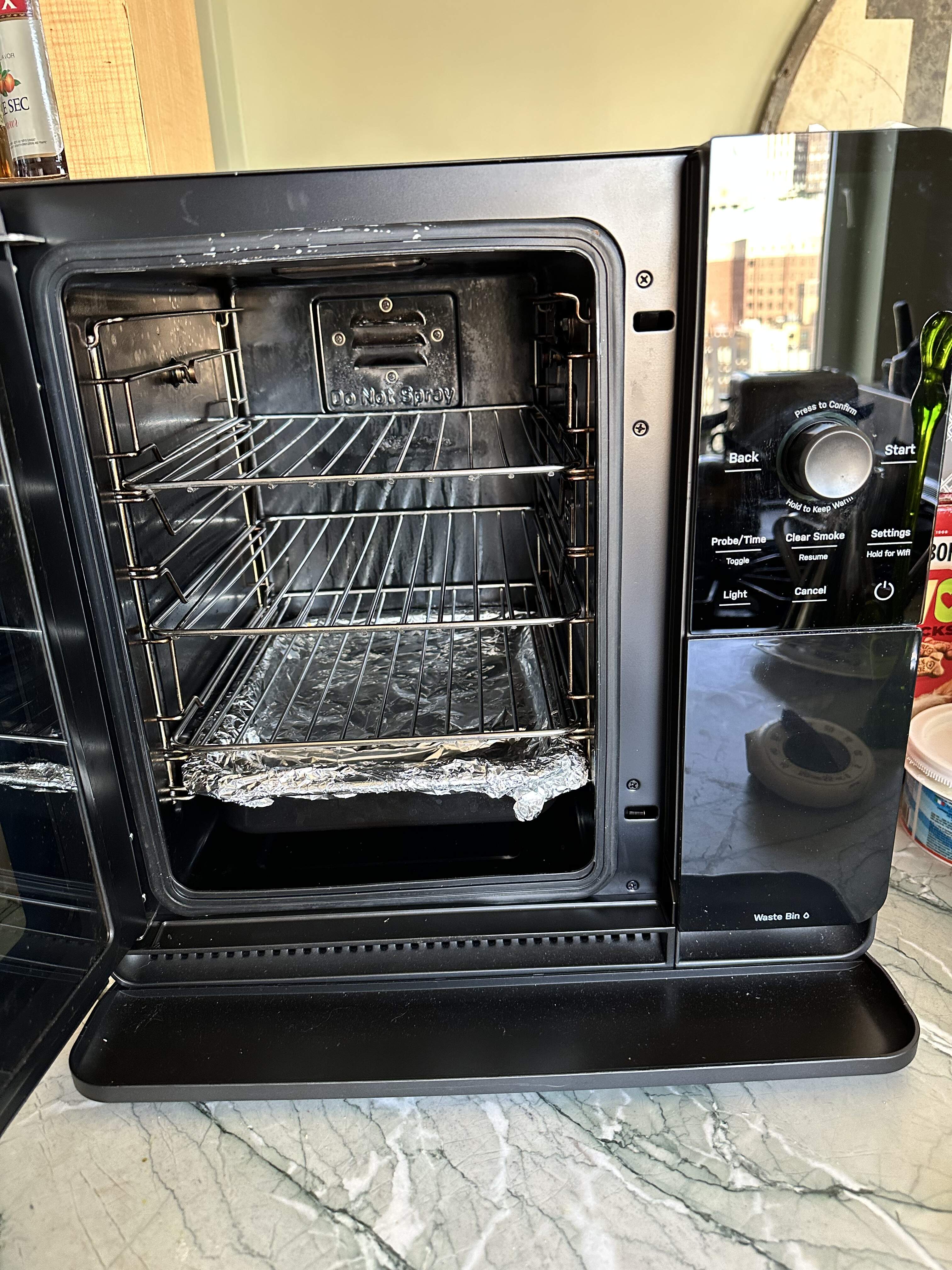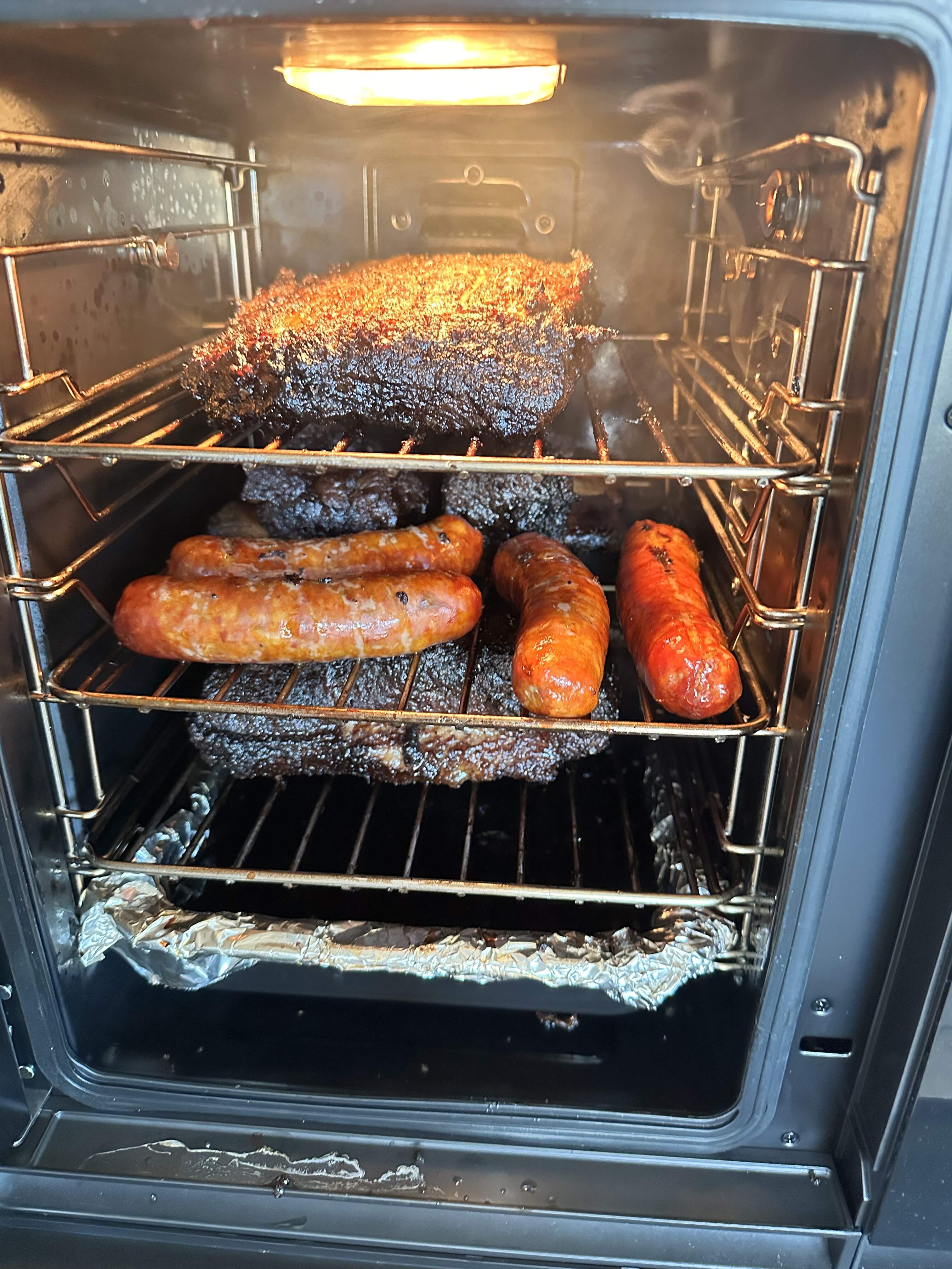 The end of my first try. Outcome so so. The temperature and time I used was based on my outdoor experience. Turns out with such a compact efficient space I overcooked it. It was better than 90% of what you get in NYC but I need to cut back on time and temp.