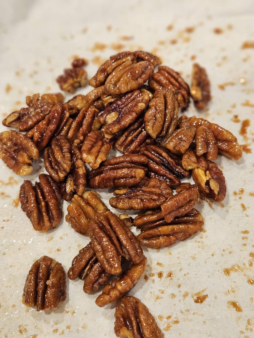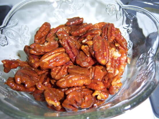 It says "Many years ago I made what I thought was the perfect candied pecan recipe for my tastes, most likely from Gourmet, but have never found the same one again. I have seen and tried many, and have a collection of recipes, but can’t figure out exactly which one I want to make my own. I know I like sweet-salty-and pretty spicy. I like cumin, I like chipotle powder, I like five spice powder for heat. This year I might try ras el hanout, or quatre epices I got in France last June. I don’t make much candy, but I think those who do have a handle on this;