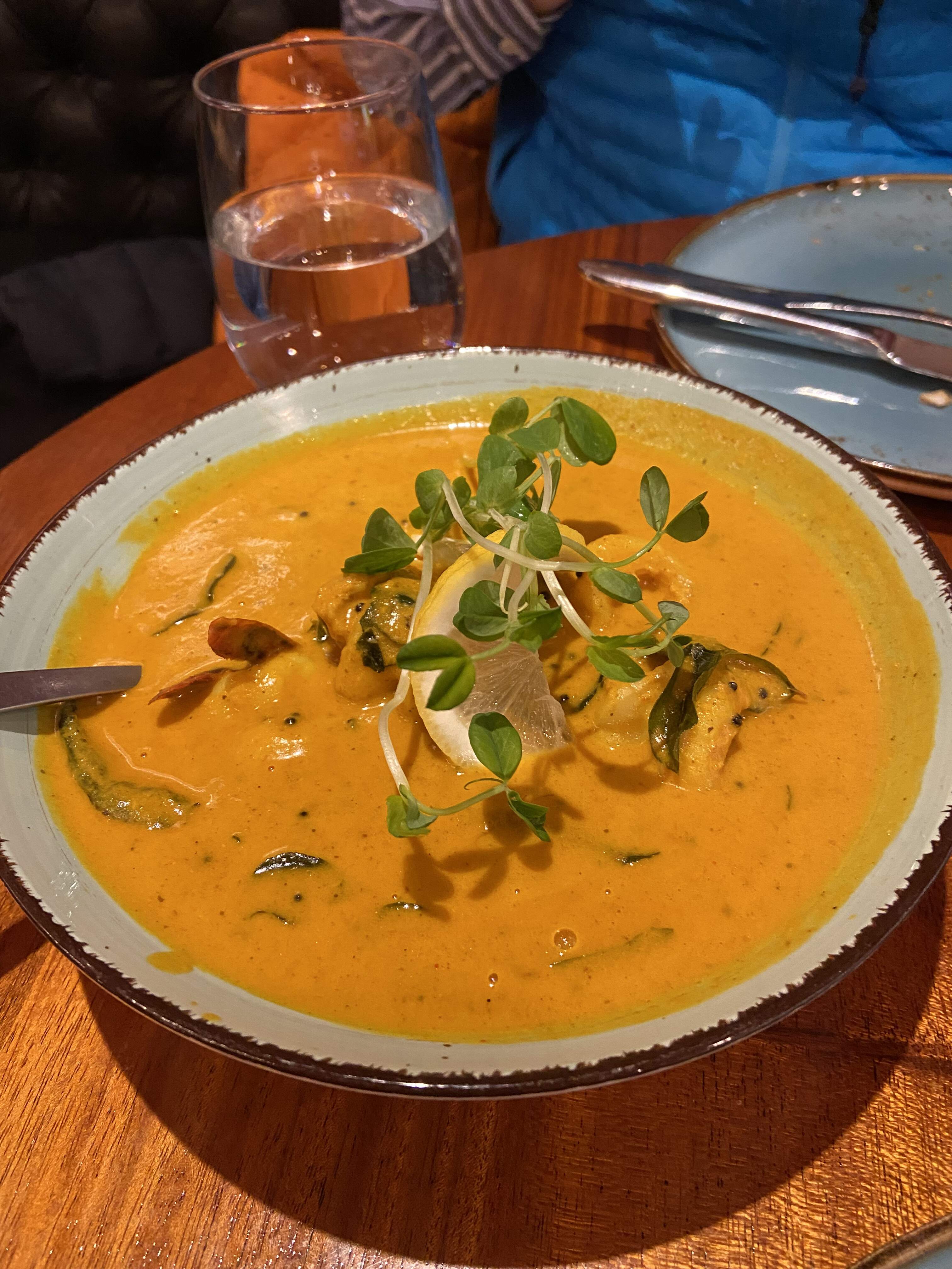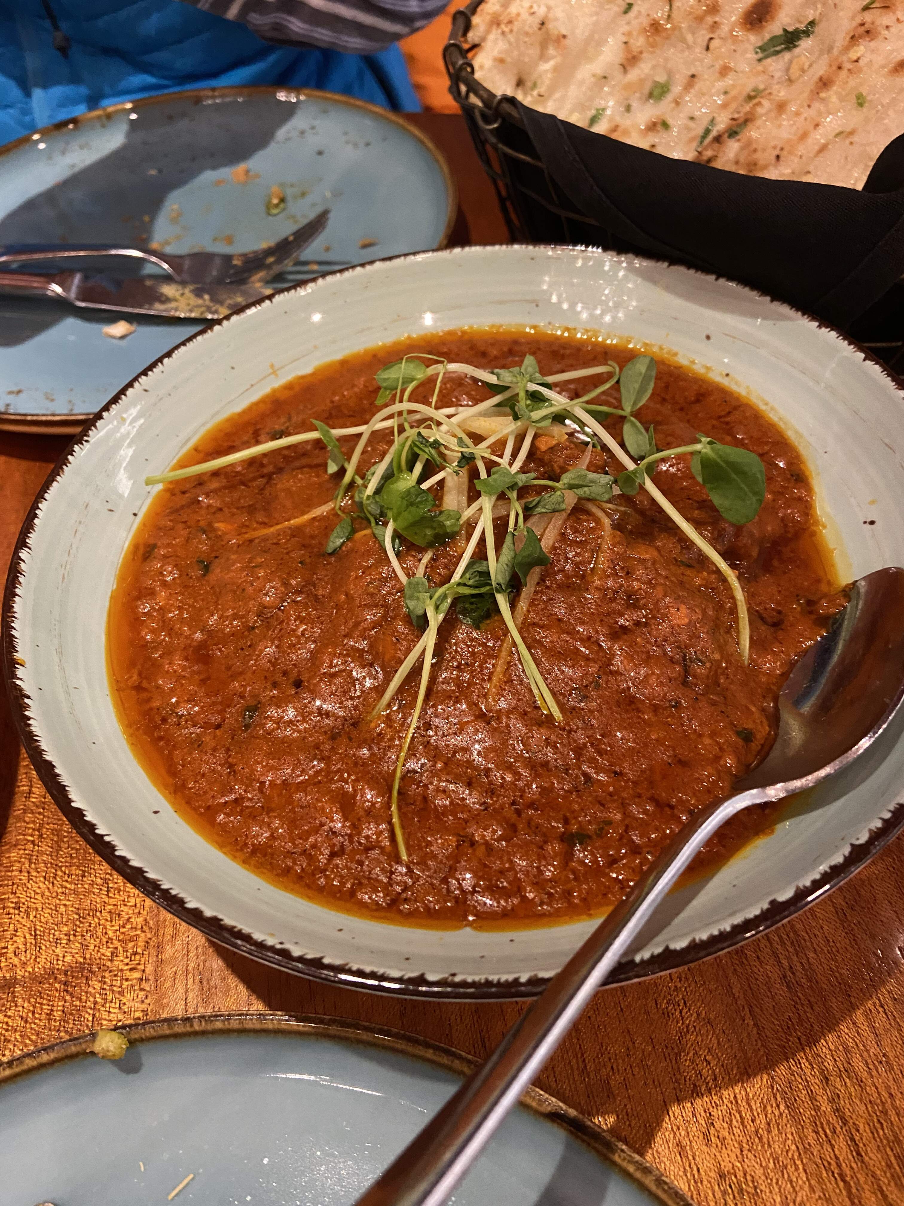 - Goan Prawn Curry: One of my favorite ‘not-overly spiced’ northern style seafood centric curry. Flavourful and balanced creamy sauce using large crunchy tiger prawns. Love their addition of some Okras.
