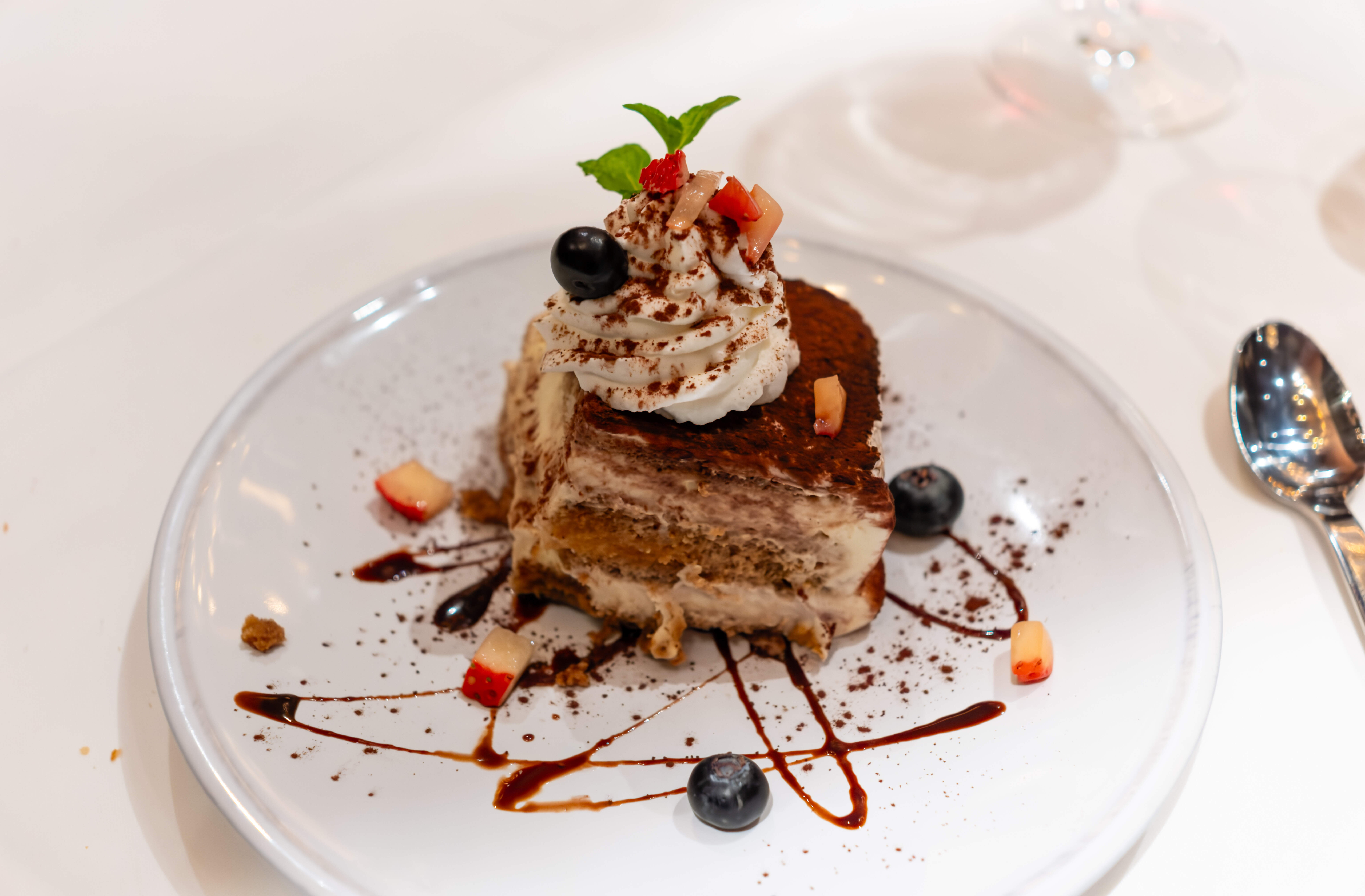 For dessert I had the tiramisu, which was good. It was dressed up with some fruit.