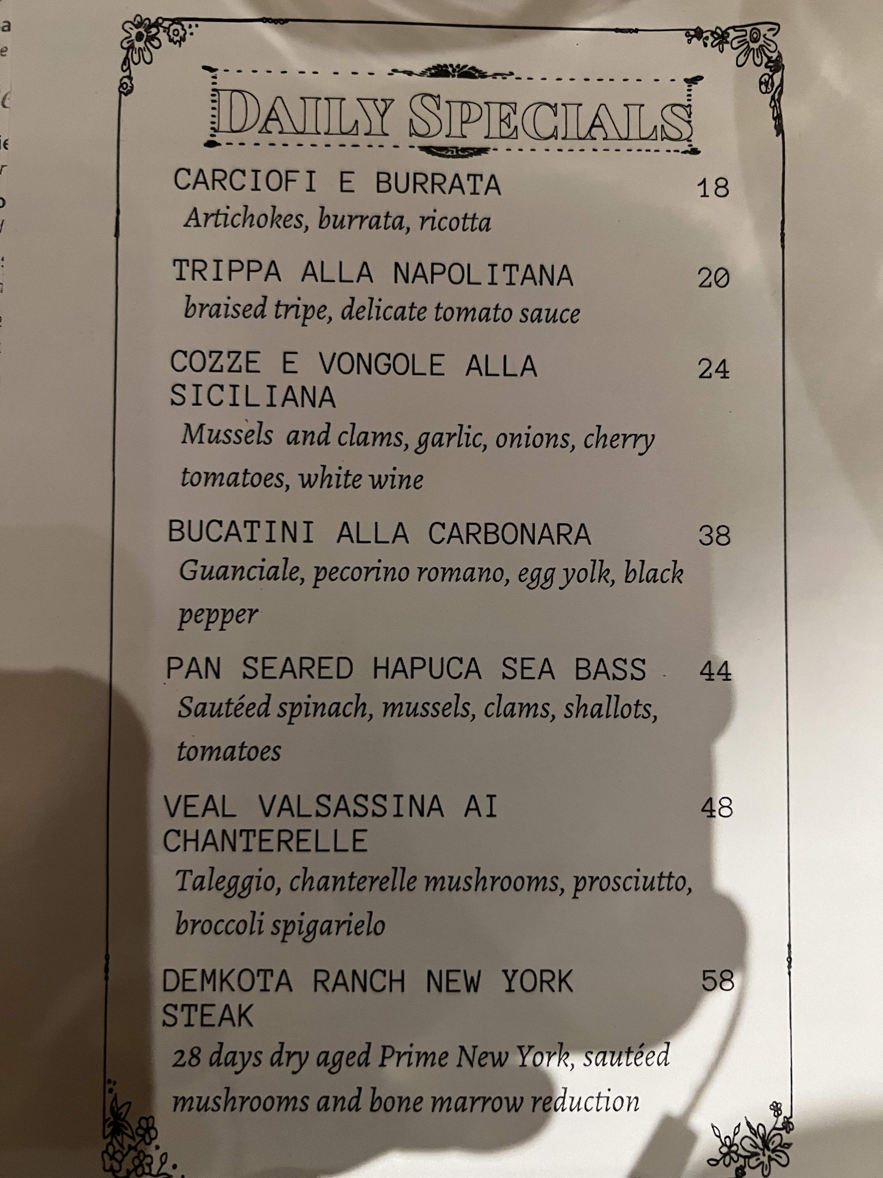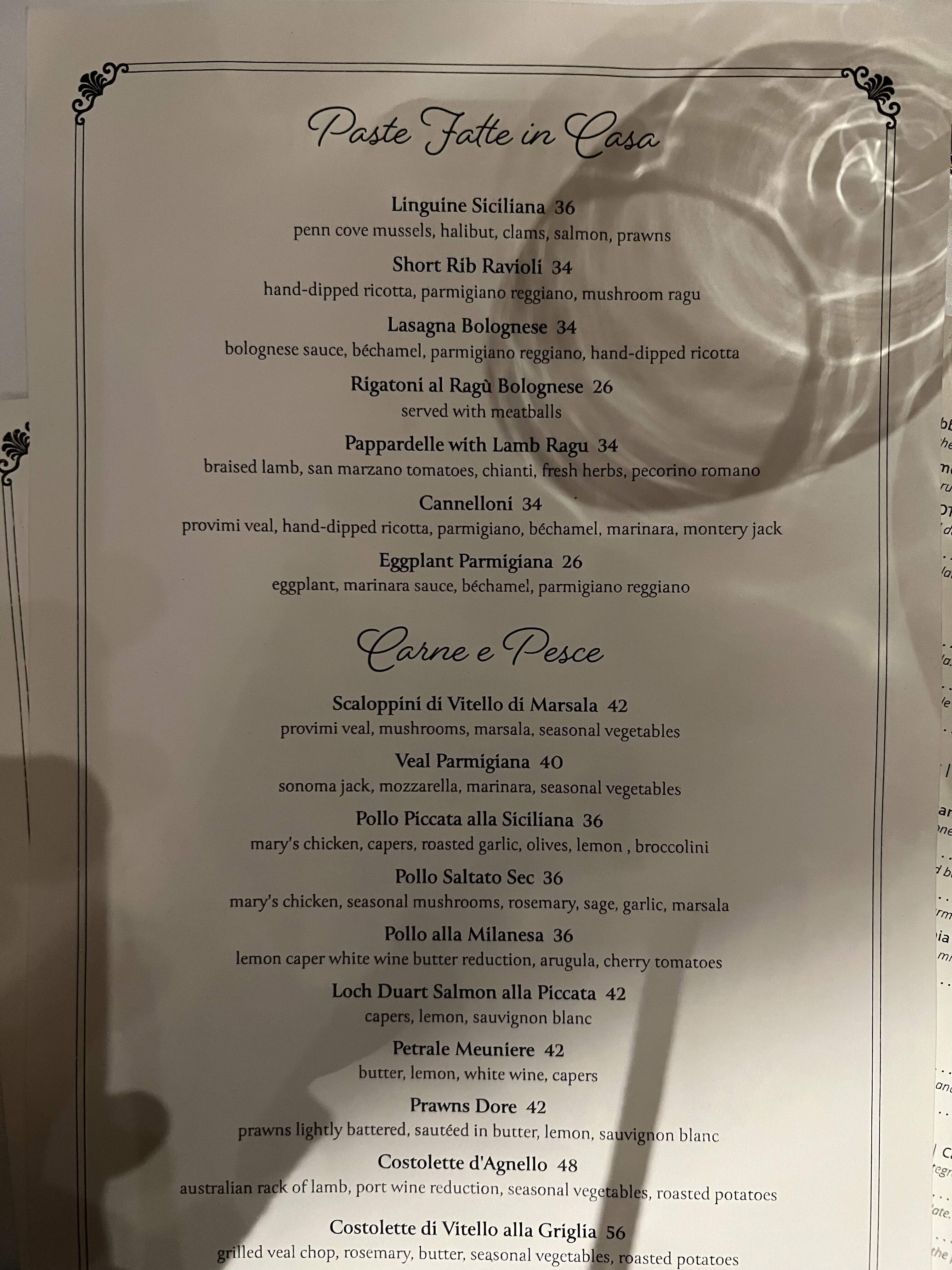 Menus - the spaghetti with meatballs seems to have been replaced with a rigatoni with meatballs.