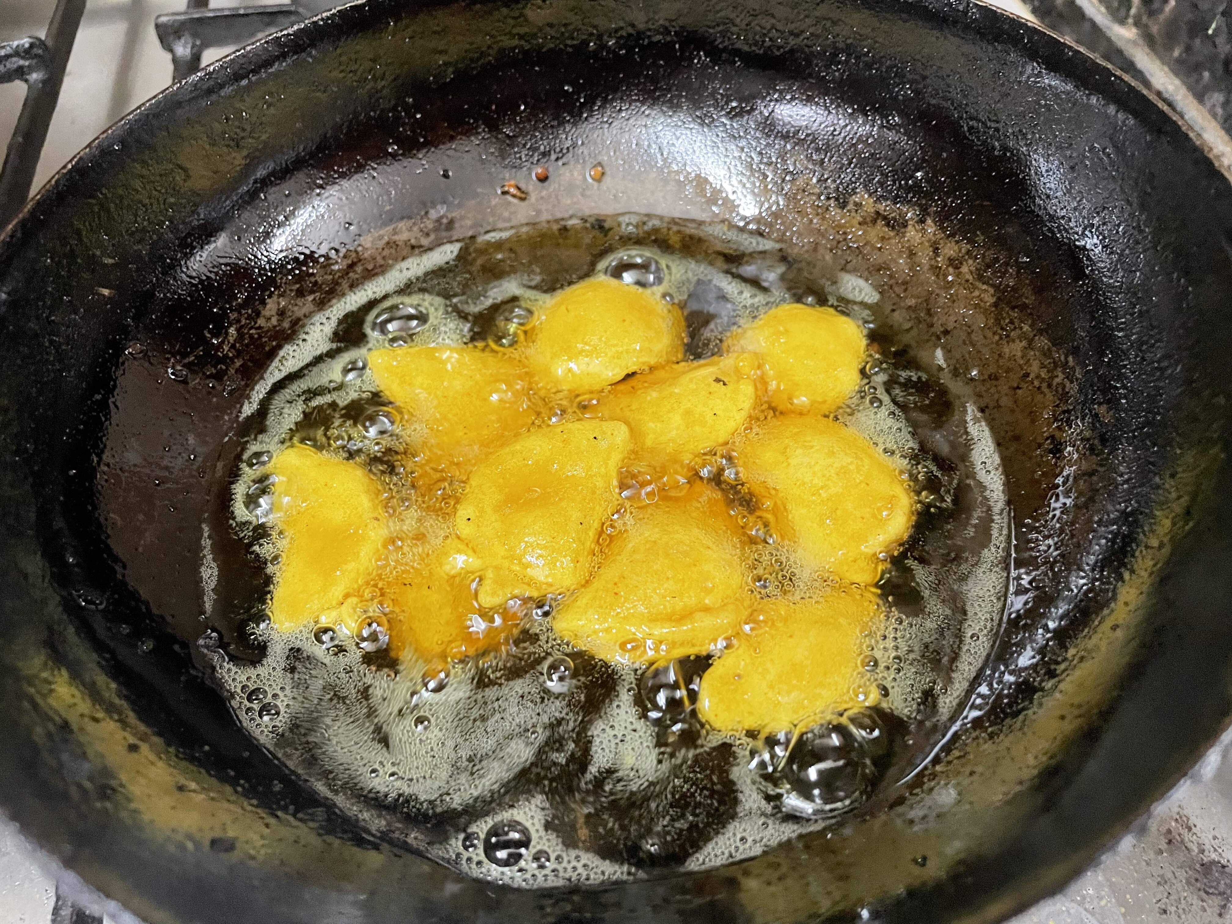And what a Pakoda actually means in these parts vs in the north – these are from yellow moong beans, soaked and ground with aromatics and chillies: