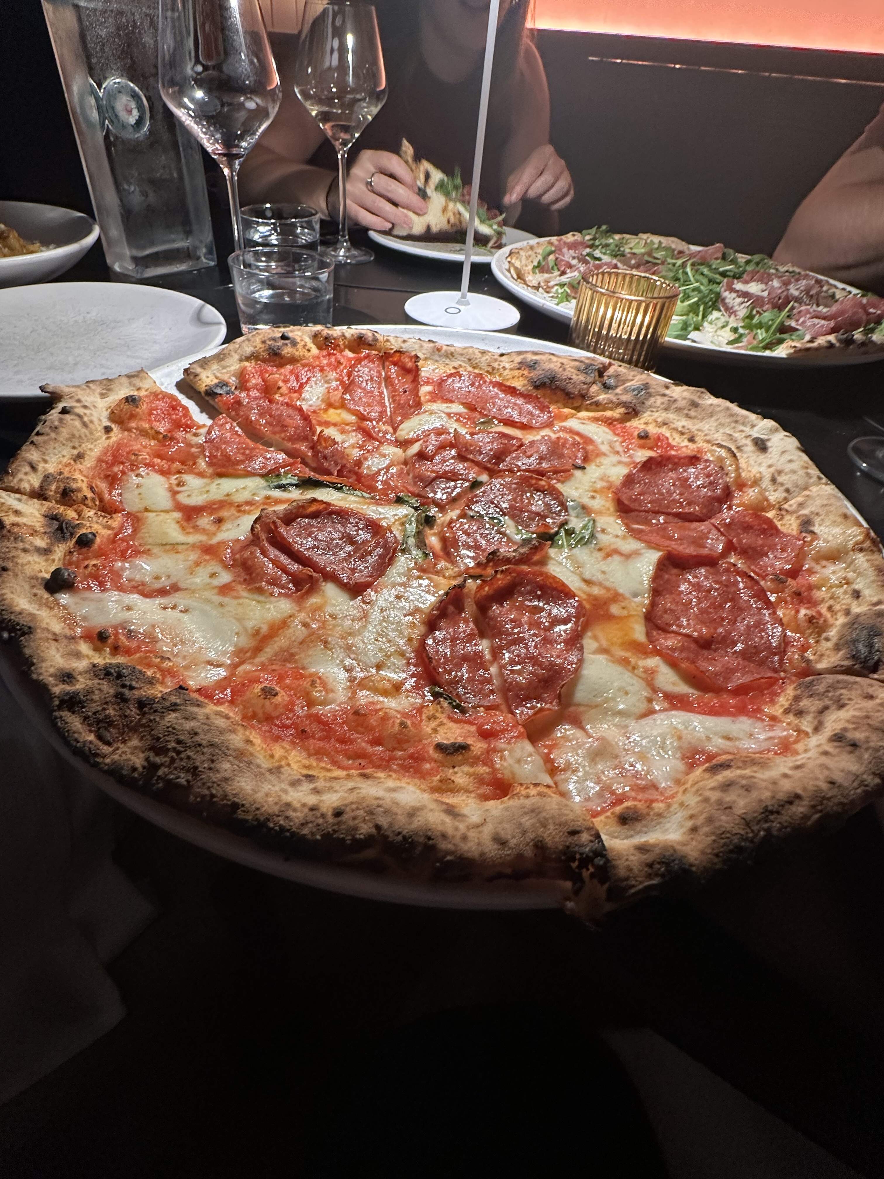 First time, haven’t been to Naples, pizza was big, perhaps 15 inches, sliced, I timed a couple of bakes at 80 seconds. Very good, I prefer song e napule for pizza but thought the pasta, while wonderful at both places, was better here as were the salads and appetizers. I believe this bake represents the old guard neopolitan style while song offers a modern take on the style.