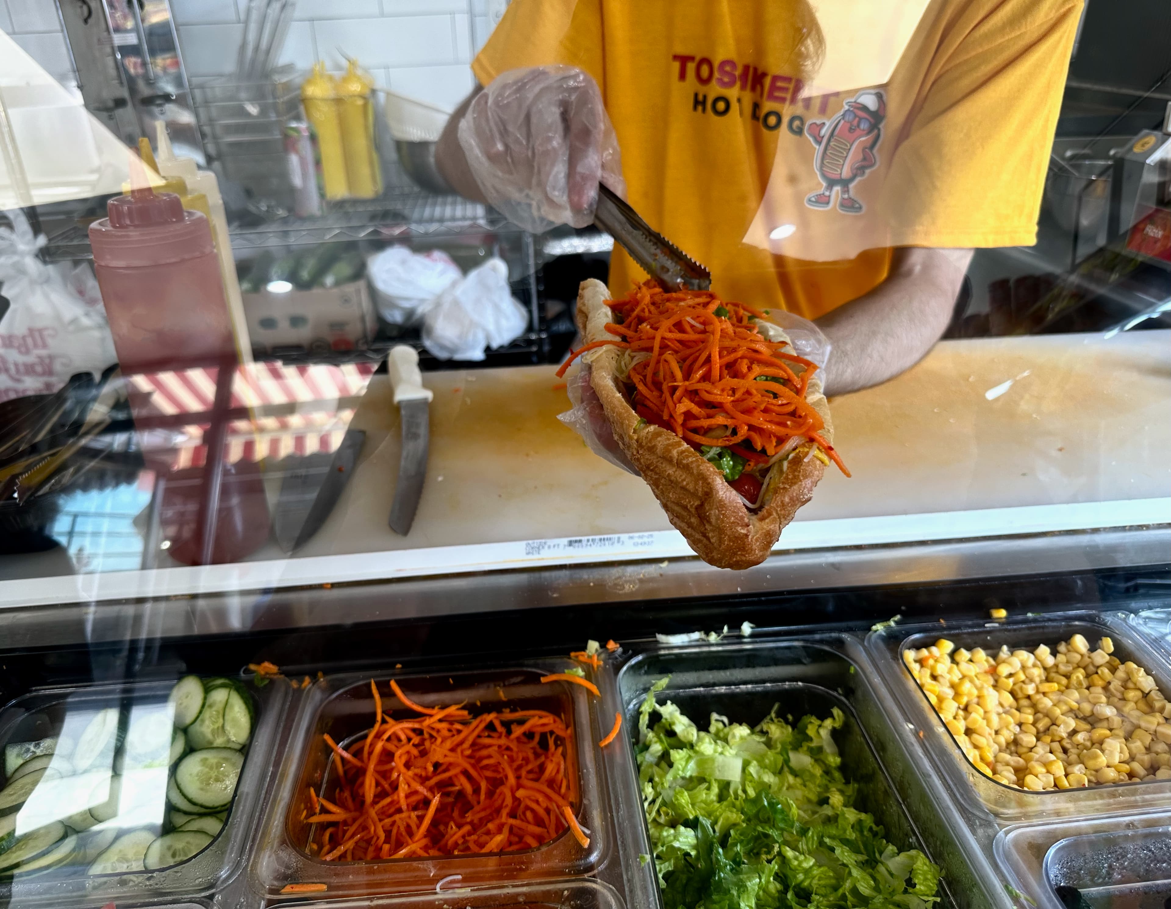 They also happily walked me through the process of assembling an Uzbek hot dog. The in-store menu offers only two options, the “original” and the King Assorty.