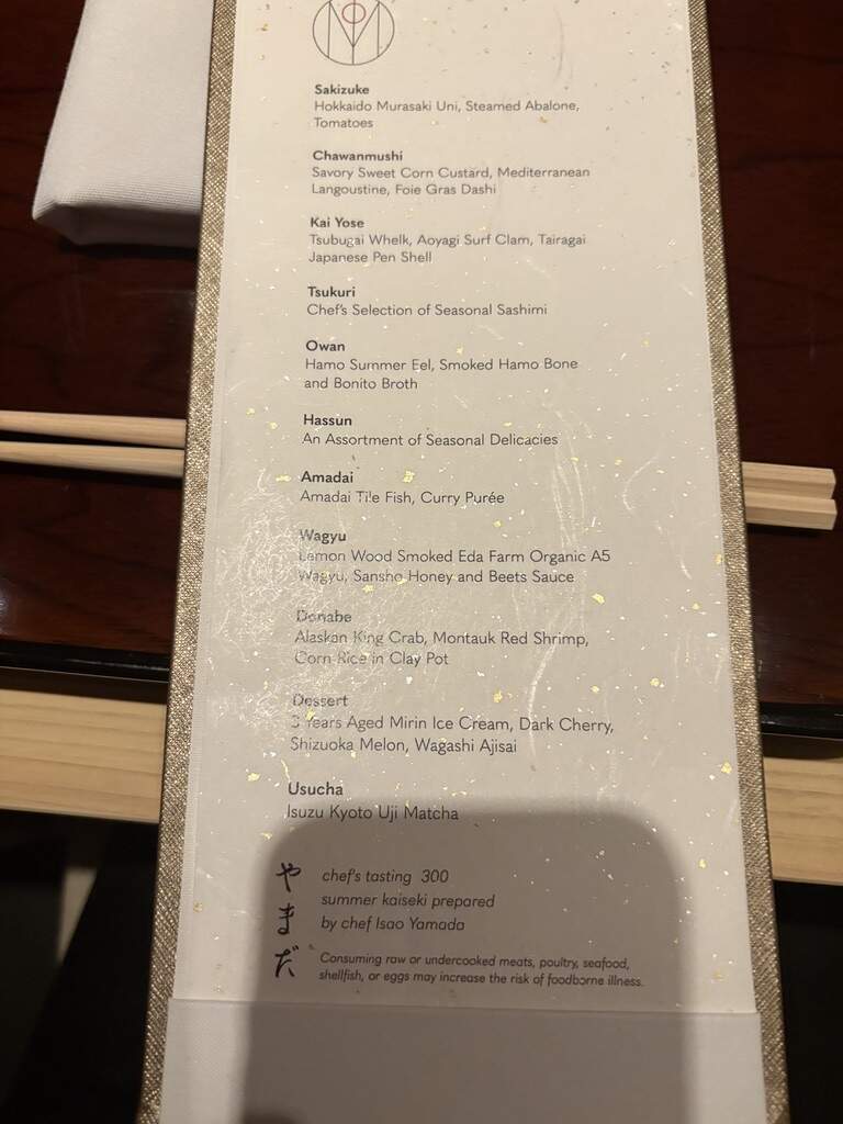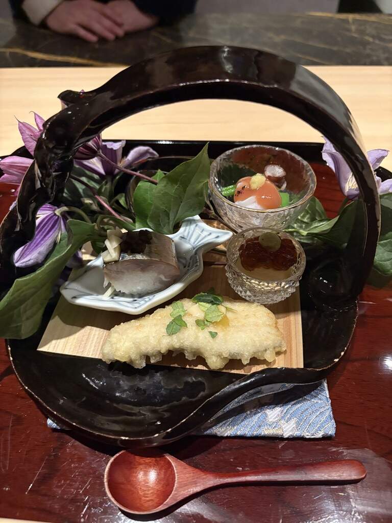 Yamada–small (11 seats, two nightly seatings) kaiseki restaurant in Chinatown. My cousin and I were asked to move from our 8 pm reservation to 5:30 p.m. in August (sorry, I am so behind on even reading the blog!). We ate at the beautiful counter with another couple. It was an extraordinary meal. I worried that it would not remain open till Christmas…