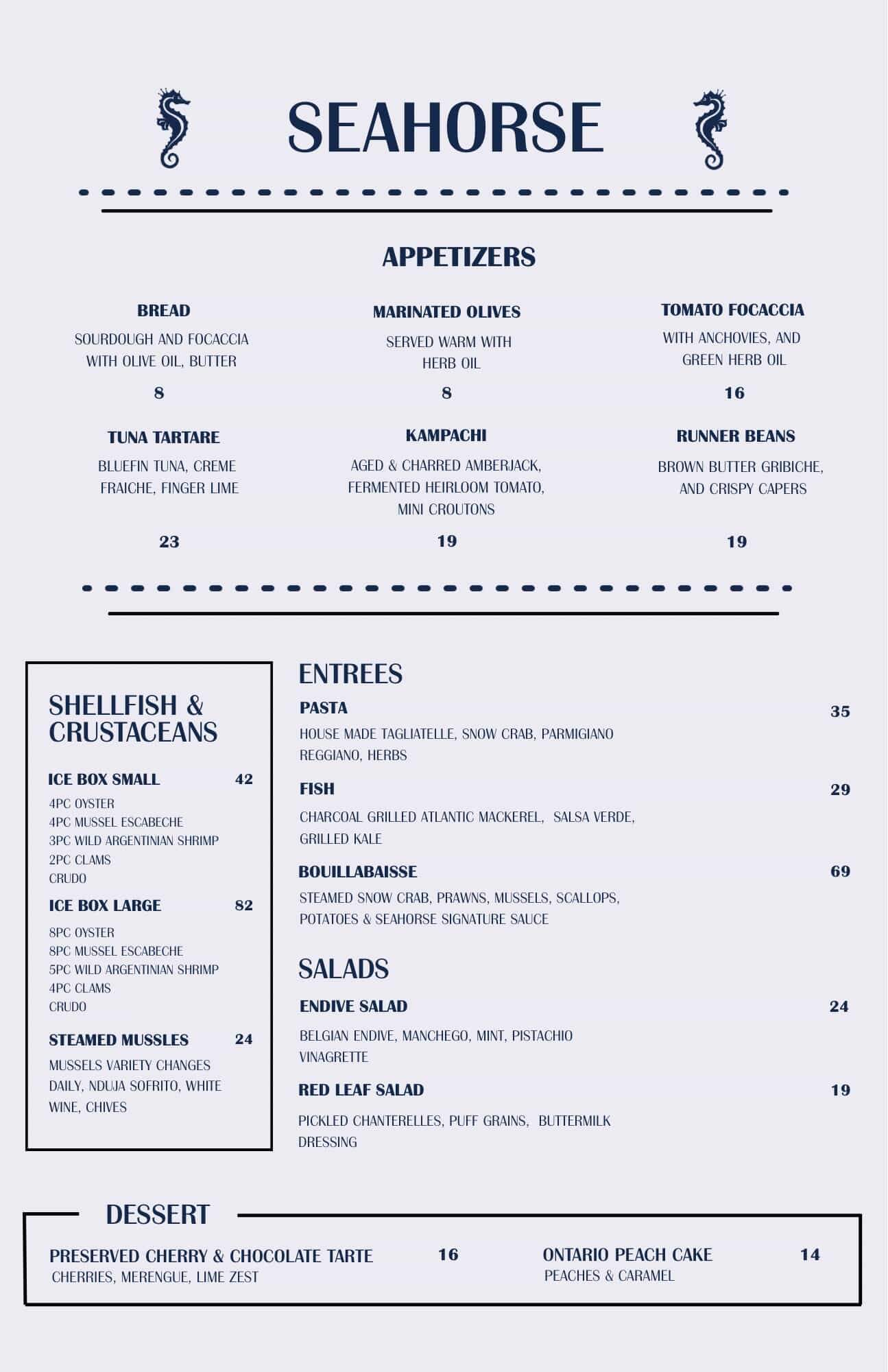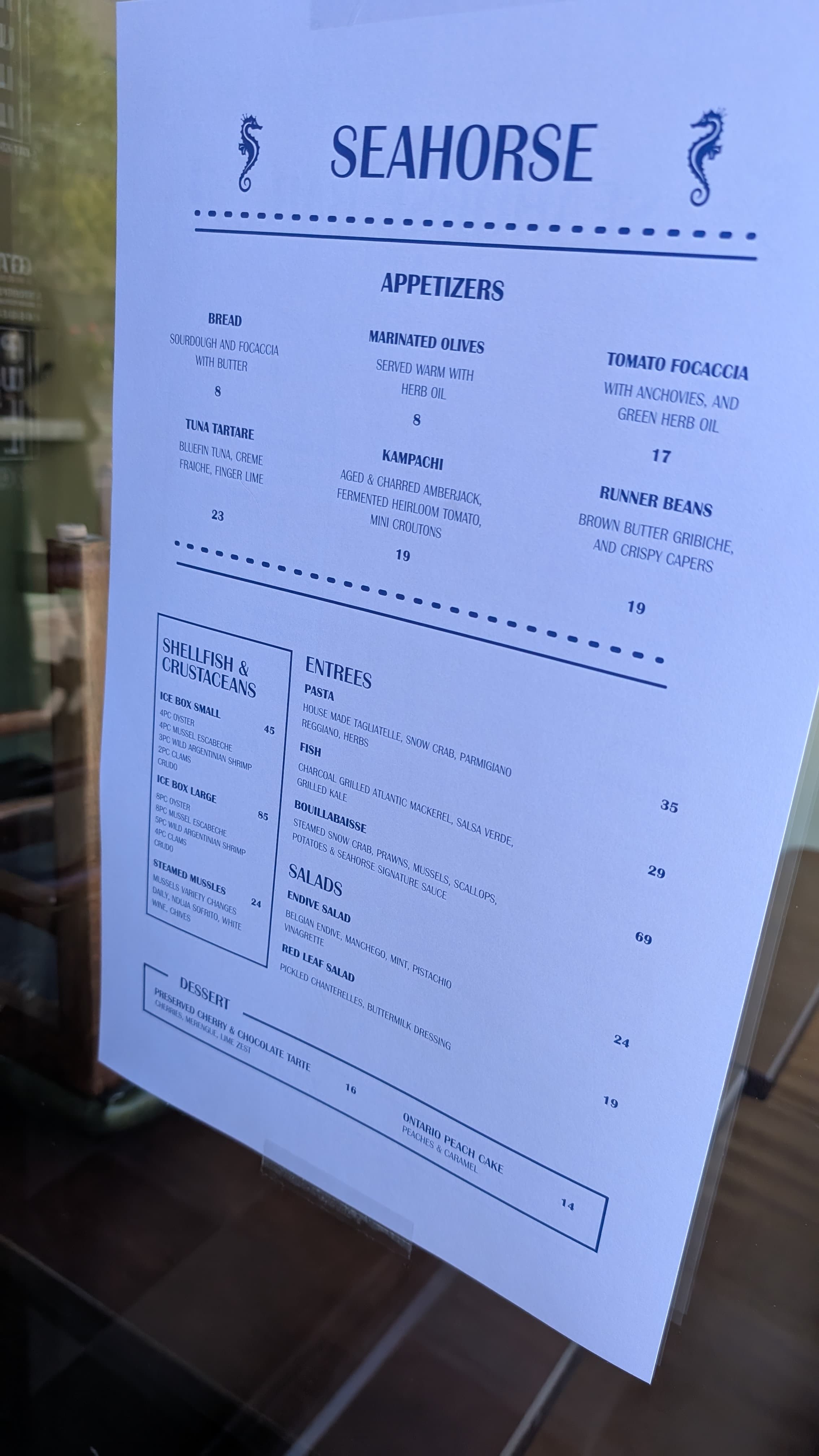 Walked by seahorse today. They do have minimalist website now and a menu posted at the door. Will probably visit soon