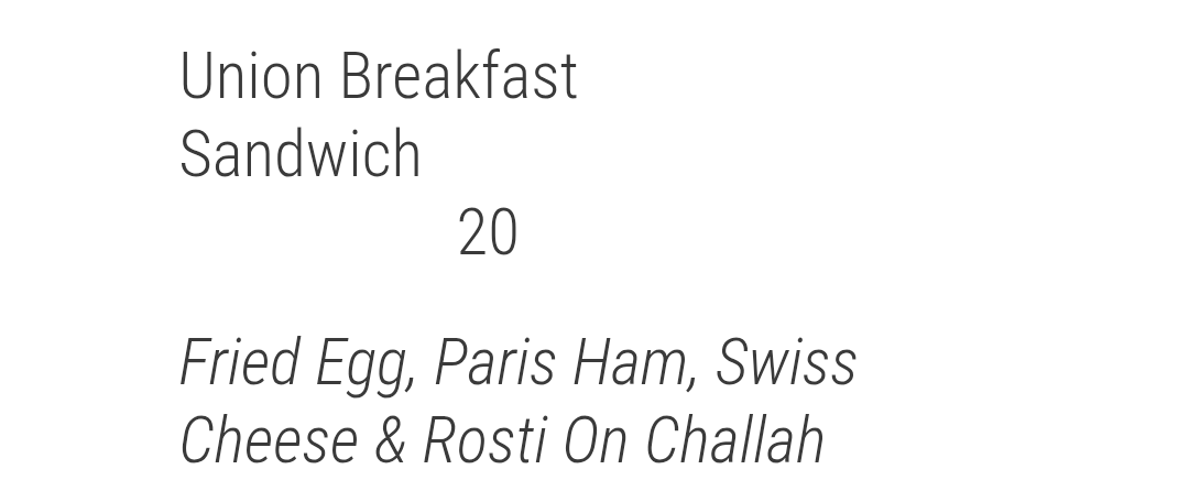 The really good breakfast sandwich at Union, with table service, is still $20.