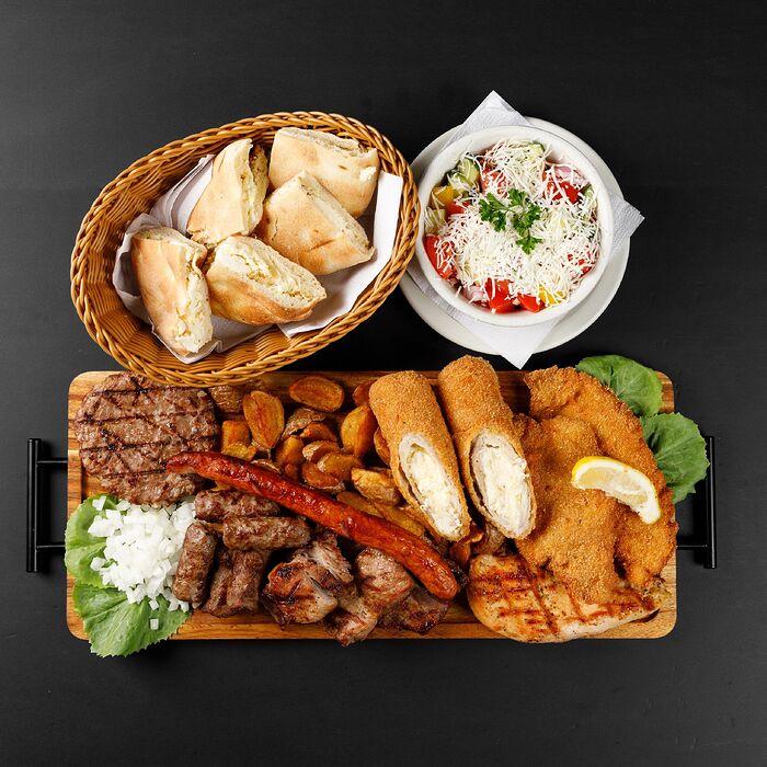It’s a Bosnian-run establishment with a grill, a hot table, and some groceries. There are some tables with seating, as well.