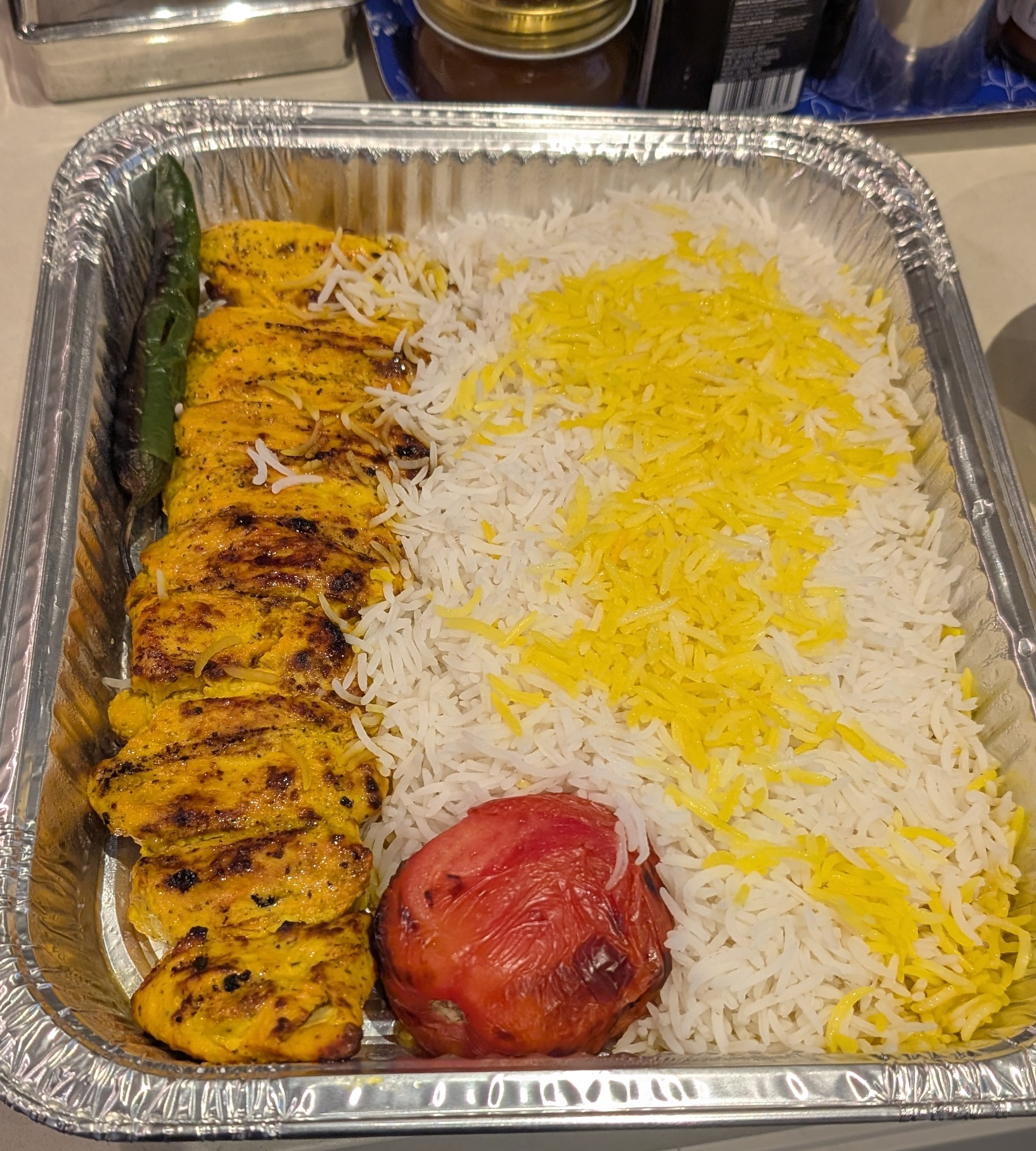 Technically Persian food had a delivery from Shattar Abbas. Good stuff and worth the price premium imo. Jujeh and chicken kobideh are quite good. Not in pic Kashk Bademjan. Hmmm didn’t enjoy that