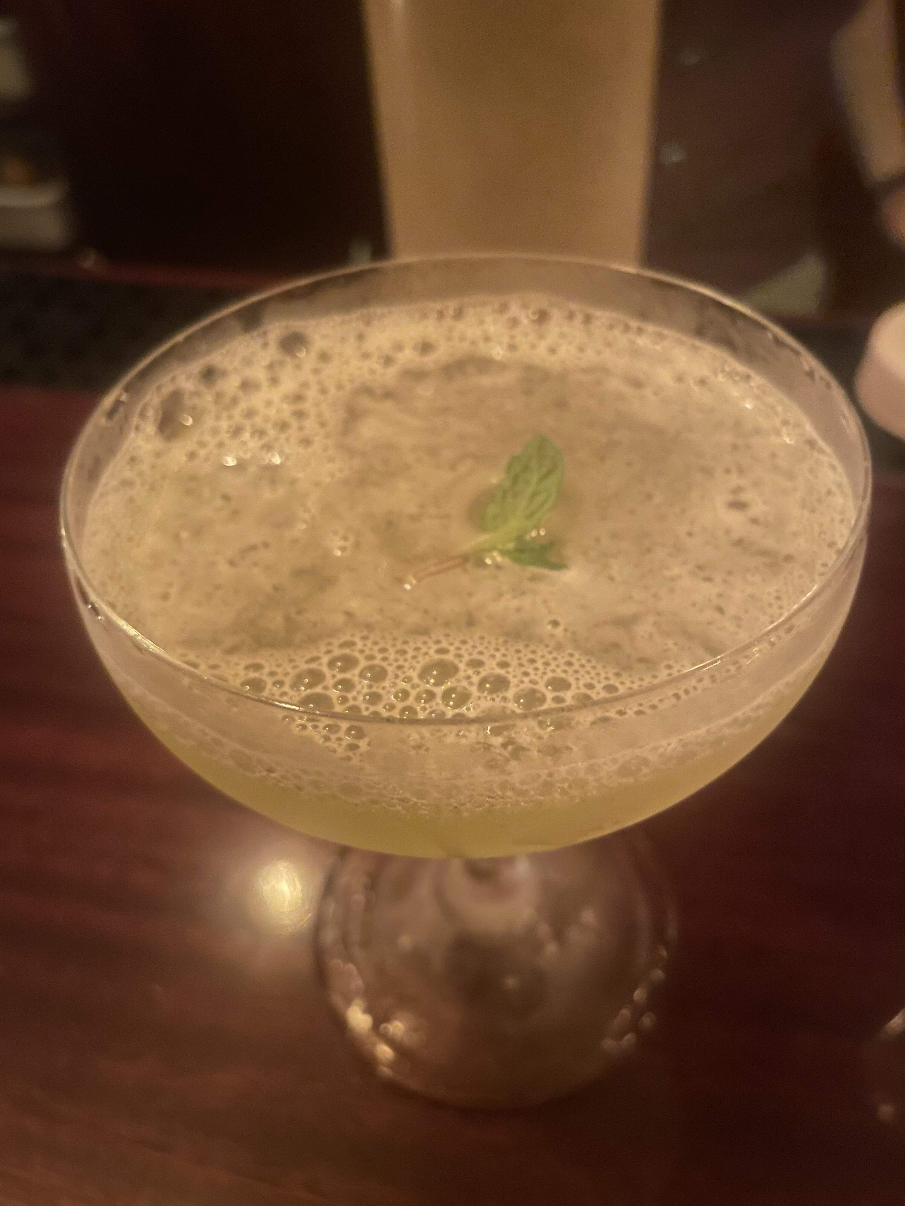 Pagoda - gin, yuzu liqueur, thai basil syrup, lemon, house-made basil oil drops
