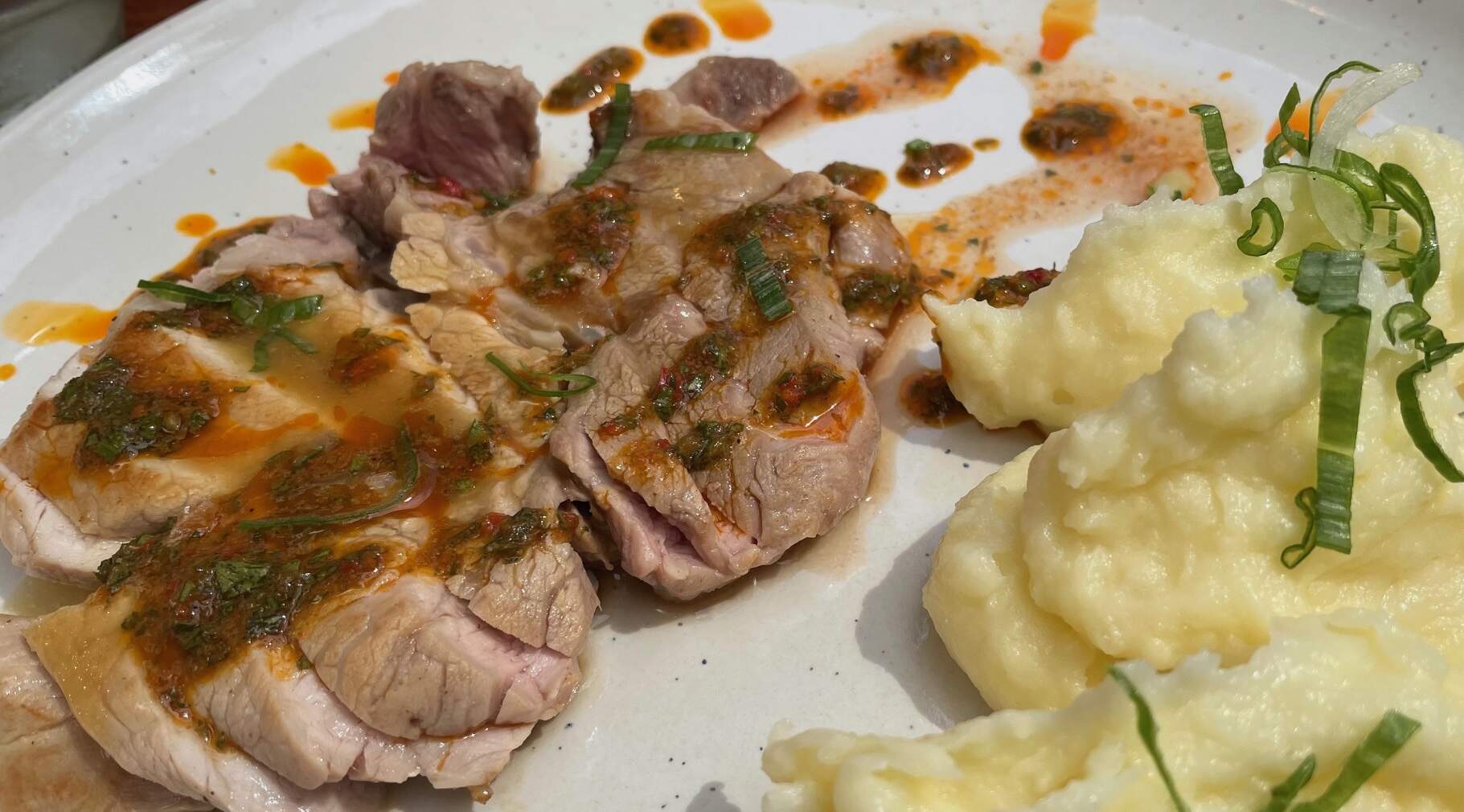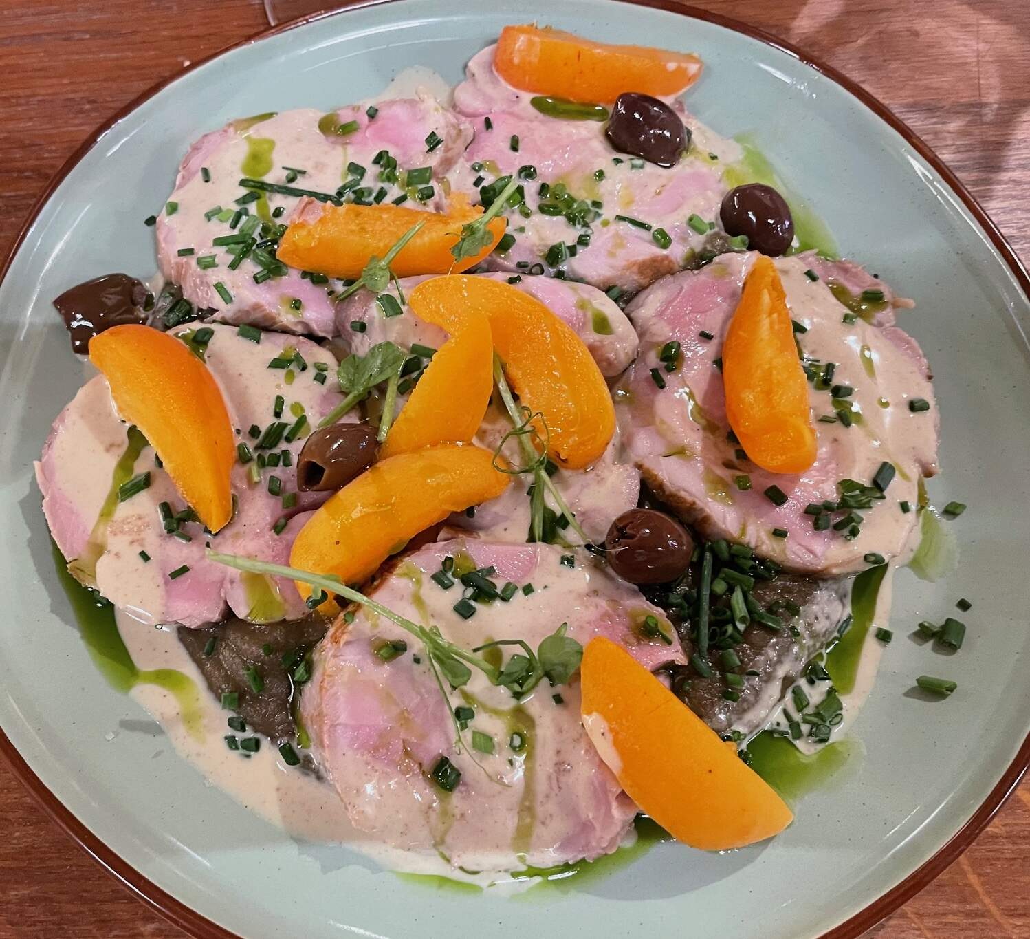 Complan Terra was a find. Its basically a wine cave with very pretty food, including this pork tenderloin cooked pink as was all of the pork I had in France.