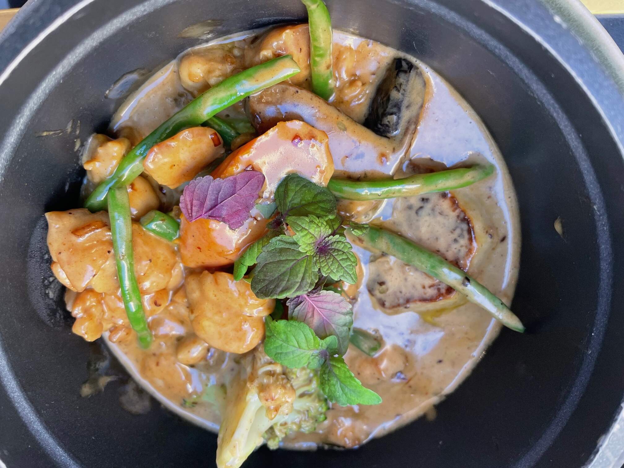 and a simple salad while I indulged in some mi-cuit foie and sweetbreads in a rich mushroom sauce with lots of fresh vegetables.