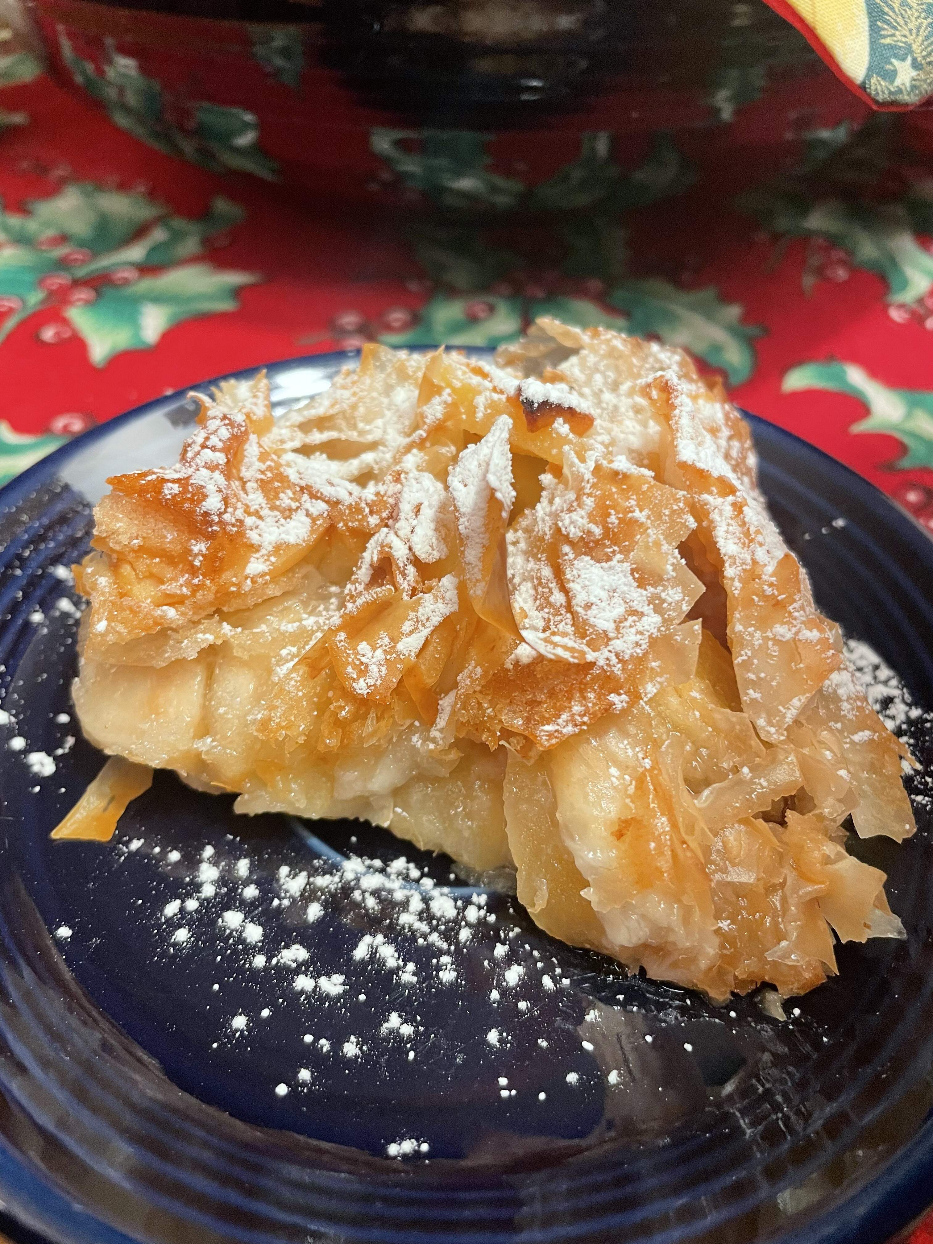 It’s v good, love the apple+prune+marzipan combo. Feels “classic,” which I like. That said, it was too sweet, even without the final dust of icing sugar. I ran to the fridge for the creme fraiche. It was needed.