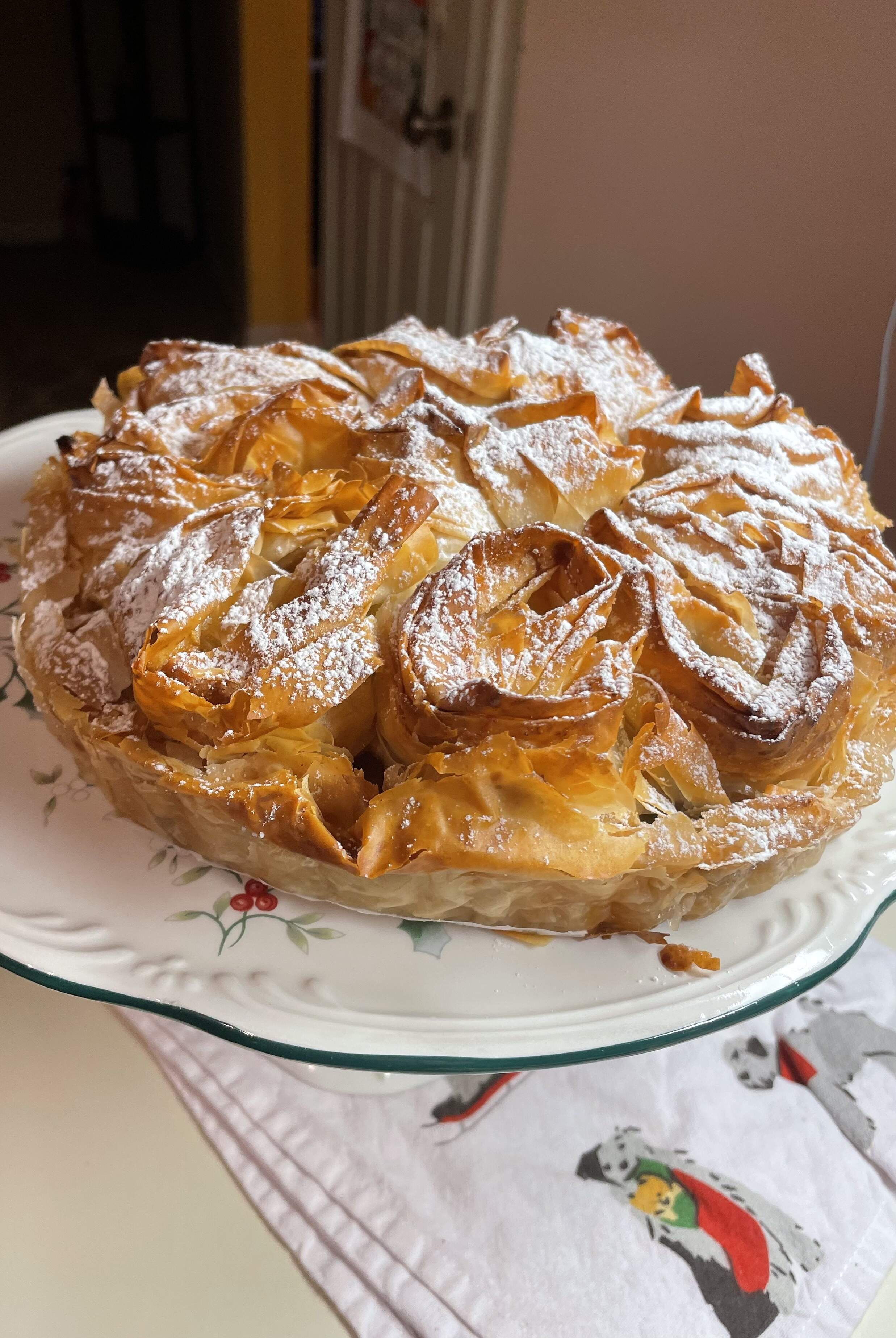 Final bake of the pastis gascon. I loaded up the phyllo this time, and buttered more aggressively.