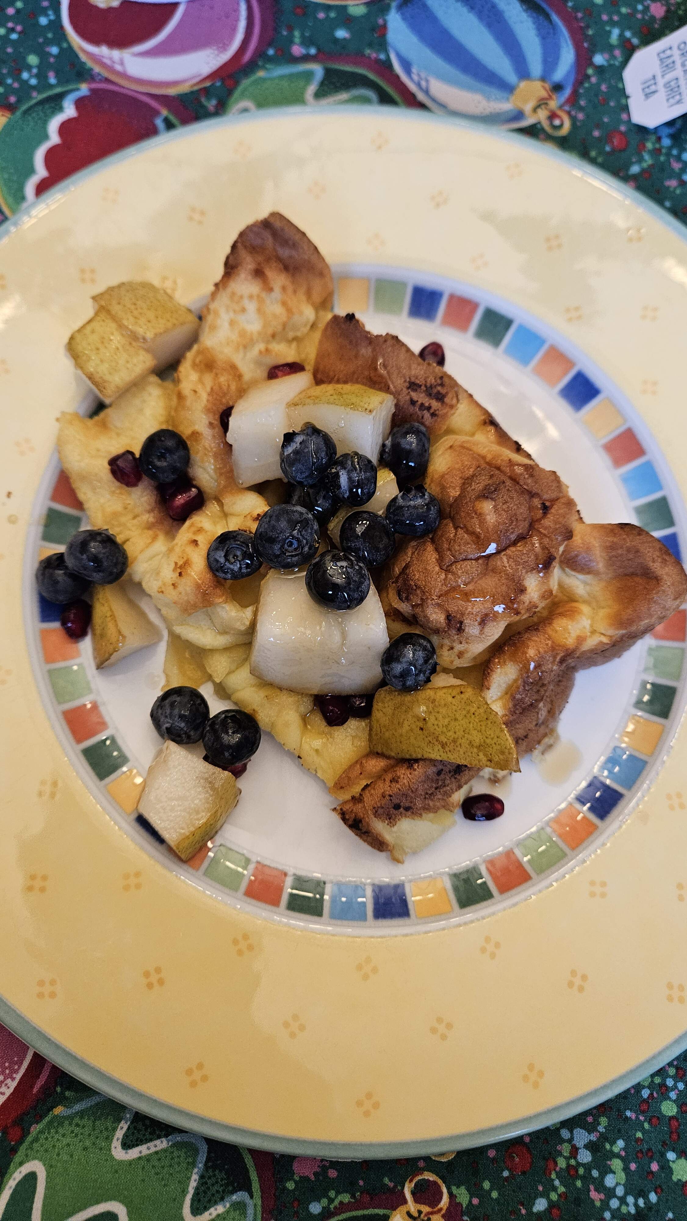 Xmas day breakfast - we usually do overnight French toast but I saw this much simpler recipe, and we threw it together in between present opening. We loved it. Forgot the vanilla, oops.