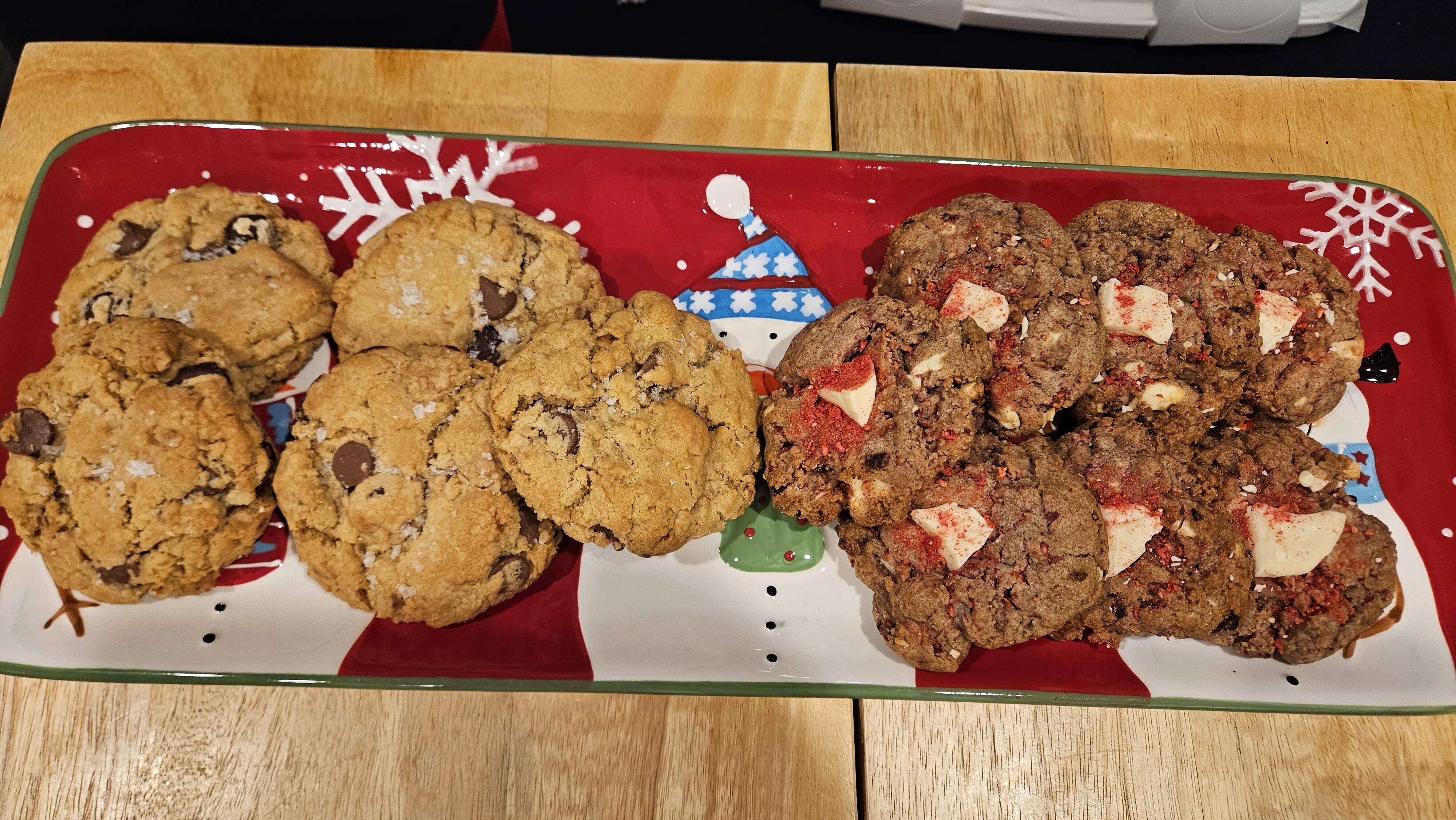 Best laid plans and all that … ended up with three cookies (snickerdoodles, peanut butter, gingersnaps), oatmeal/jam bars (filling of strawberry and cranberry), and buckeye bars. Have the ingredients for the other things I was planning on making but ran out of steam.