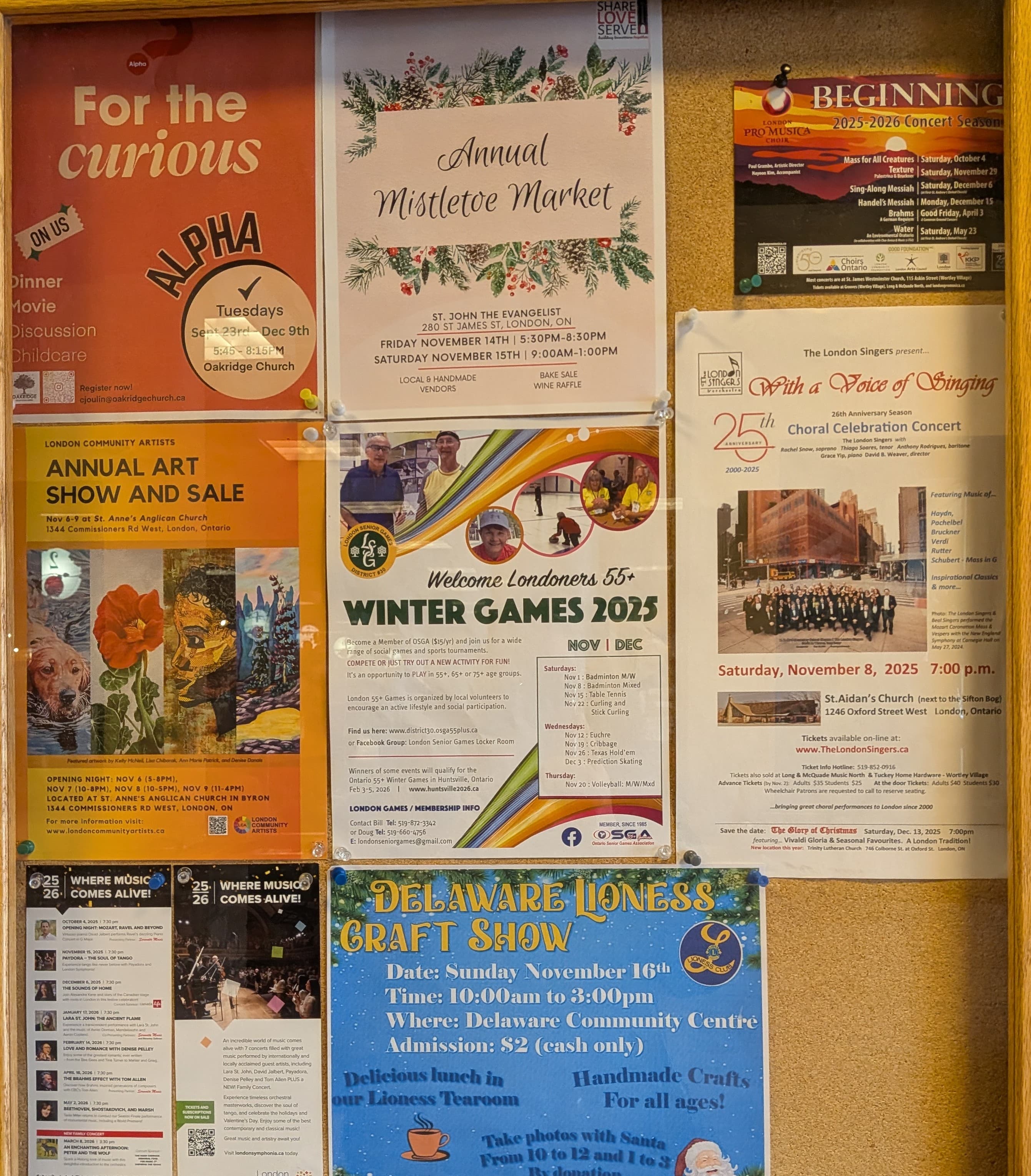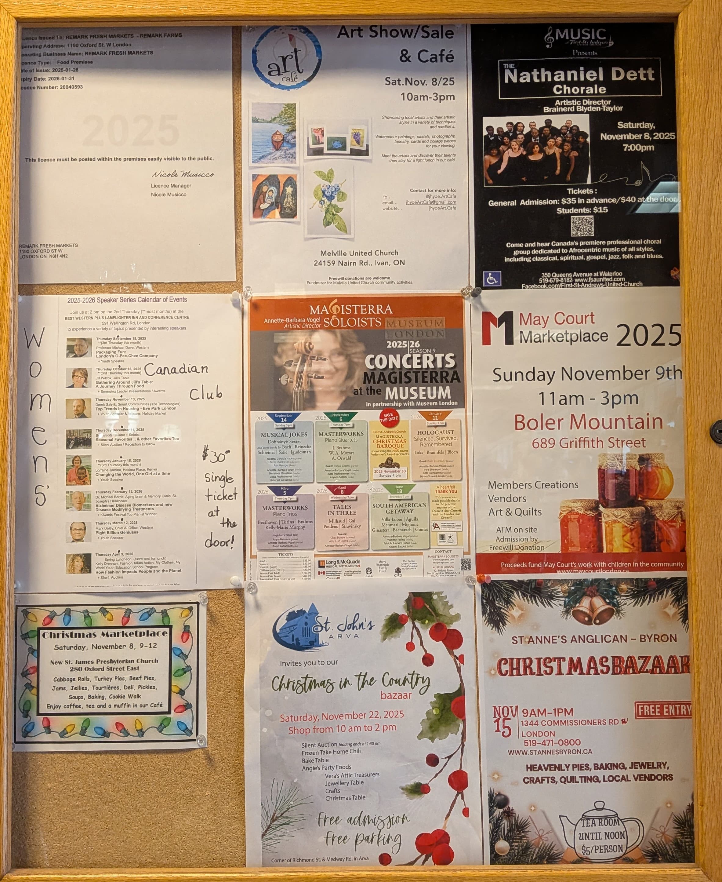 This is from the bulletin board at my local indie grocery store. I have also driven past at least 2 dozen signs advertising upcoming bazaars and bake sales, as well as holiday concerts.
