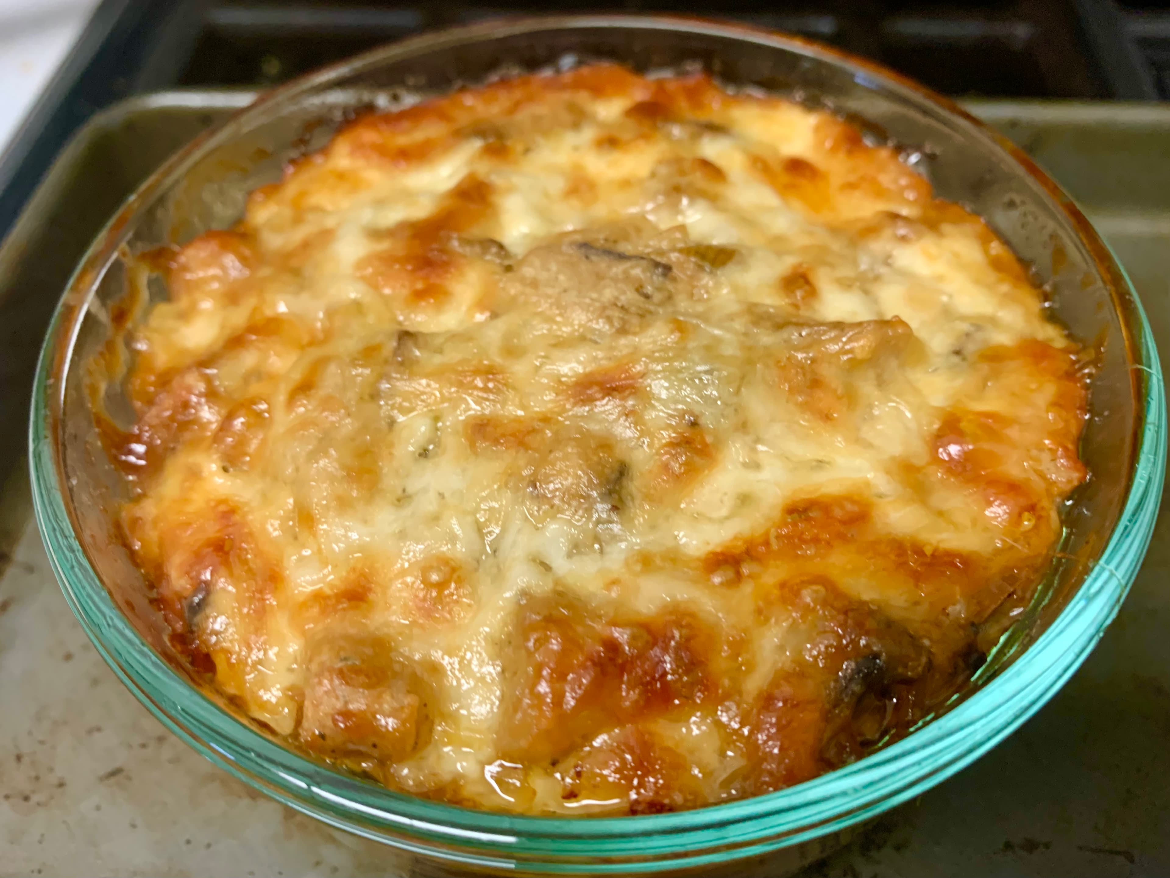 A small portion of the leek bread pudding I made couldn’t fit in the baking dish, so I had left it at home.