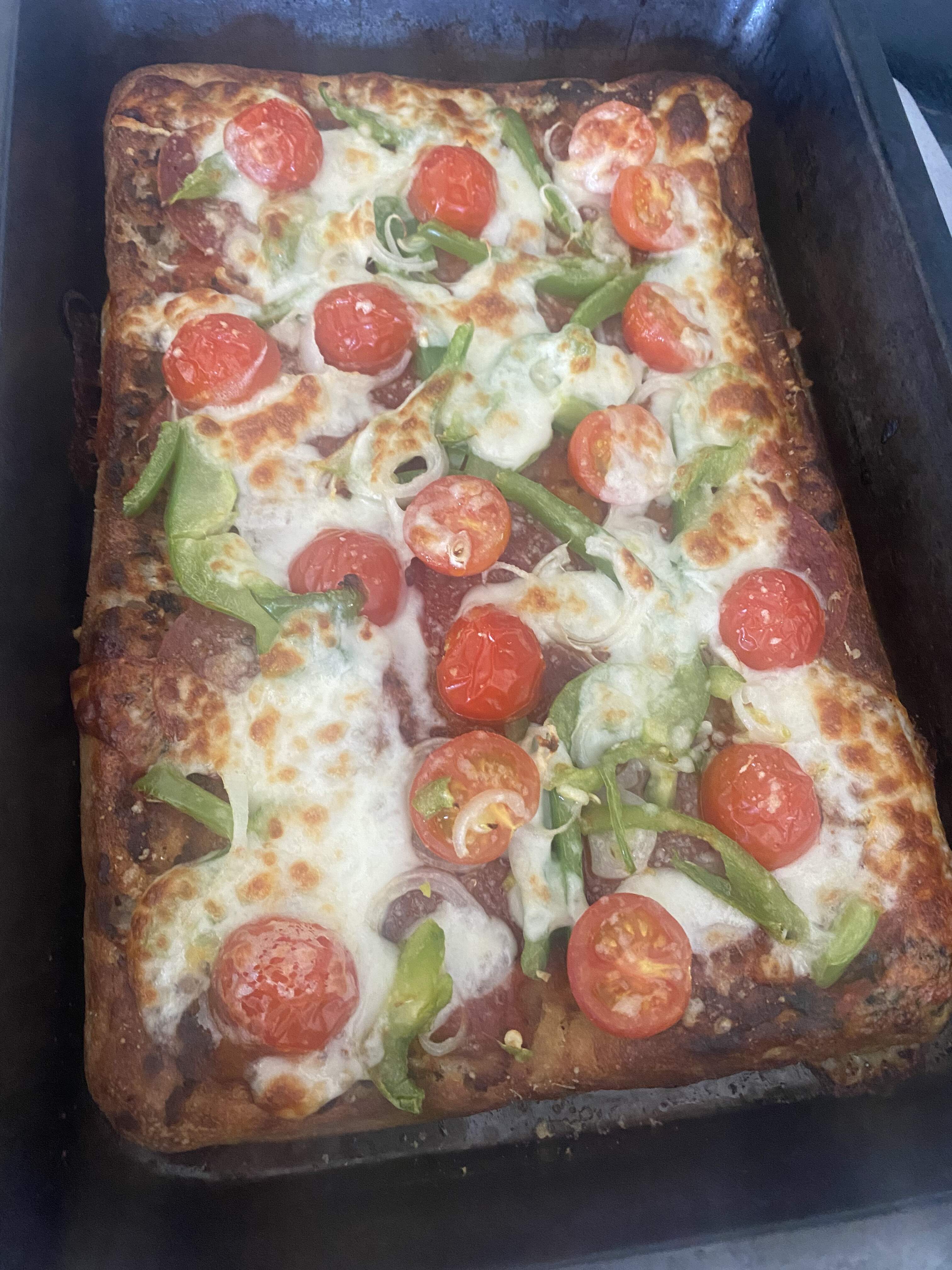 Yum square pan pie today in ooni. Heated to lowest setting for 20th min and then turned off flame. Par baked dough first on both sides then made pizza put it back in ooni oven with flames off then on to cook top. Finished on wire rack in oven to crisp up the bottom more.