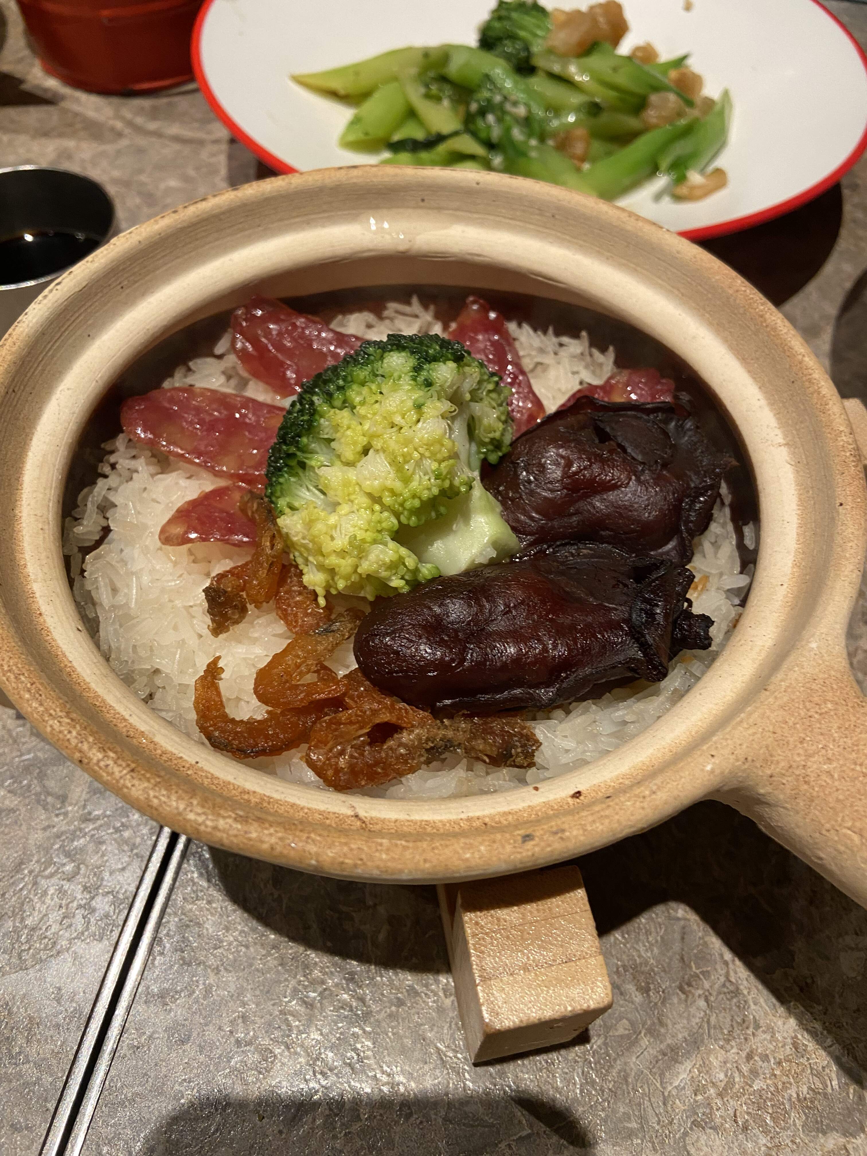 - Clay pot rice with sun dried local jumbo oysters and shrimps, preserved air dried Chinese sausages.