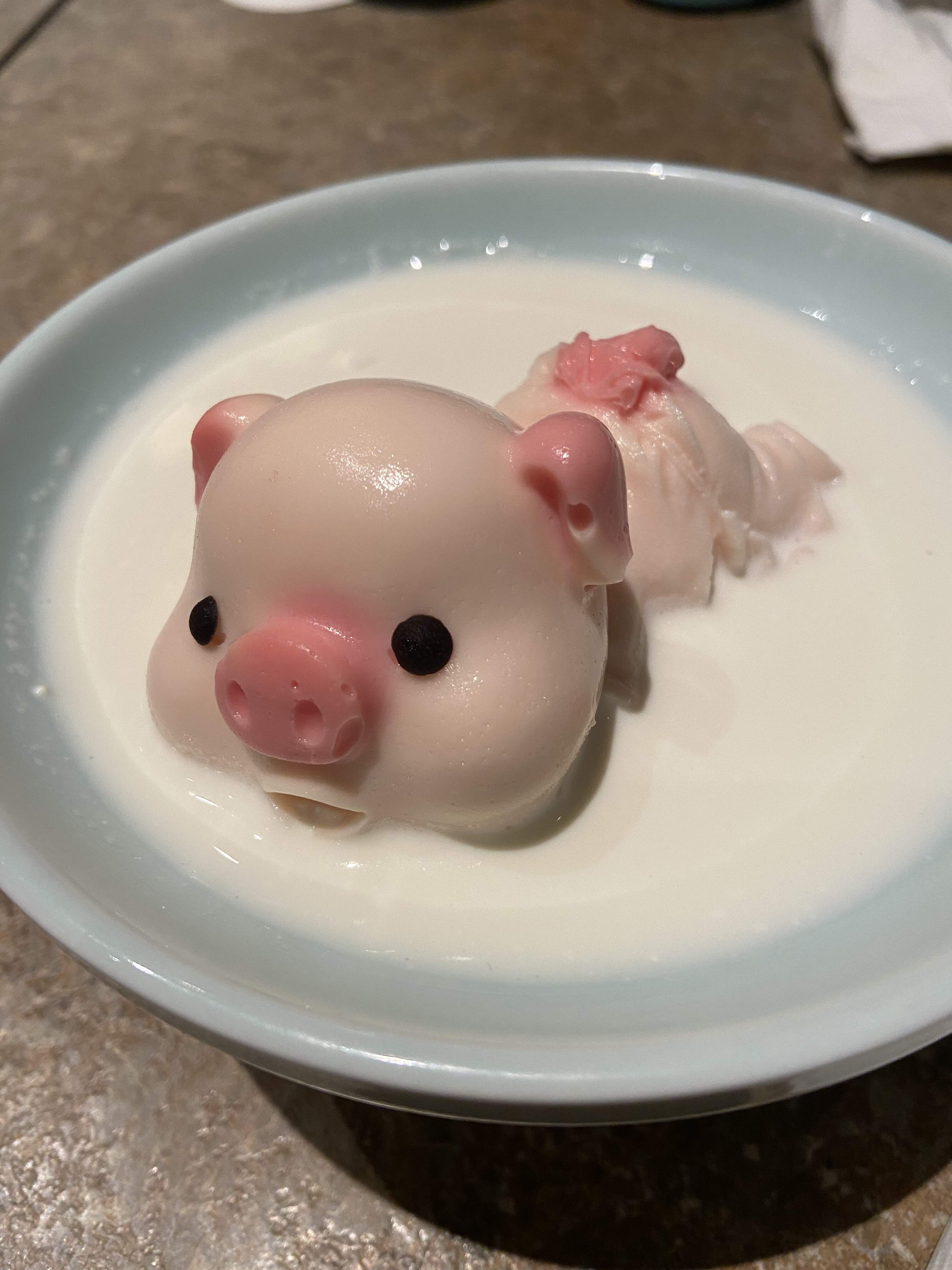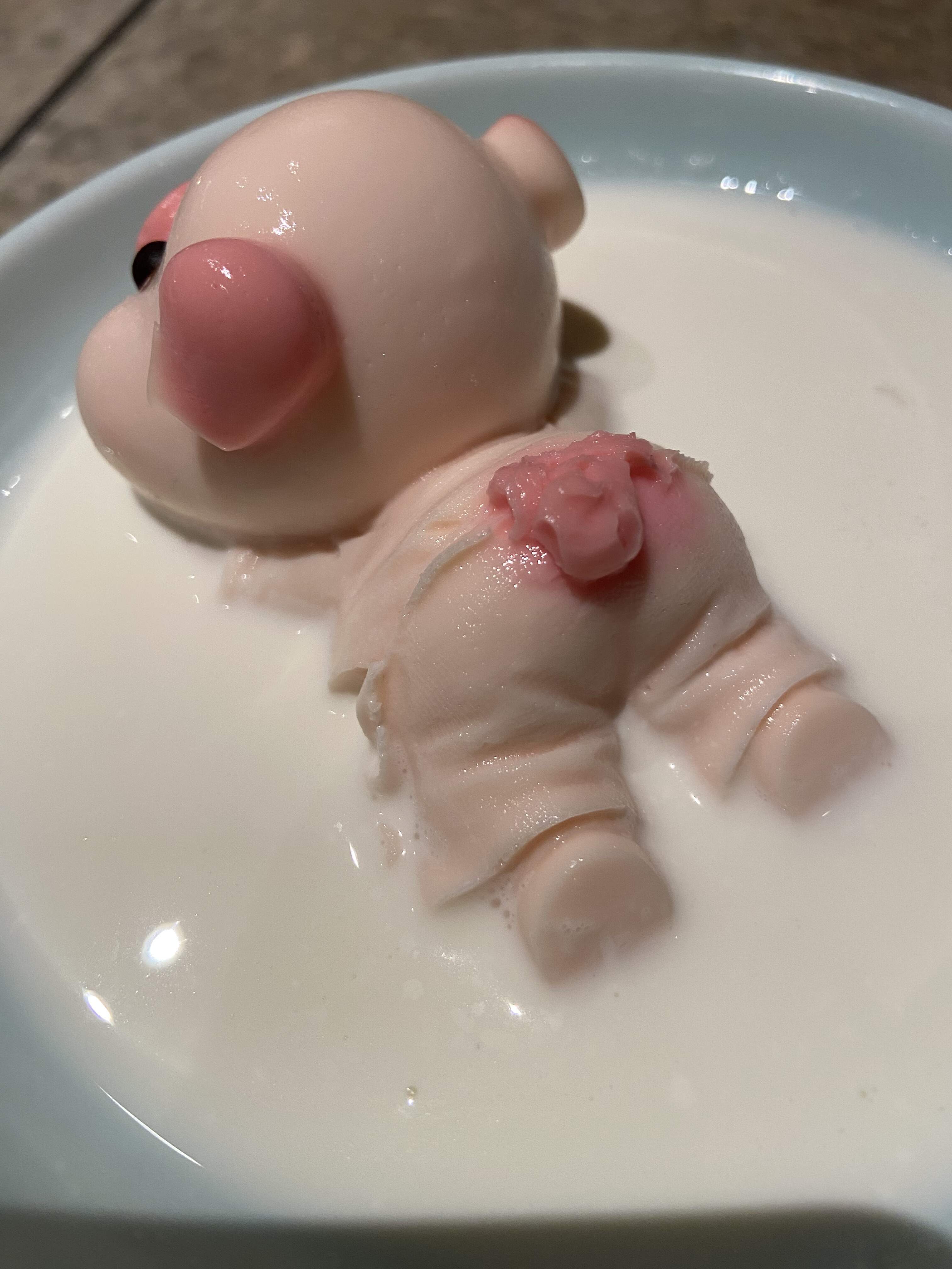 PS: The ’ Faux Lychees ’ were Fried Shrimp balls whilst ’ Miss Piggy ’ was a Strawberry and milk jello pudding!