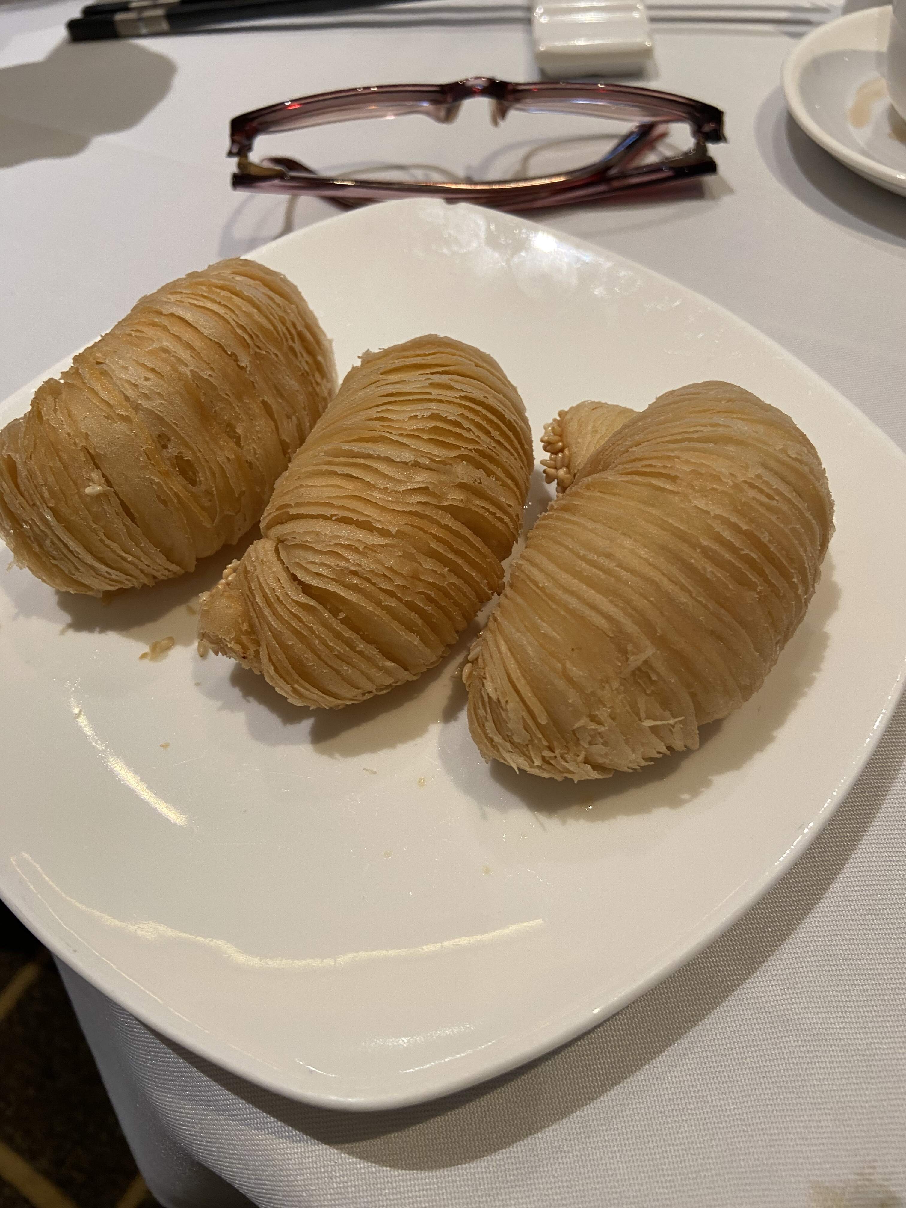 Amongst the other dishes ordered was one that sparked an initial skeptical doubt…..but ended up to be an unexpected delight! An unconventional offering of one of my favorite ‘Northern’ Dim Sum items that somehow appeared on a ‘Chiu-Chow‘ menu!.. ‘Shanghainese shredded Turnip’ Turnovers. The generous savory filling was juicy, well seasoned with added minced Chinese ham and highly flavourful. The cocoon wrapper, delicate, crispy and flaky. Well crafted and delish!