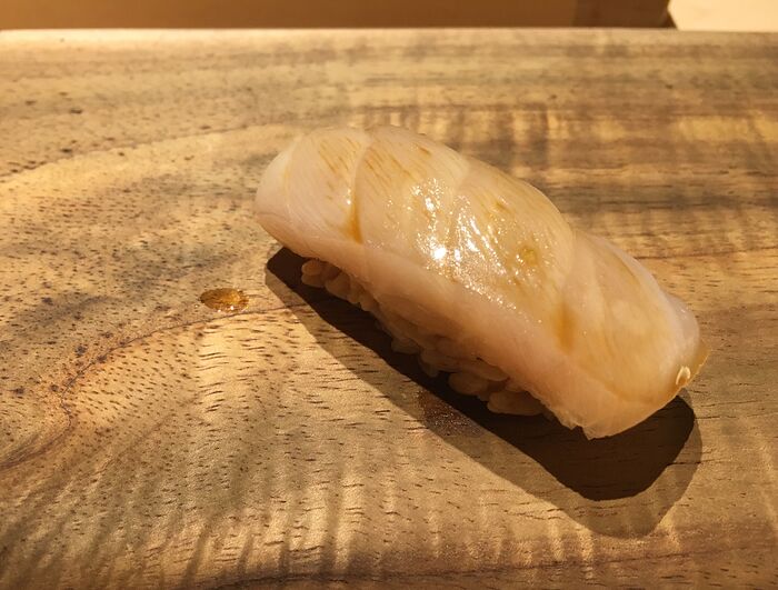 The sushi is expertly crafted here with textbook knifework and hand-pressing. The rice is noteworthy: “nebari” is was excellent - a product of not only their strong awasezu (seasoning vinegar for sushi rice), but also the deft hands of the sushi chef Taku-san, who himself has a 2 Michelin star sushi restaurant in Tokyo, Sushi Taku. A new edobitsu of sushi rice is summoned for virtually each new piece of sushi prepared, so the rice is always at the proper temperature.