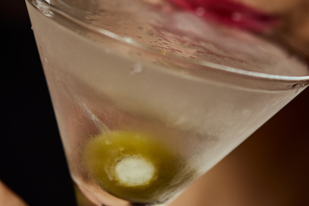 Quite some time ago we had a couple Five O’Clock Somewheres with a New Yorker who always ordered the Martini with as many olives that the toothpick could hold, even sometimes receiving an extra skewer-full. The practice was to stir the drink with the skewered olive on the tip, sip, savor, chomp down the olive. Rinse and repeat . . .