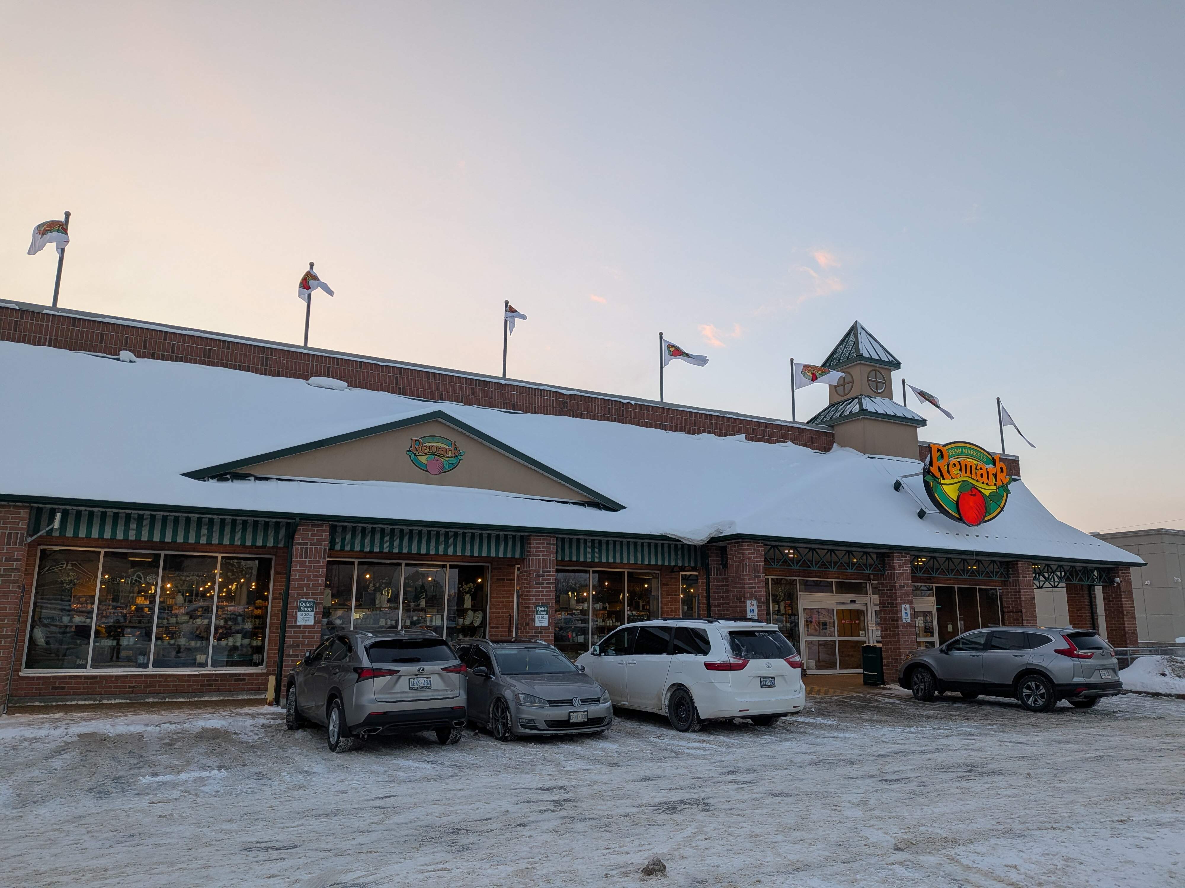 The parking lot at the grocery store was nice and empty this evening. -11 ⁰C / 12 ⁰F at 5 pm today, in southwestern Ontario.