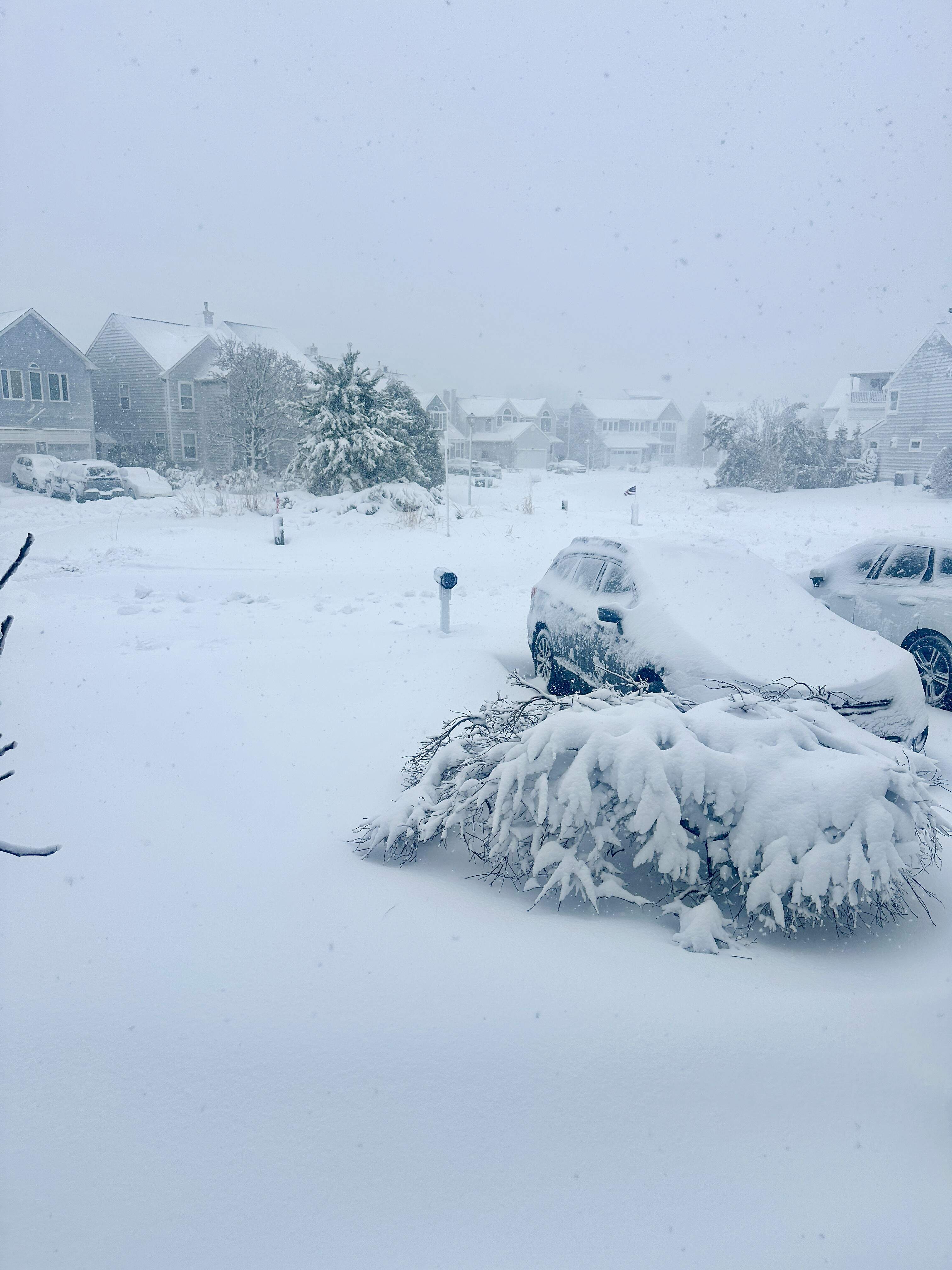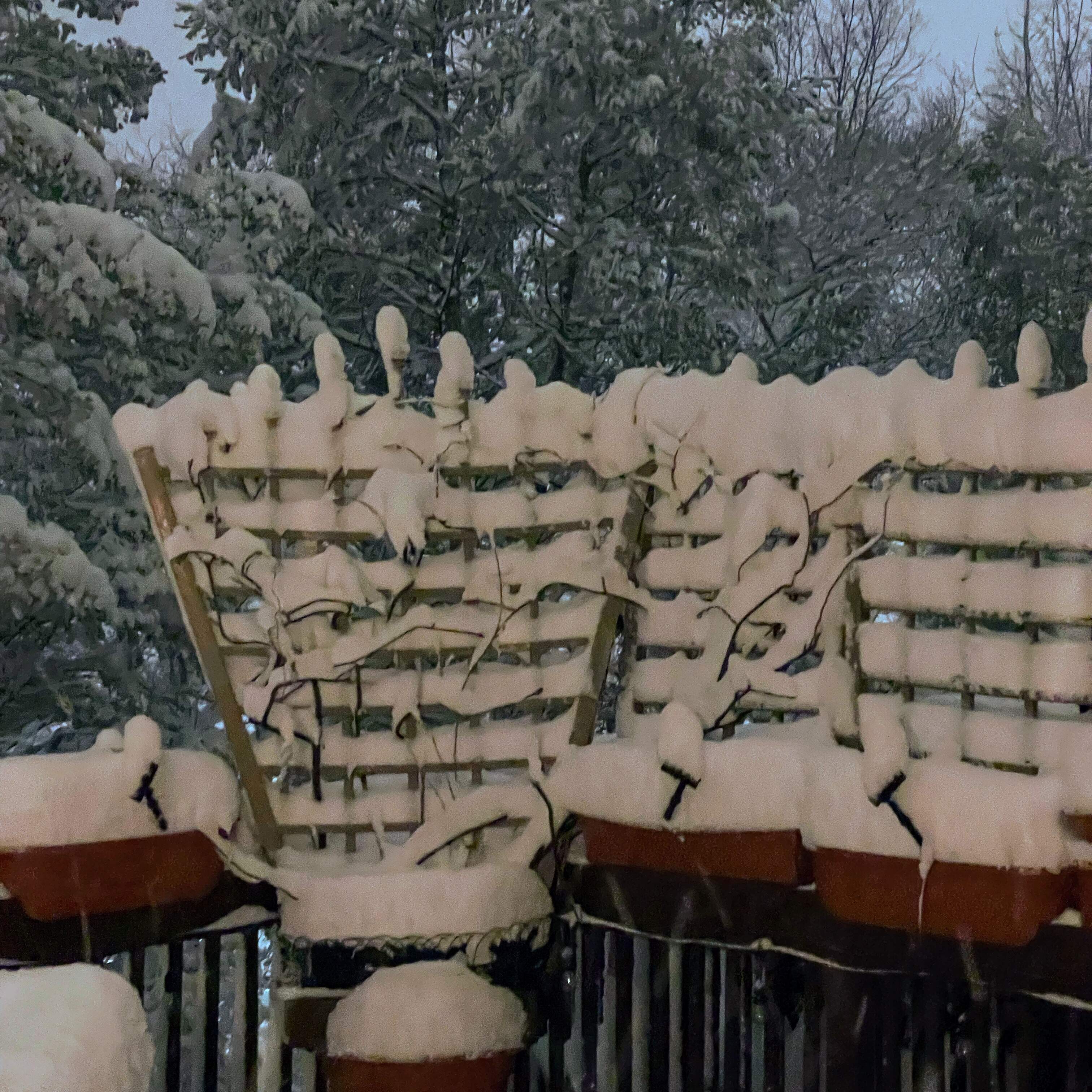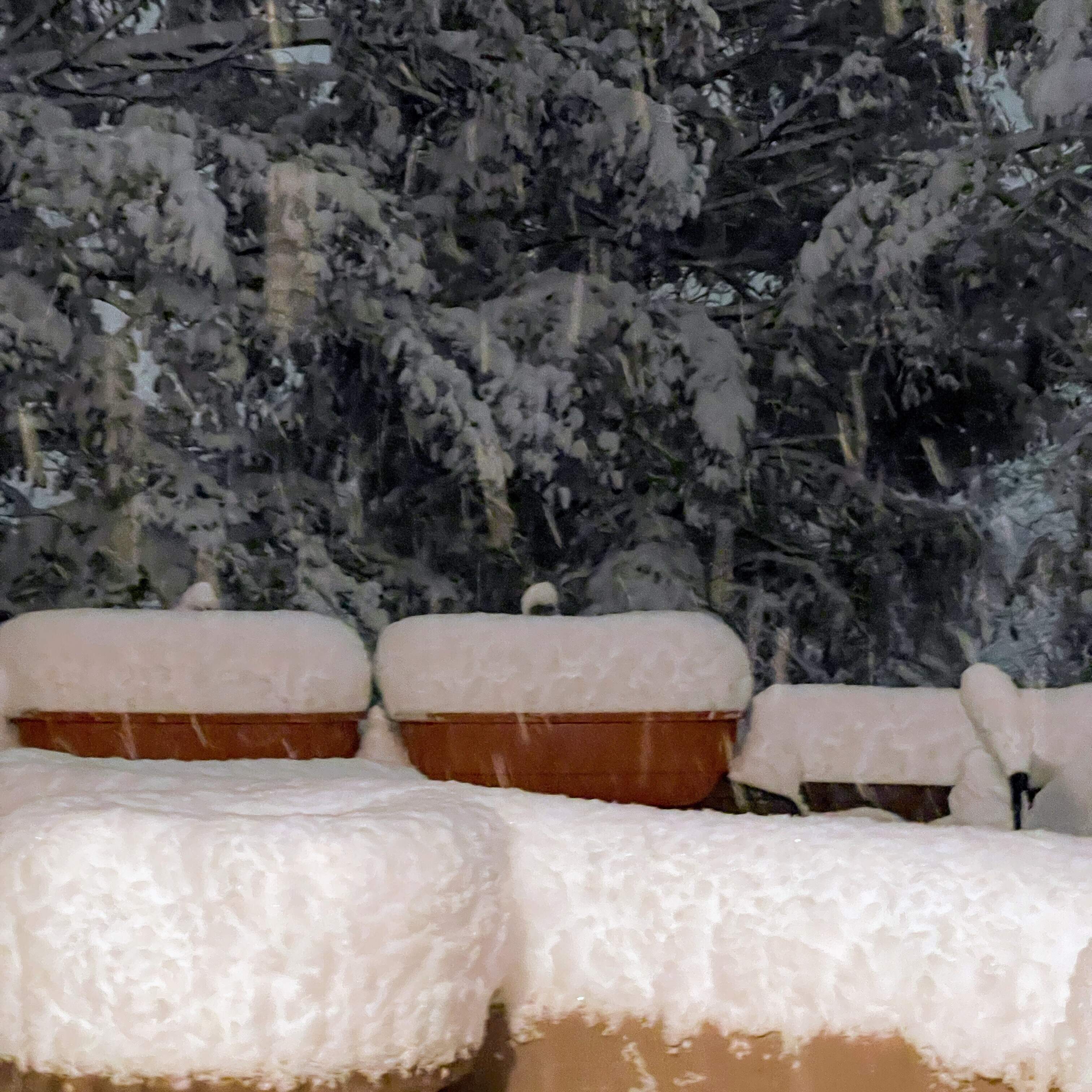 It switched to snow at about 5. It’s 10:51 PM and I just came in from shoveling. It’s still quite warm out (still above freezing) and the snow is extremely wet and heavy, but they’ve downgraded the amount we’re supposed to get. I think we’ll end up with 4”.