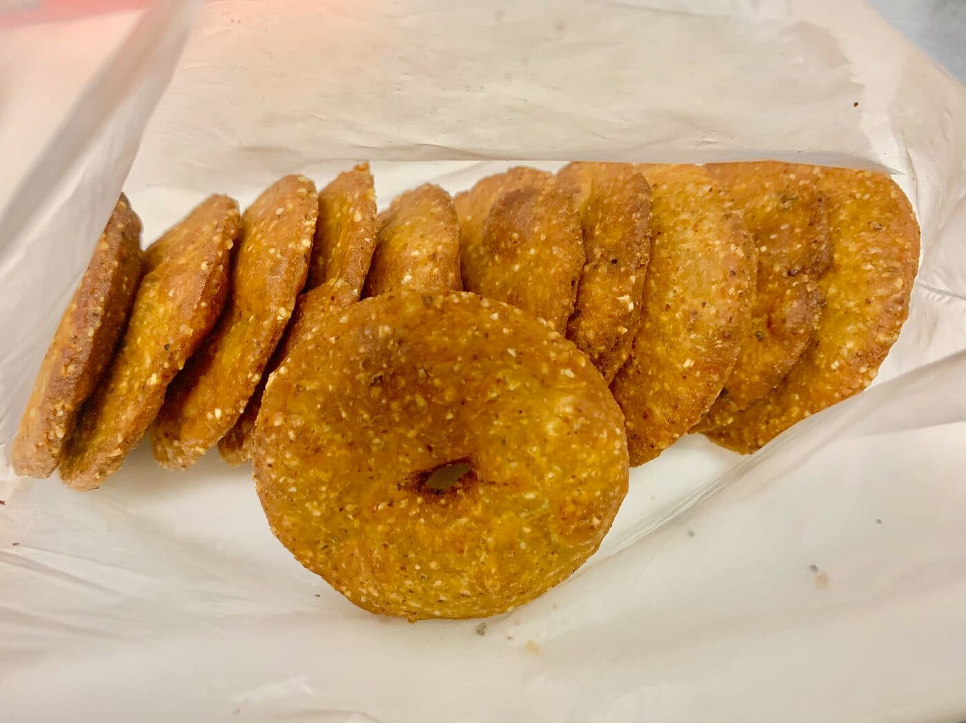 I was using a priority mail box, I filled the remaining space with some other favorites – bagels, rice crackers, coated cashews, butter chakri (crunchy spirals), and madeleines.