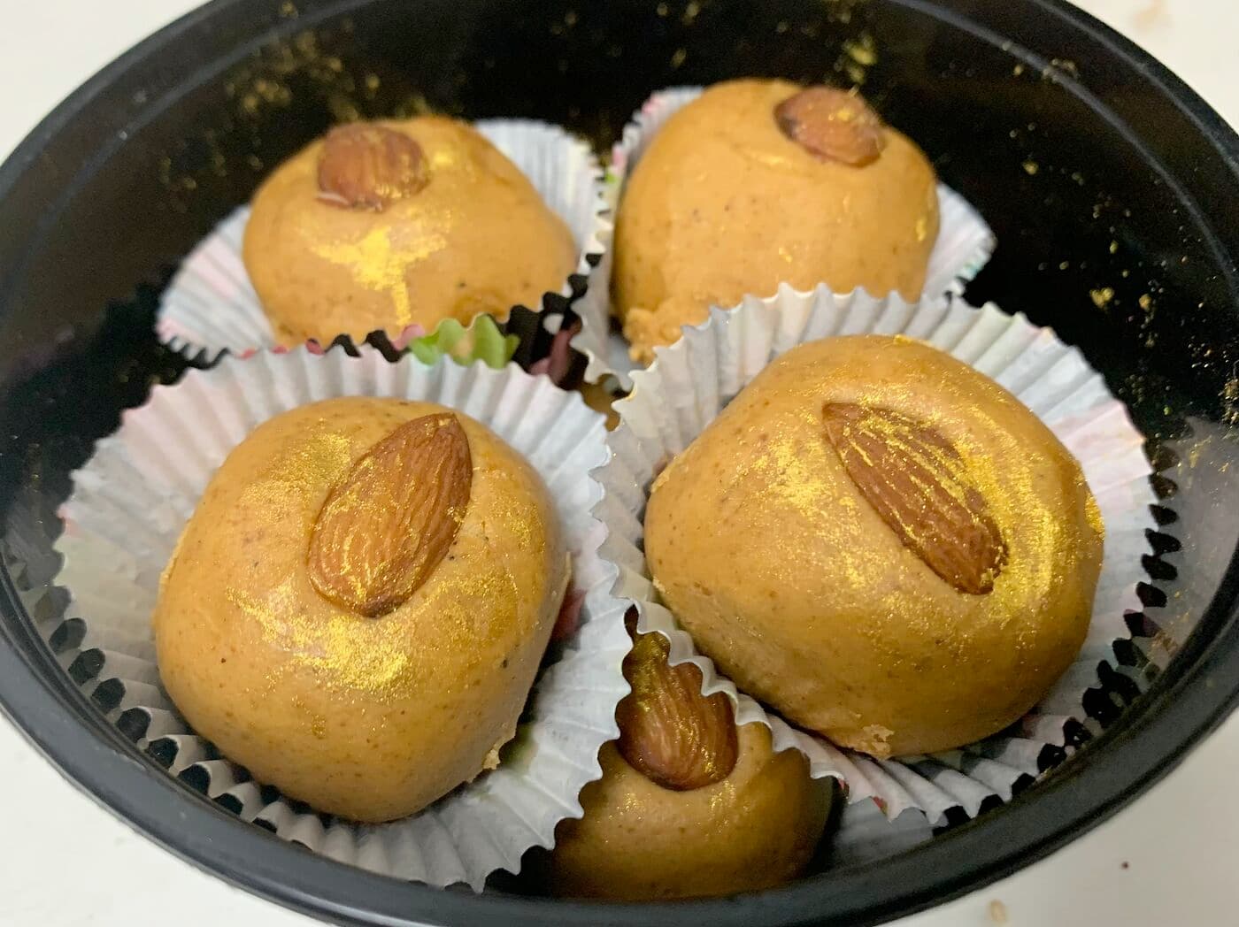 Anchor was homemade lemon cupcakes (with glaze and birthday sprinkles). Plus besan laddoos / gram flour fudge. Plus crispy masala puris / crackers.
