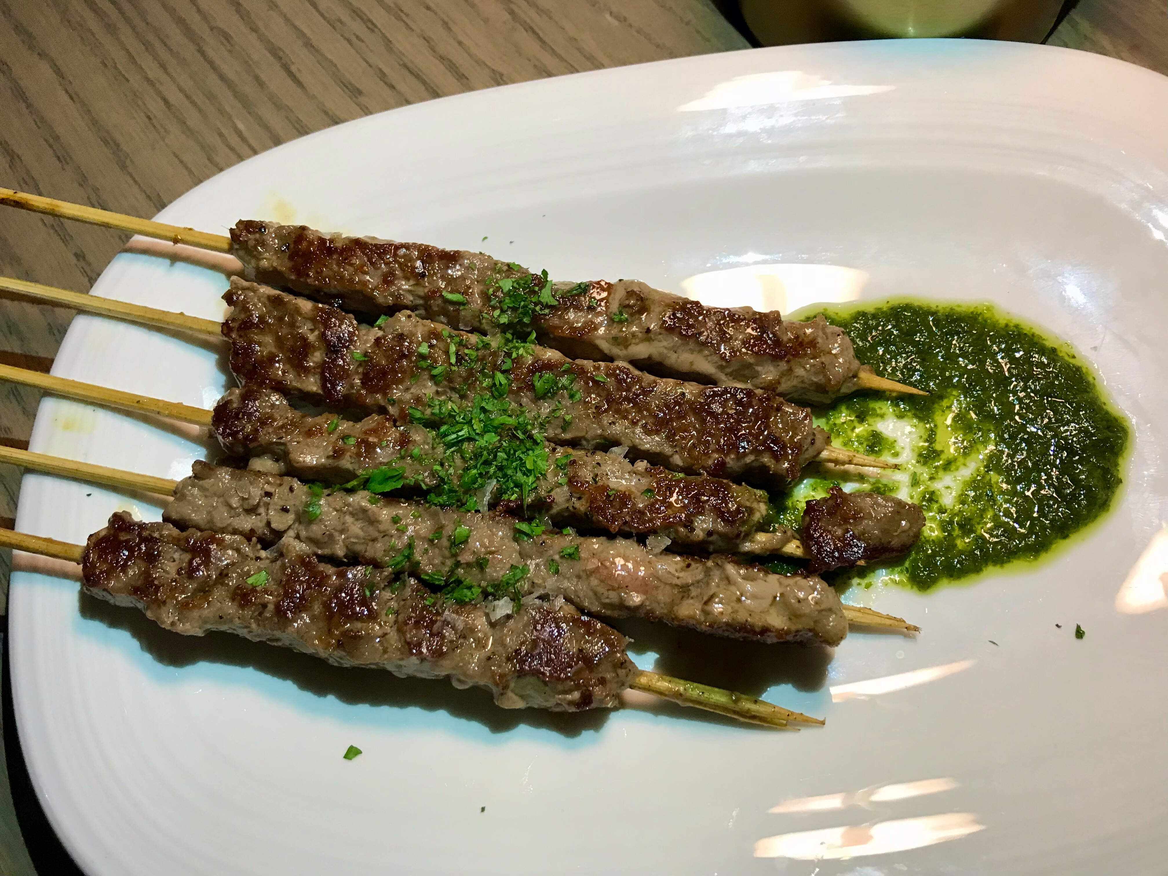 We tried the Spiducci D’agnello: tender Ontario lamb skewers with gremolada.