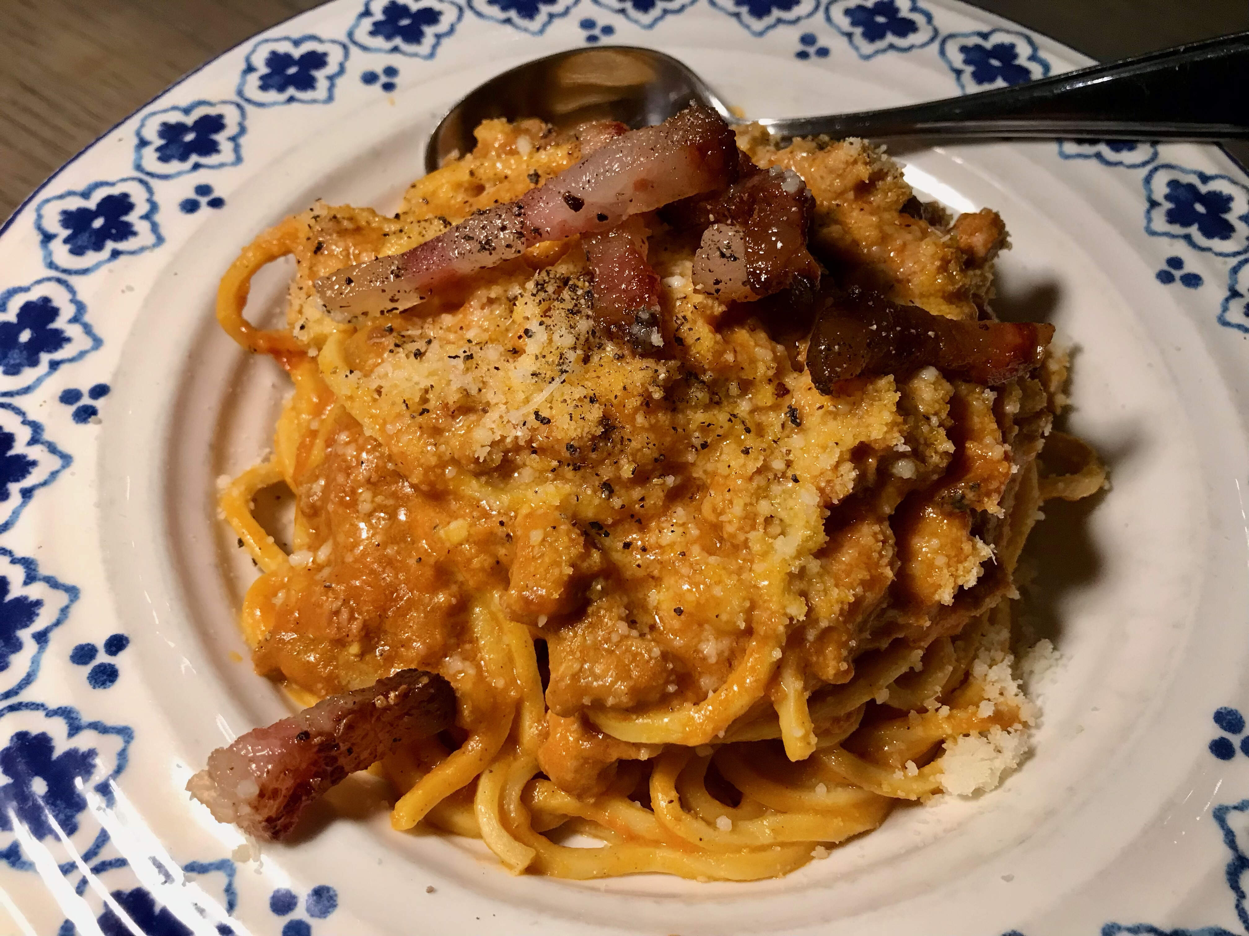 Chitarra alla Zozzona was great, with housemade chitarra, italian sausage, guanciale, tomato sugo, parmigiano reggiano, egg yolk, pecorino romano. Chewy noodles, rich and hearty sauce.