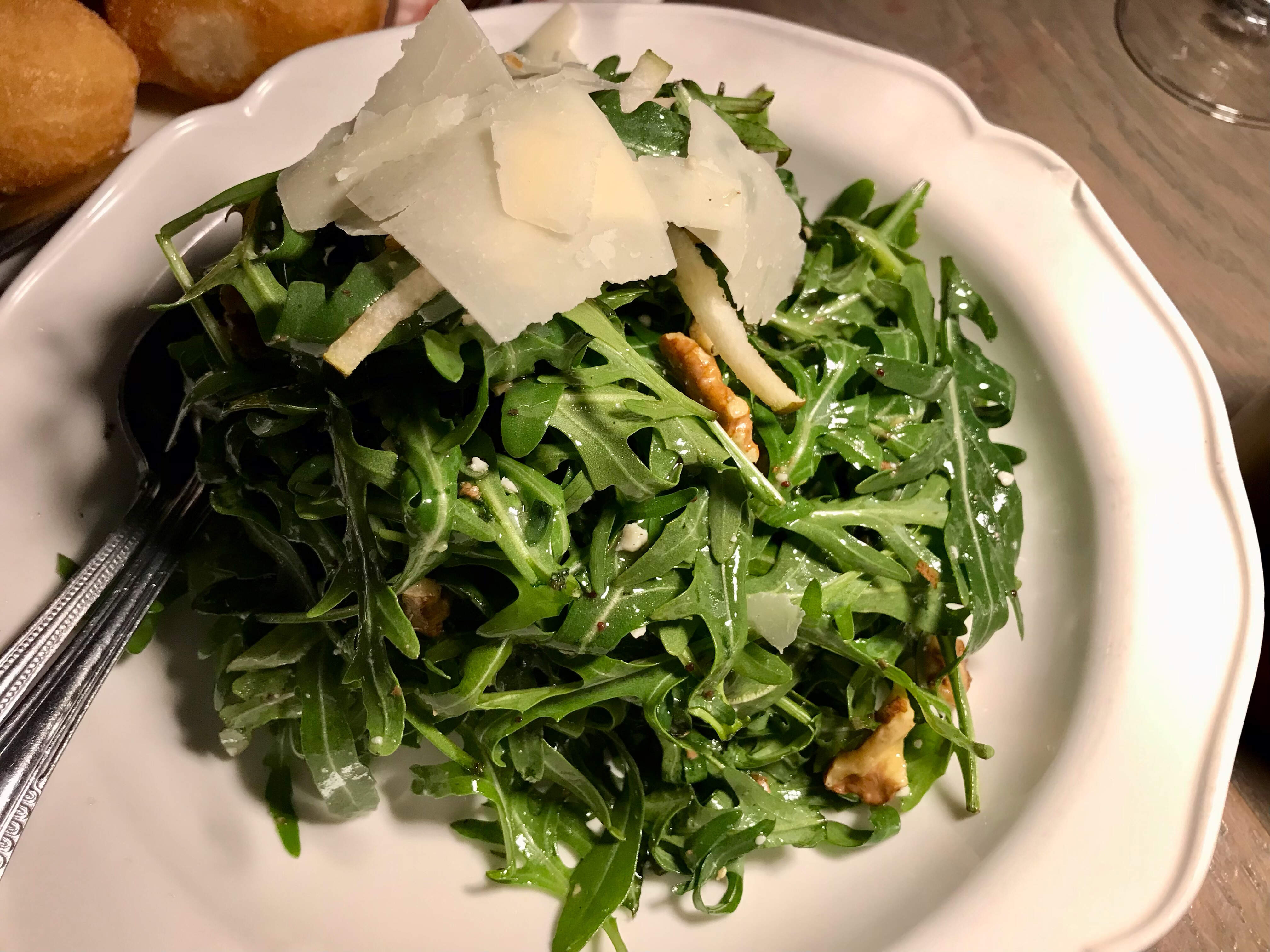 Rucola e Pera was a simple salad of arugula, pear, toasted walnuts, gorgonzola, shaved parmigiano reggiano, and a nice poppy seed vinaigrette. A good counterbalance to everything else.