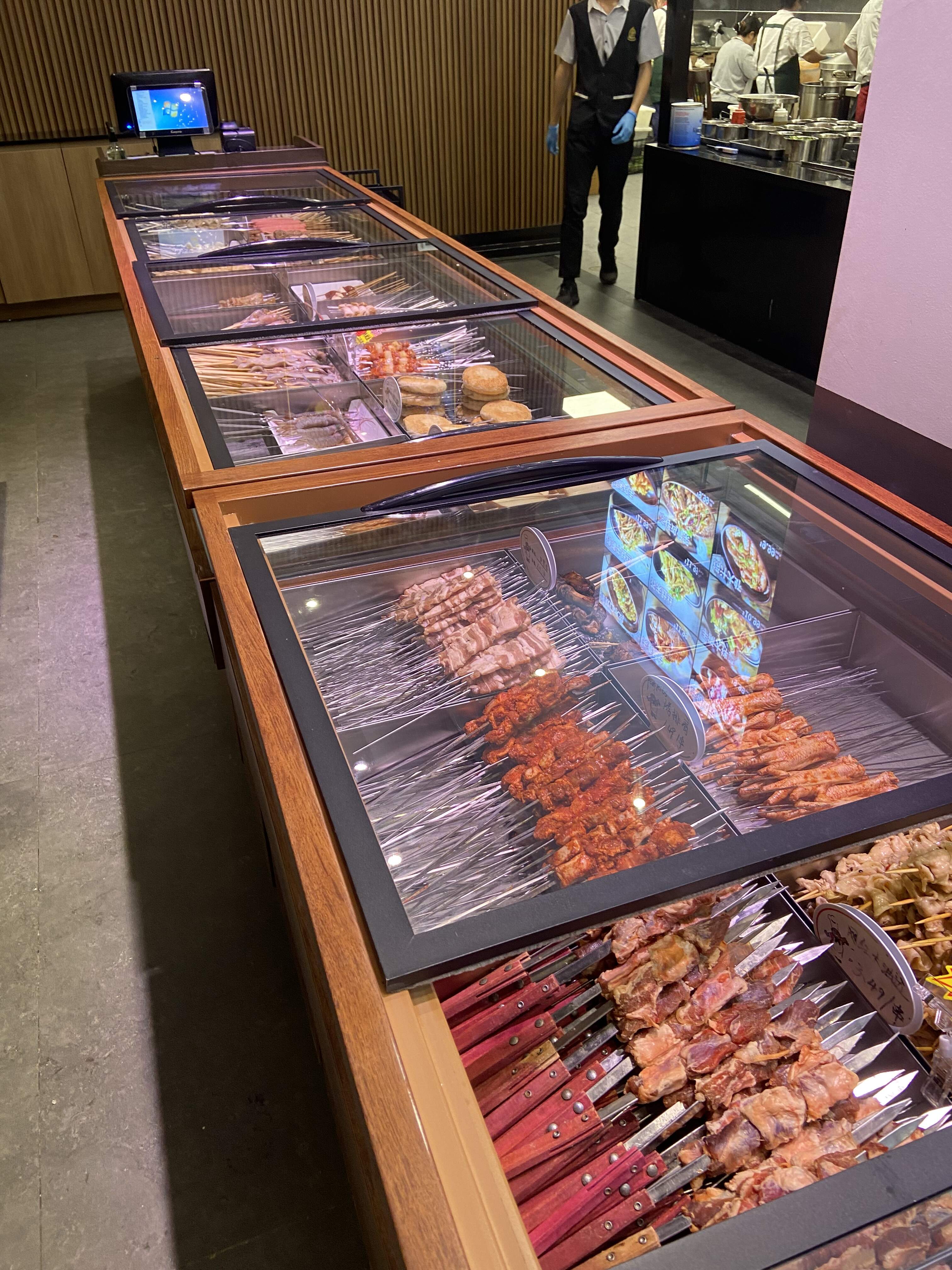 The first one, predominantly focused on BBQ skewers. From a centralized, refrigerated display area, patrons can pick their favorites from a vast array of individually priced, raw, seasoned/marinated or bare skewer choices…..the usual chicken, beef, lamb, pork, seafood, vegetables options were offered. Afterwards, the selection is to be handed over to the staff manning a central collecting station who will then process and pass them onto the open kitchen for execution.