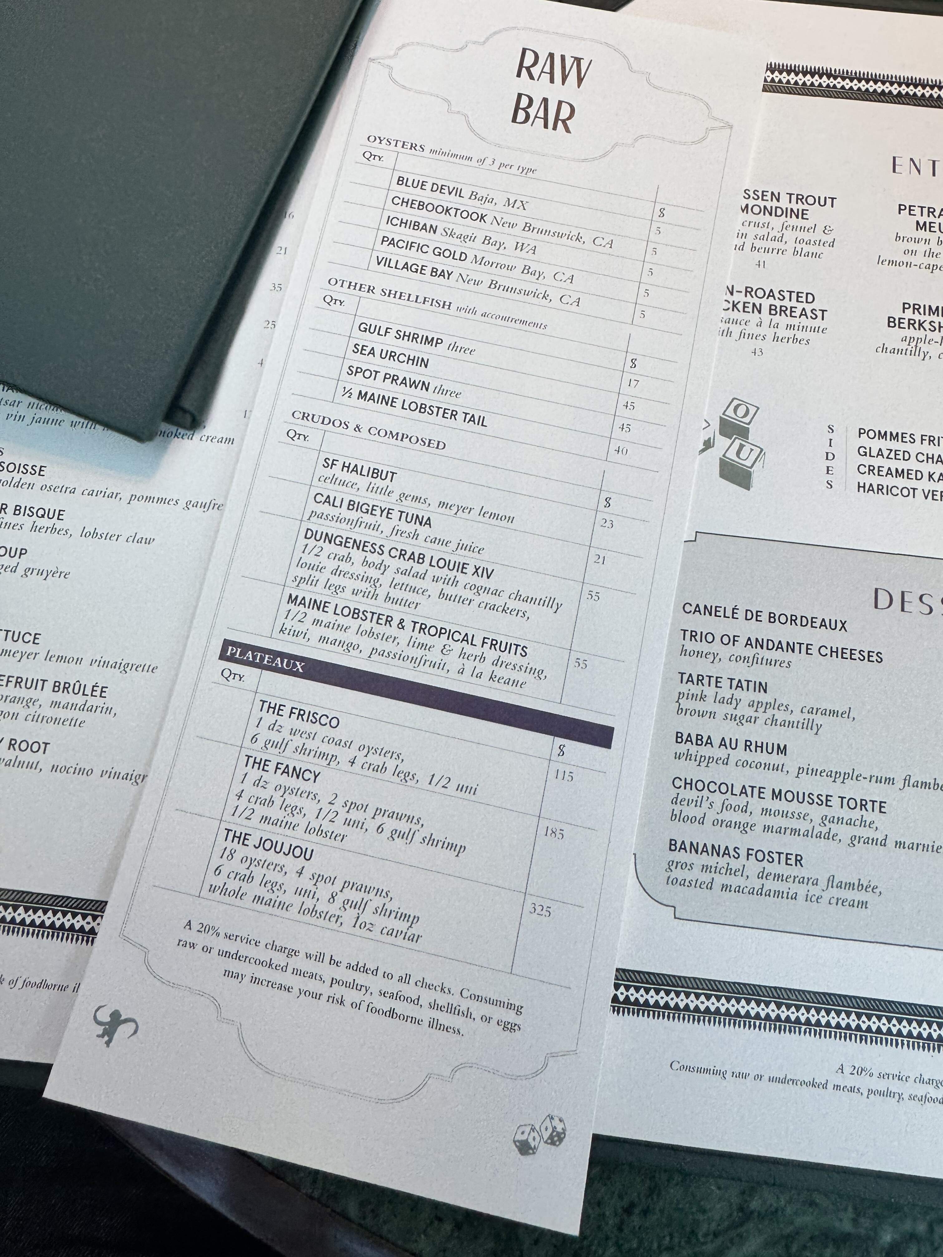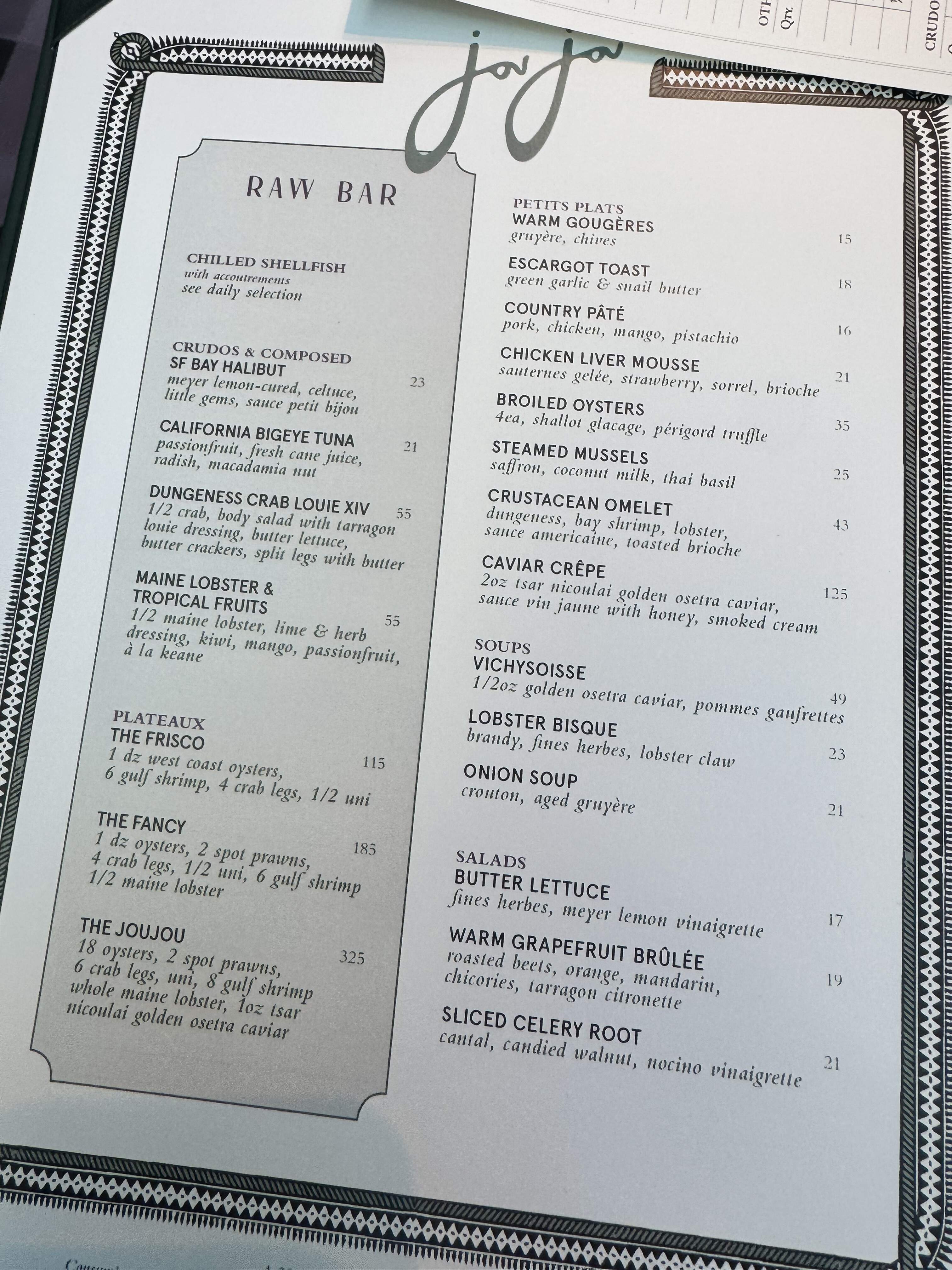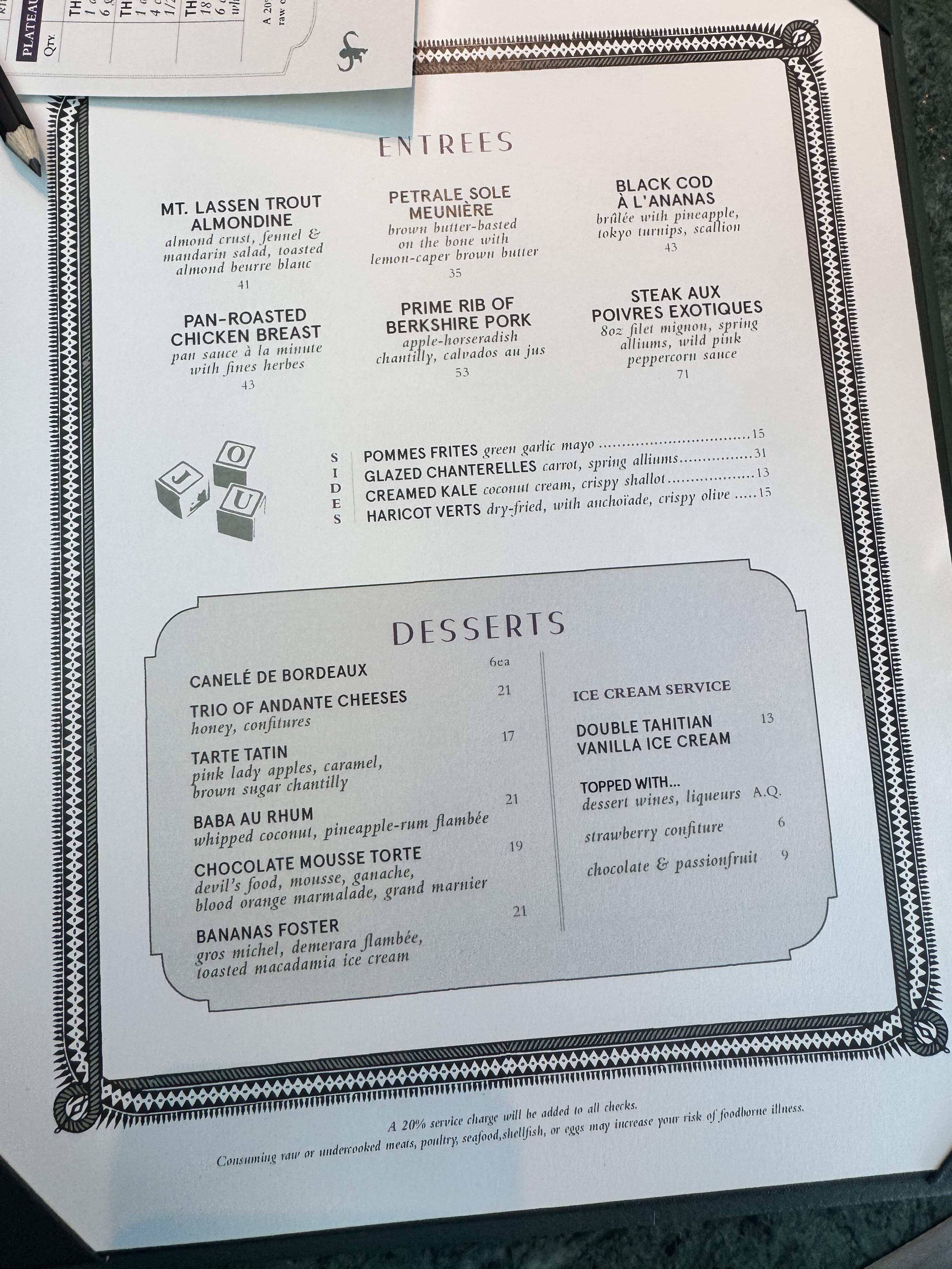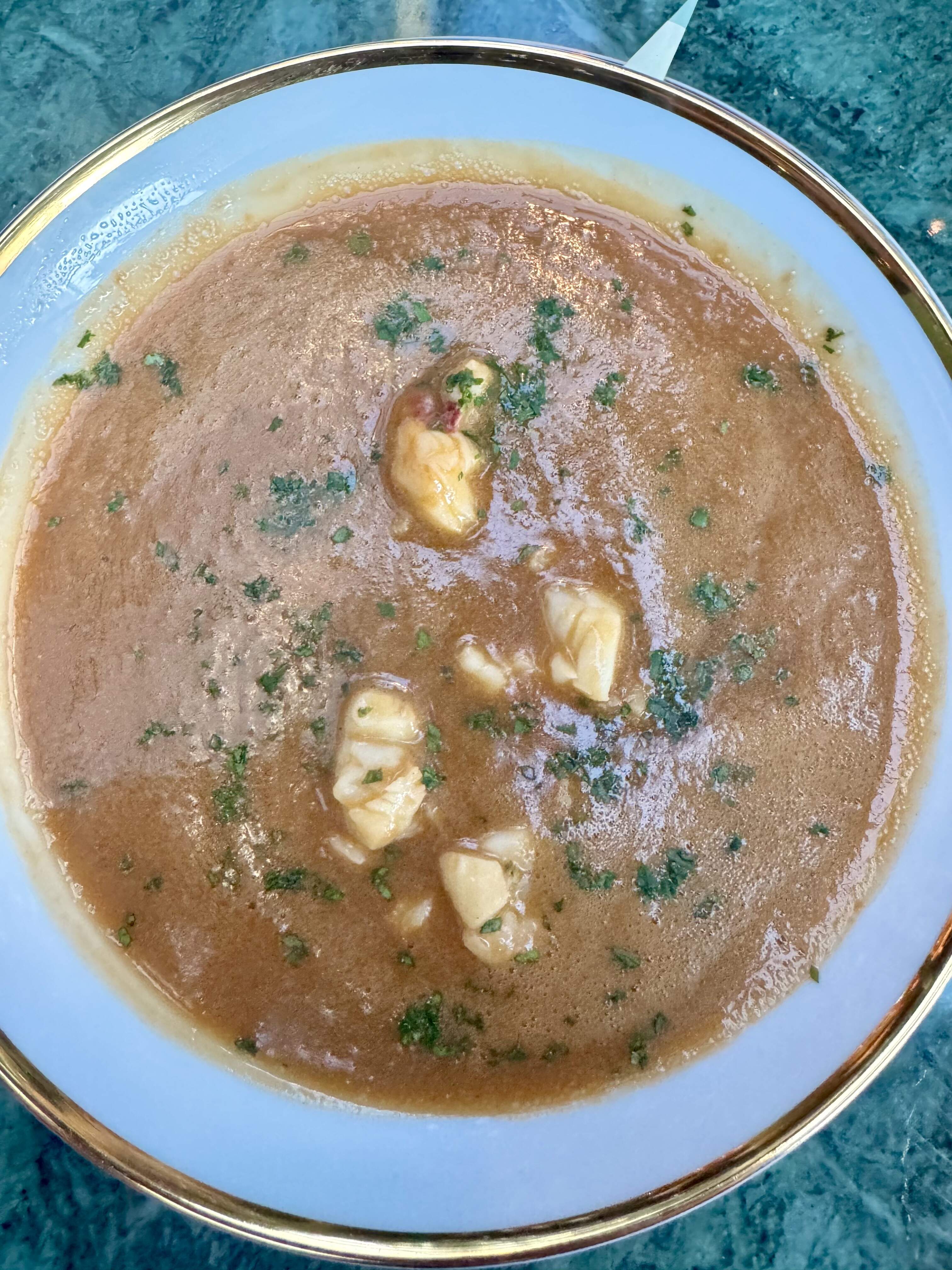 -Lobster Bisque had an intense shellfish flavor, and herb flavor, not creamy or with sherry like a lot of renditions. - Petrale Sole Meuniere, brown butter-basted on the bone with lemon-caper brown butter was the only fail - sauce was good but the skin wasn’t crispy and with so many small bones they really should at least offer to debone it.