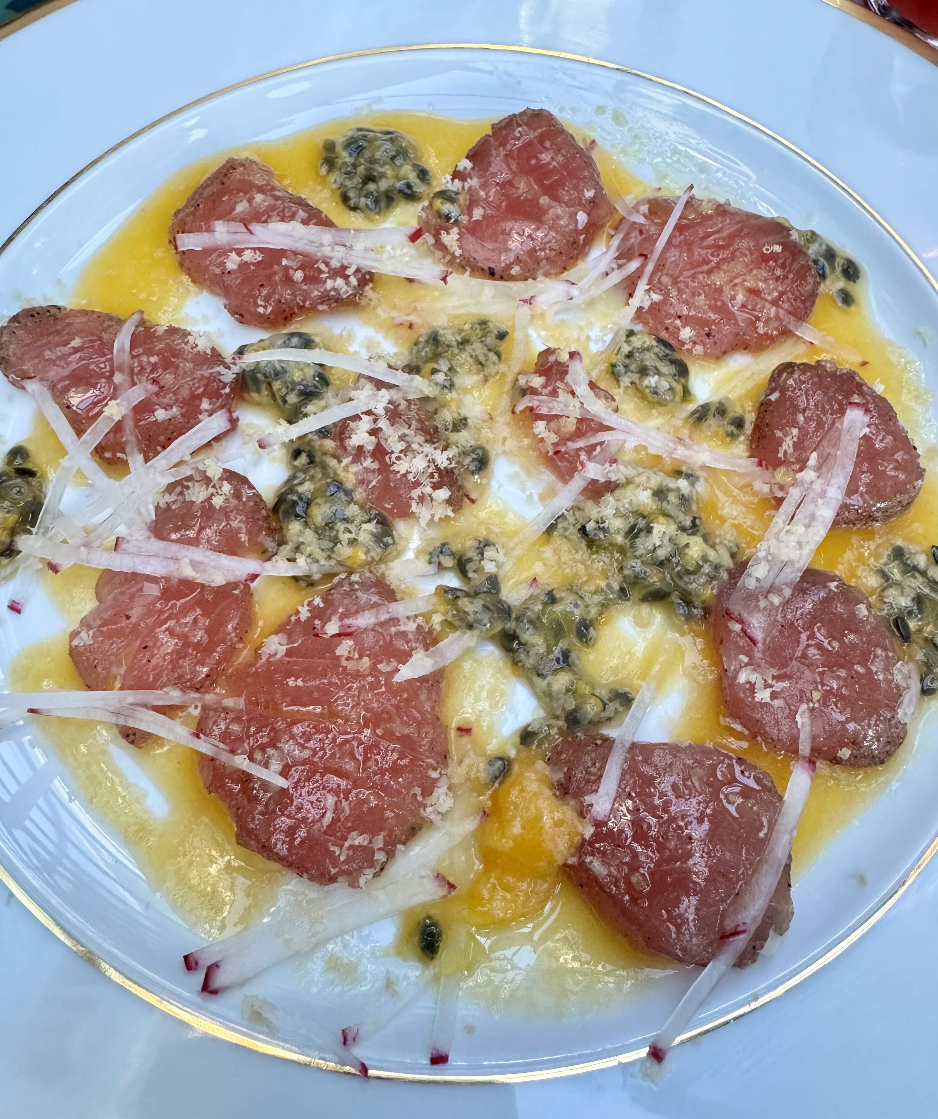-Big eye Tuna with passionfruit, fresh cane juice, radish, macadamia nut was good, the passion fruit seeds provided a nice crunch, but a bit tart.