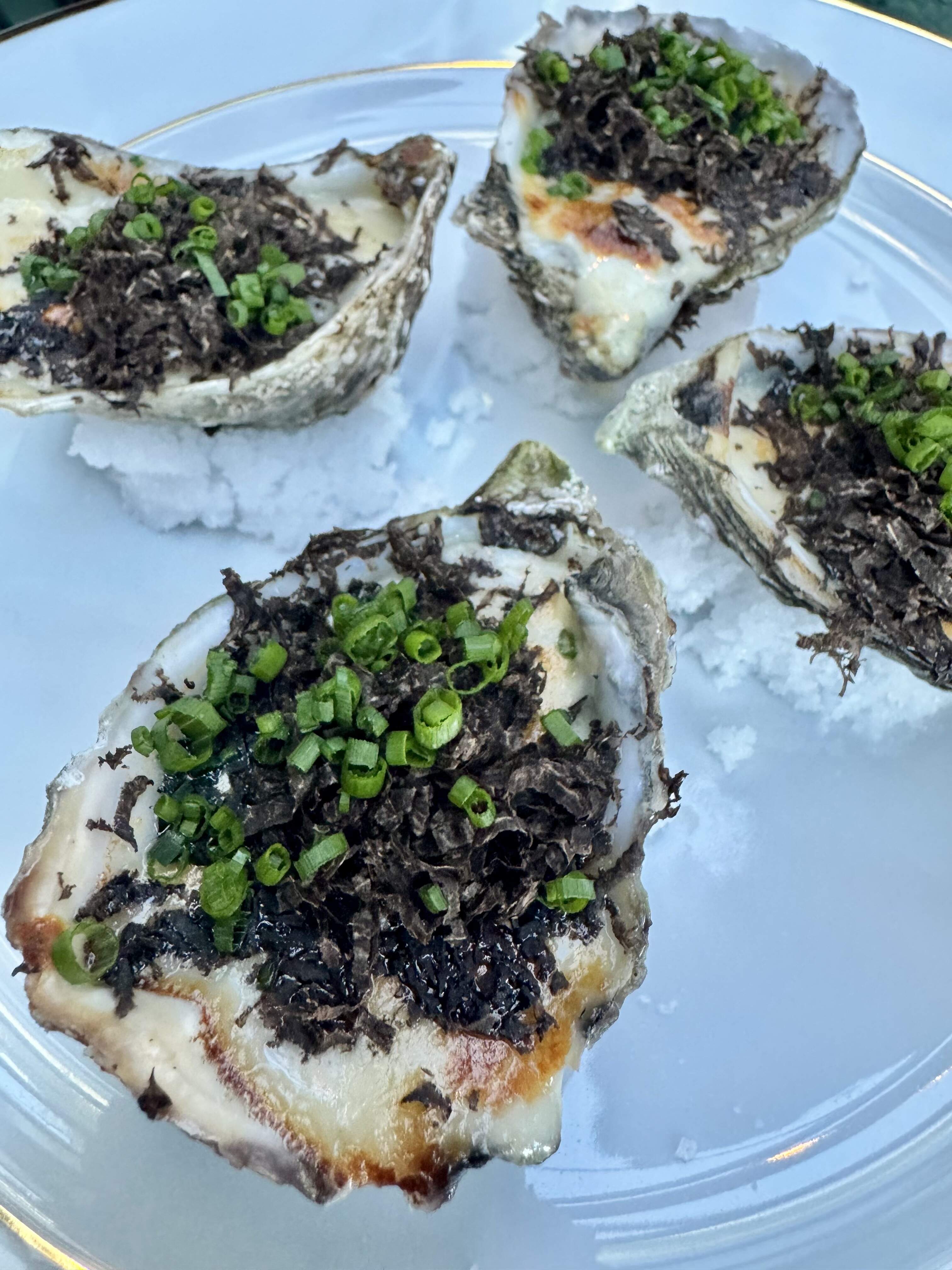 - Broiled Oysters with shallot glacage and périgord truffles were excellent, I could have eaten dozen.