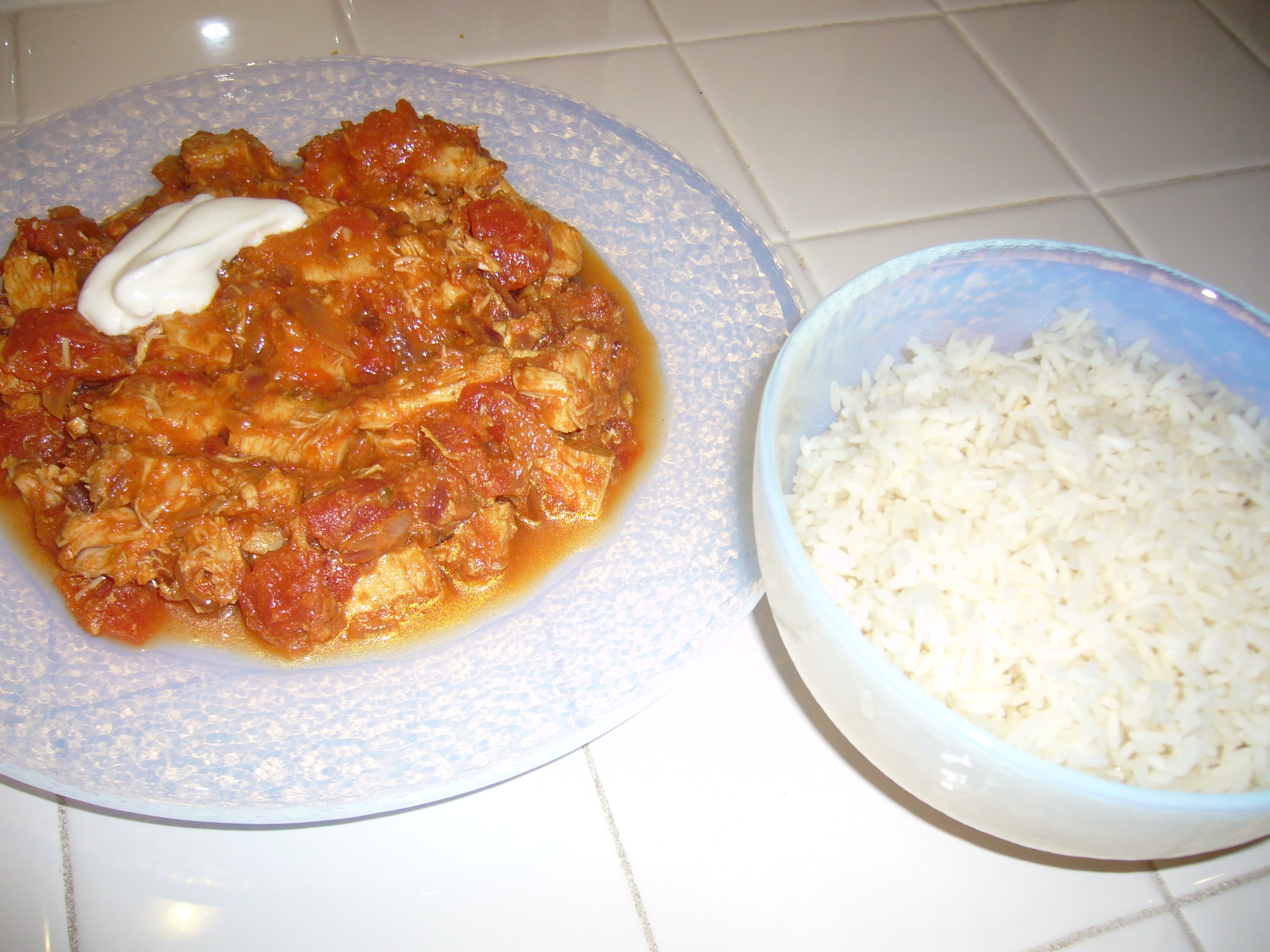 I used chicken breast instead of thighs, pretty much all the ingredients and seasoning as written, but found it way too thick, so added more tomato. That weakened the flavor, spice presence, so my result was milder than Meera or her mum would’ve wanted, but still very good–next time I’ll know better. I’d make this again. especially when I decide to try actual naan instead of (easy lazy) rice.