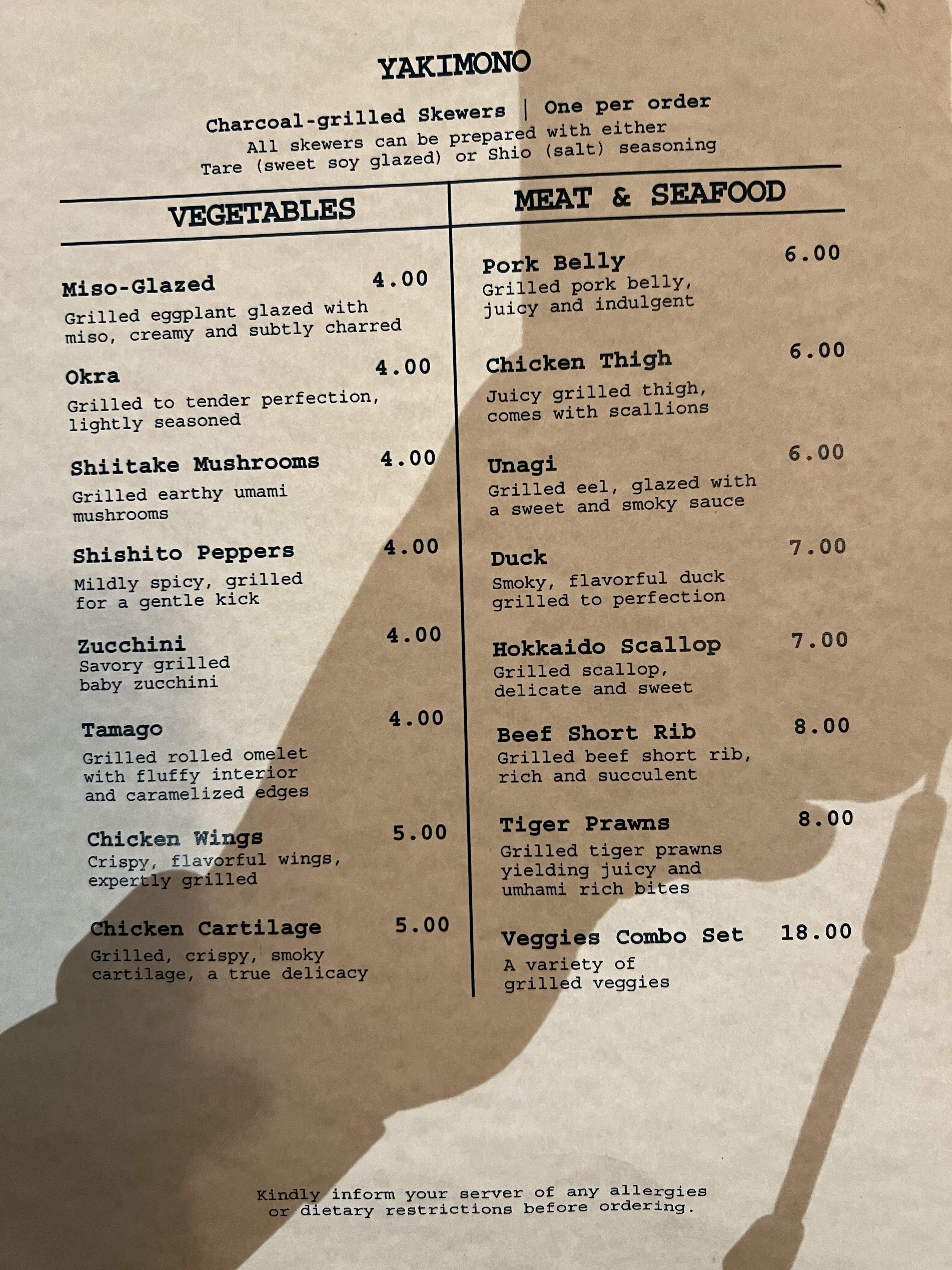 As appetizers I had some skewers - the miso glazed grilled eggplant ($4) for veg which was nicely cooked, the chicken cartilage ($5), which was pleasantly chewy and crunchy and also had some chicken meat attached, and the short rib ($8), which was good but a tad chewy.