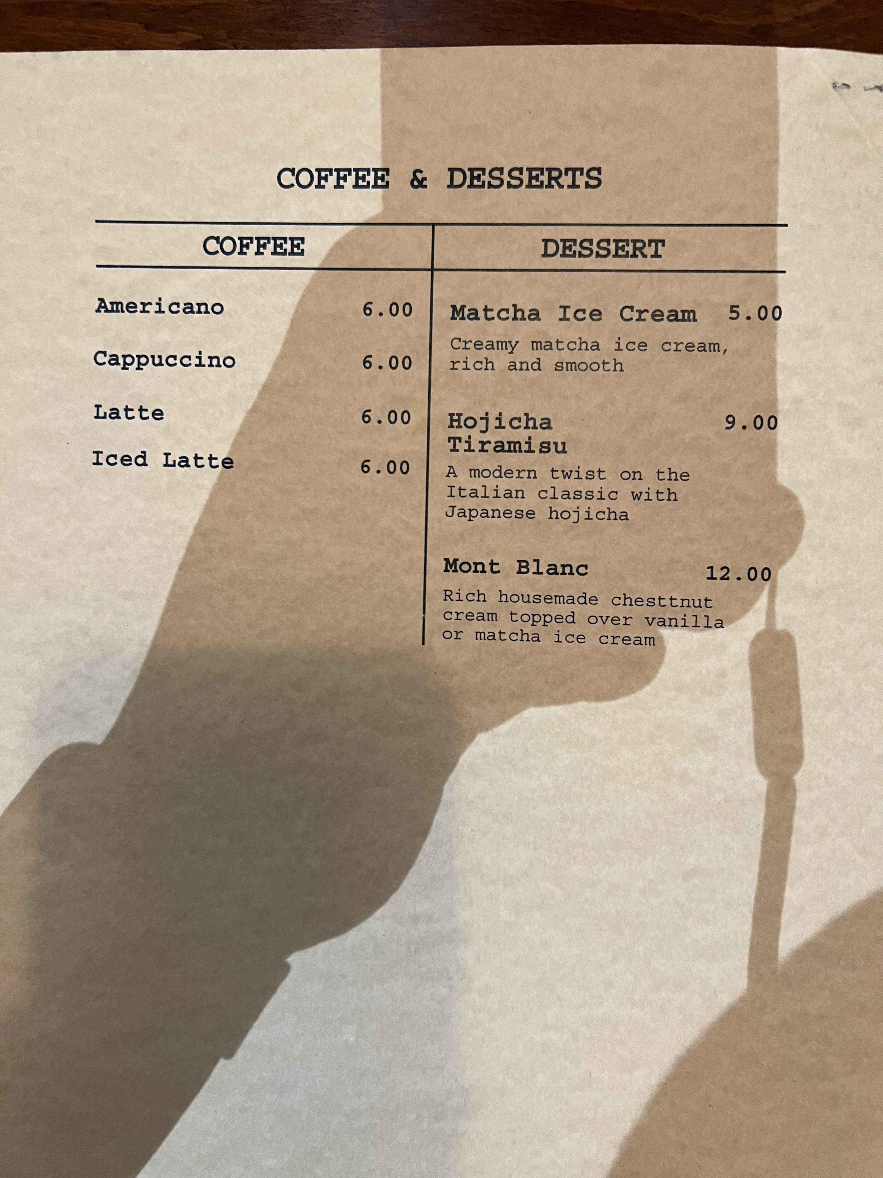 The menus - they are in the process of getting an alcohol license - only zero proof drinks on the menu right now.