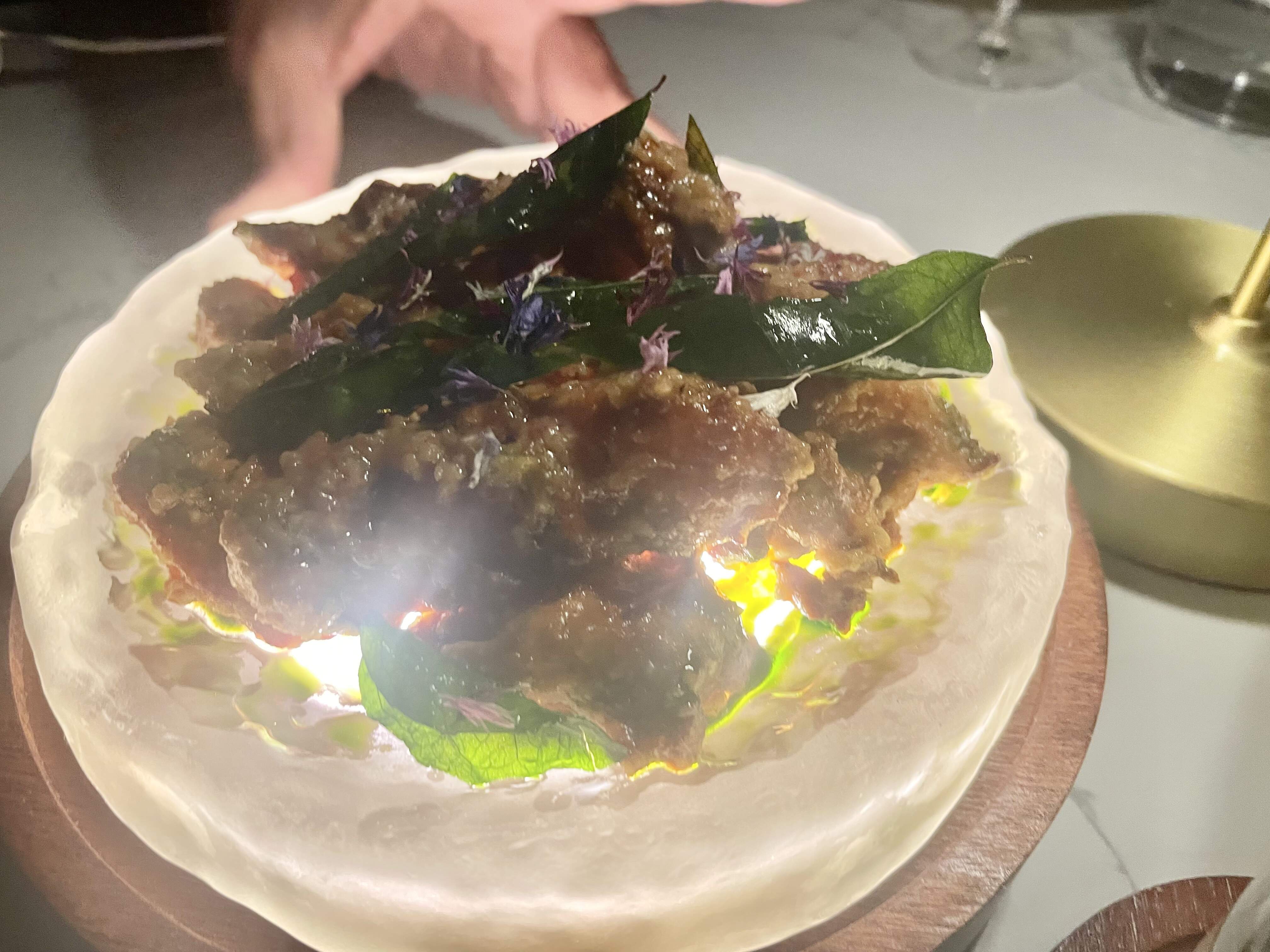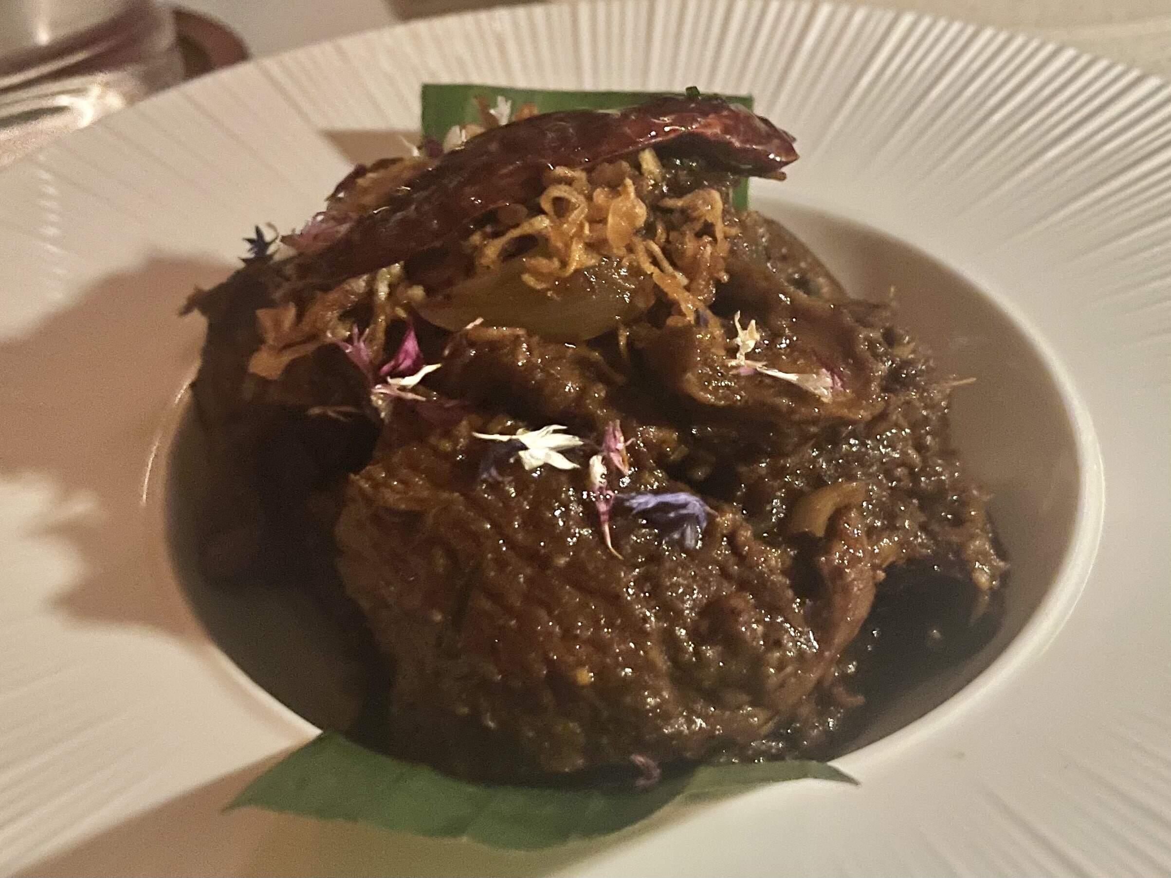 This was a tasty meal, with all the flavors there but dressed up for a fine dining format. So the sauces were a bit smoother than they would be in the original, the heat was a bit tamer, and everything was generally pretty and composed in a way it isn’t at origin