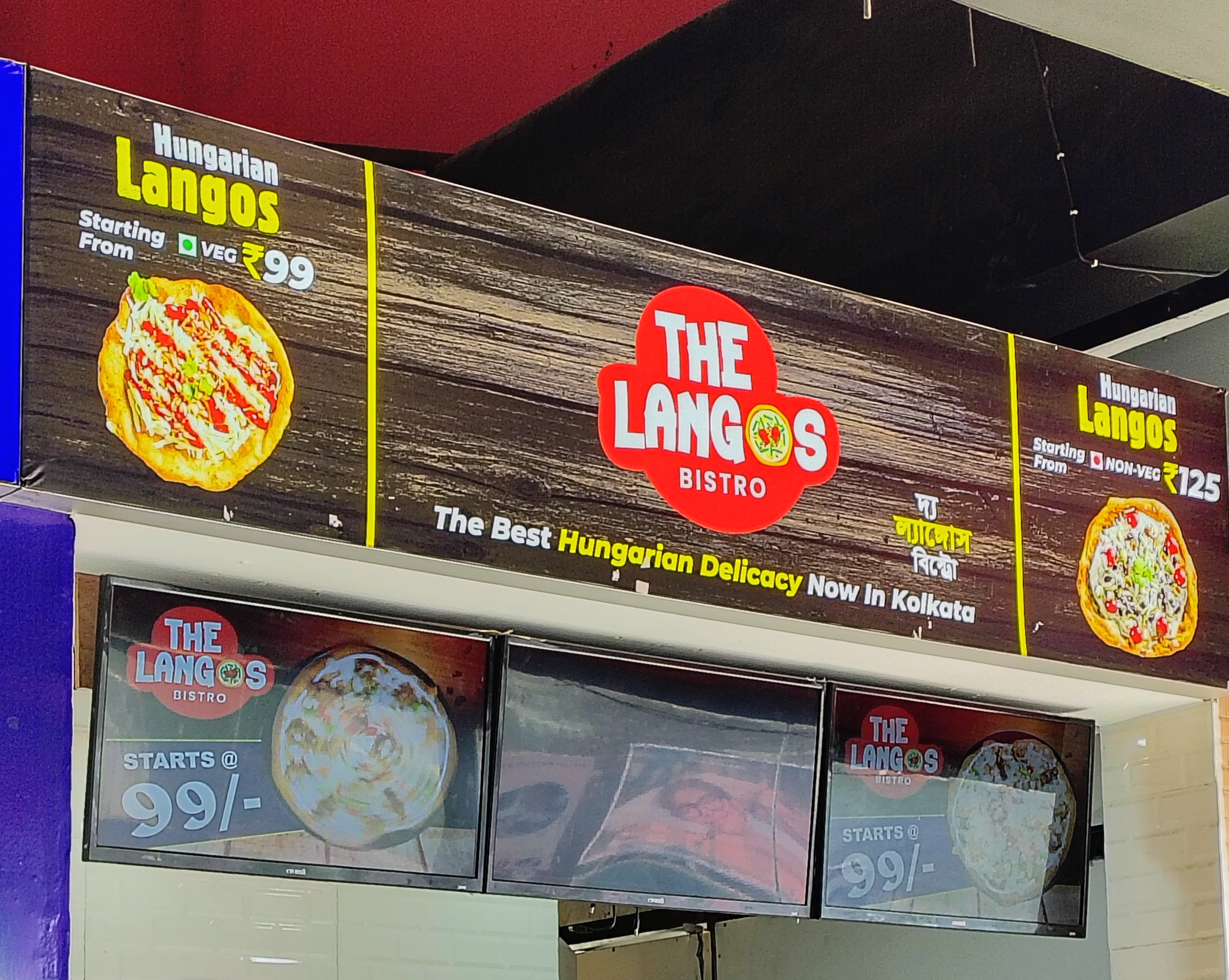 I’d never heard of Langos before, and find it slightly strange that I’m first coming across this Hungarian snack at a nondescript run down mall in Kolkata. My mum ordered the veggie one for 99 rupees.