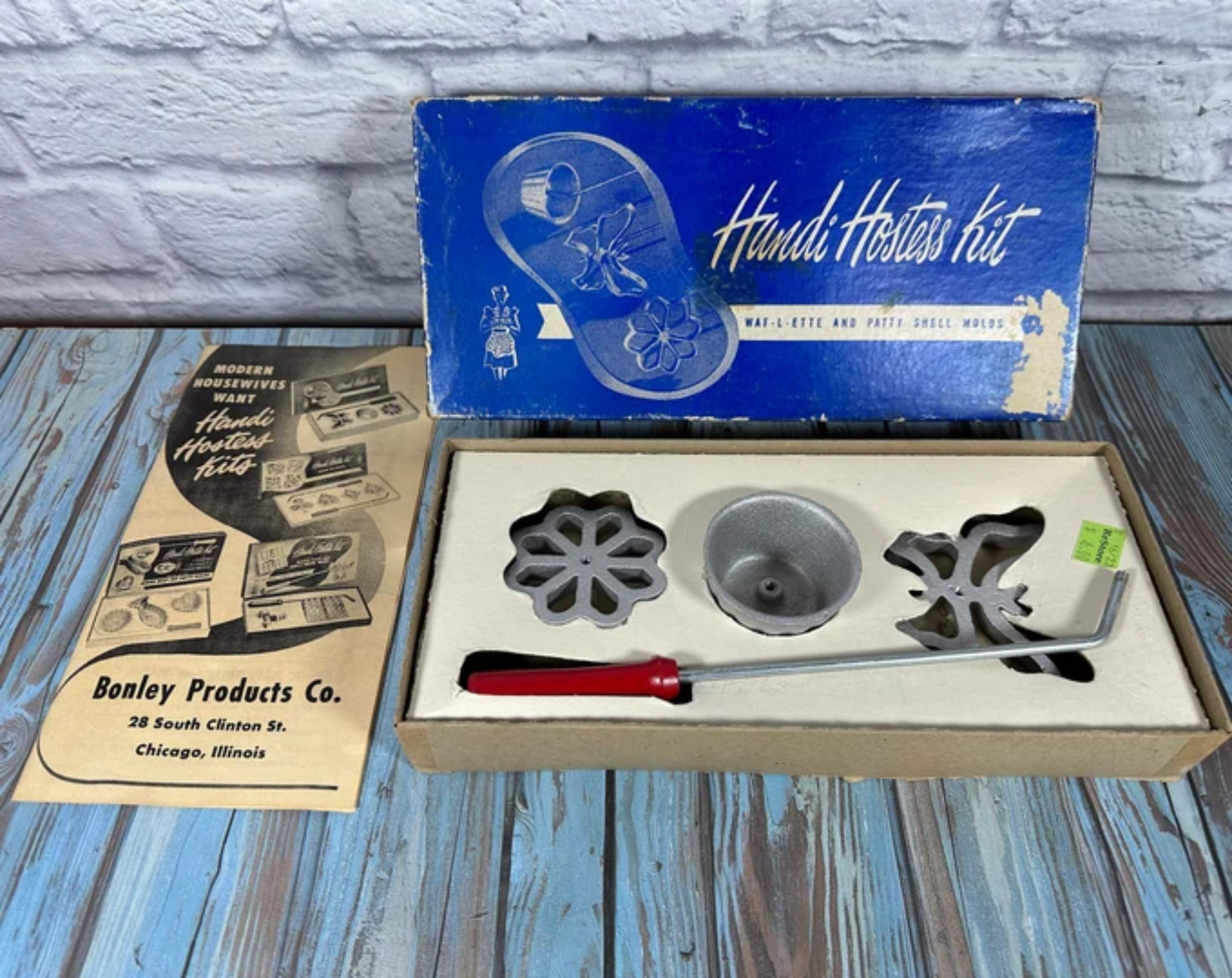 The mould used is known as the pattie shell mould, as seen in this vintage set produced in the United States in the 1950s.