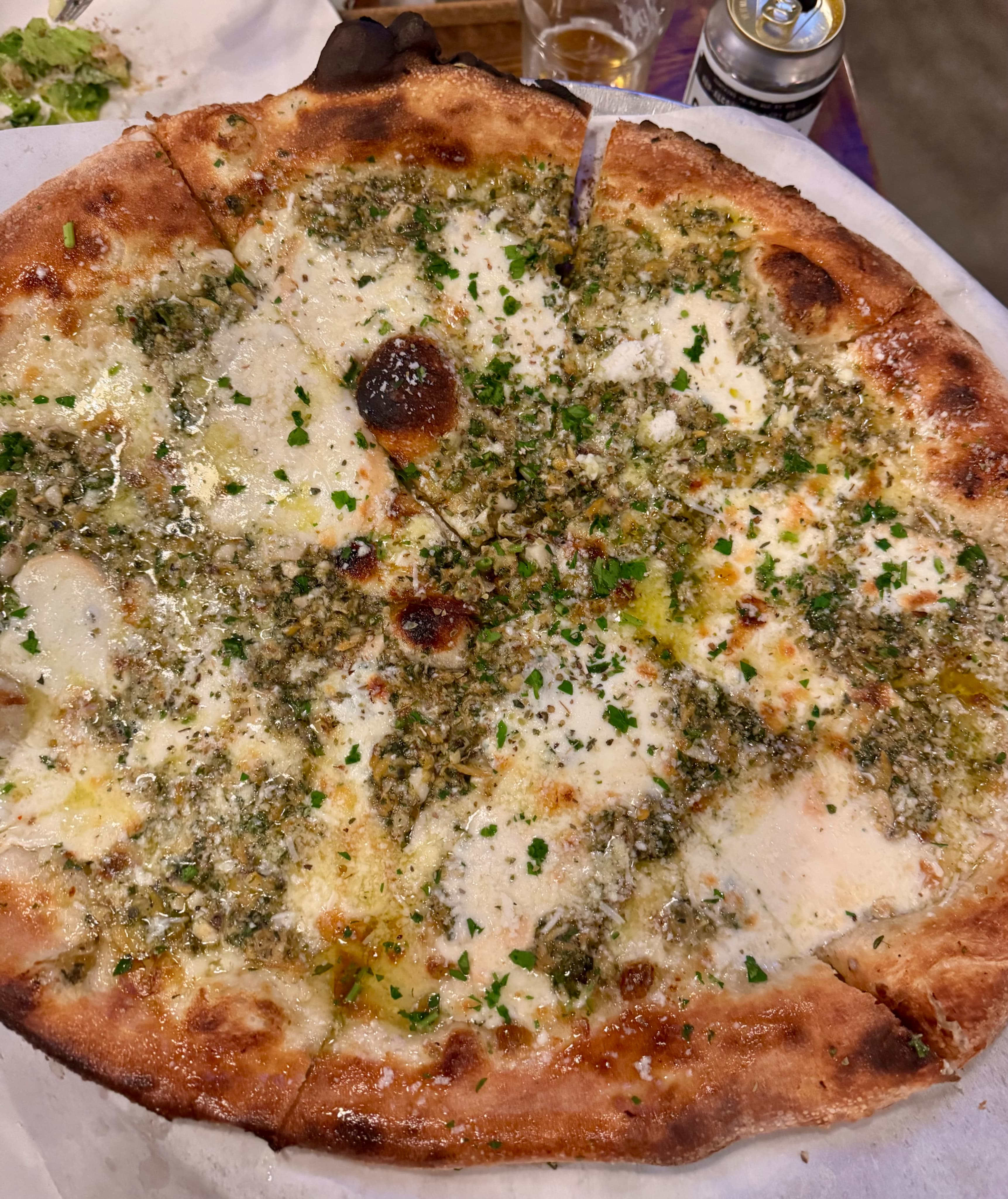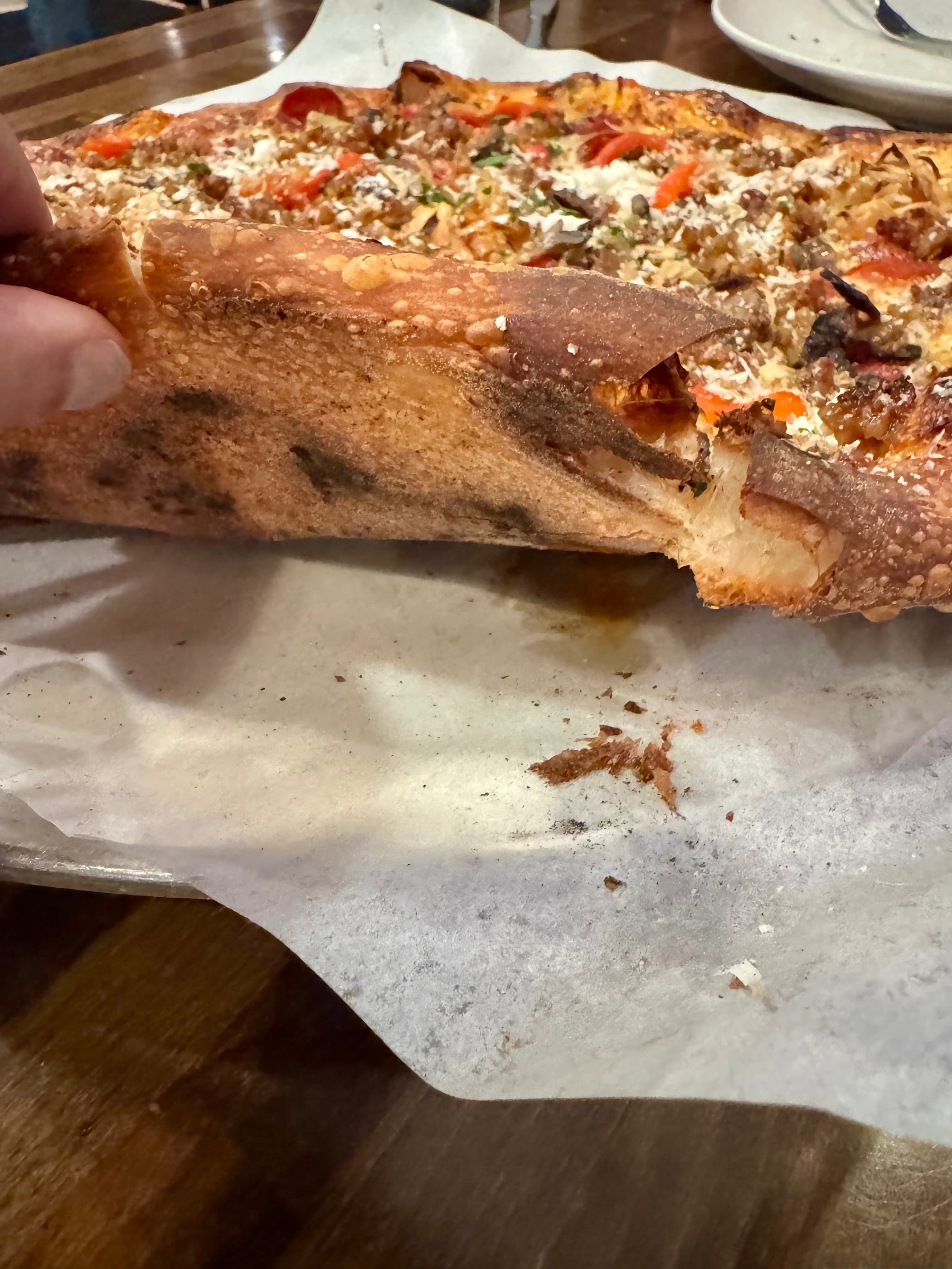 New Haven style pizza in SoCal? Who would have thought. The crust was great, but they overloaded the topping so it got soggy. I would get something simpler next time. The clam pie had really finely minced clams with not too much flavor - I’m a sucker for clam pie so had to try it, but wouldn’t get again. Caesar salad was really good with a combination of kale and romaine, anchovy dressing and tie spiced salt mix sprinkled on top.