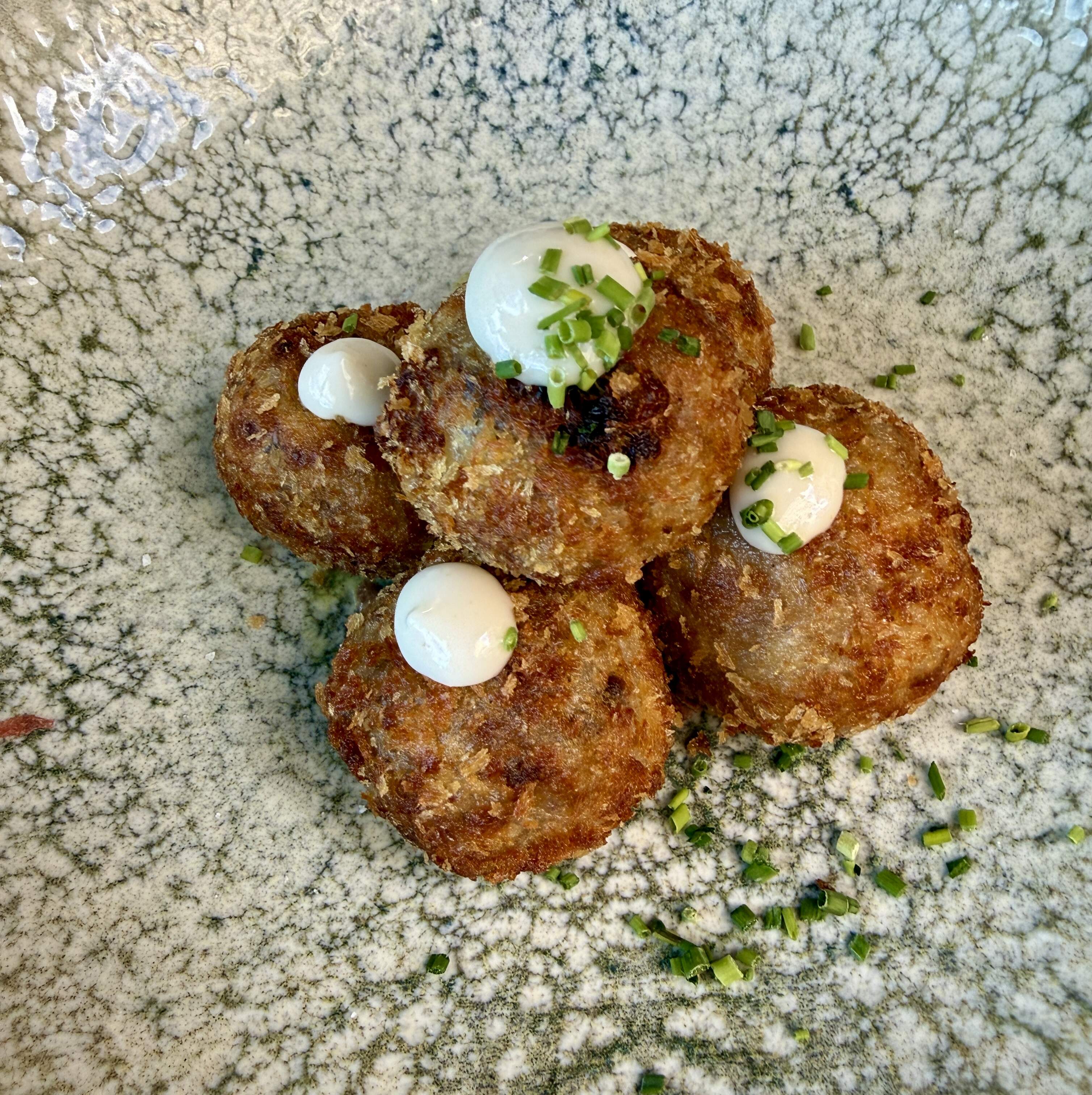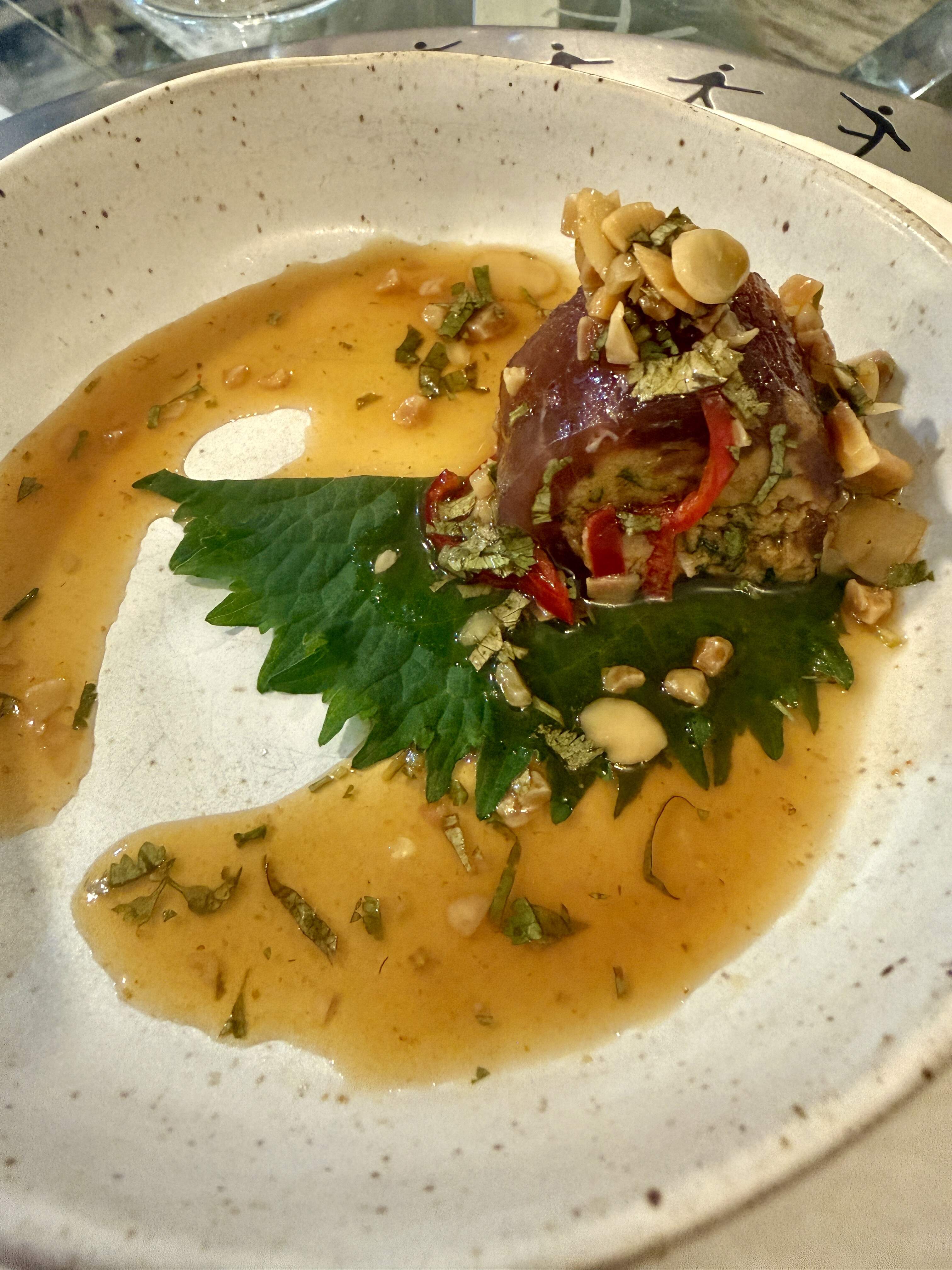 Gofio maki. Their most promoted dish. Essentially instead of rice they use gofio (bland of different meals, but predominantly corn). It’s a bit difficult to understand the plate. I think the seasoning was very reasonable, but the texture of the cornmeal didn’t work well with the fish.