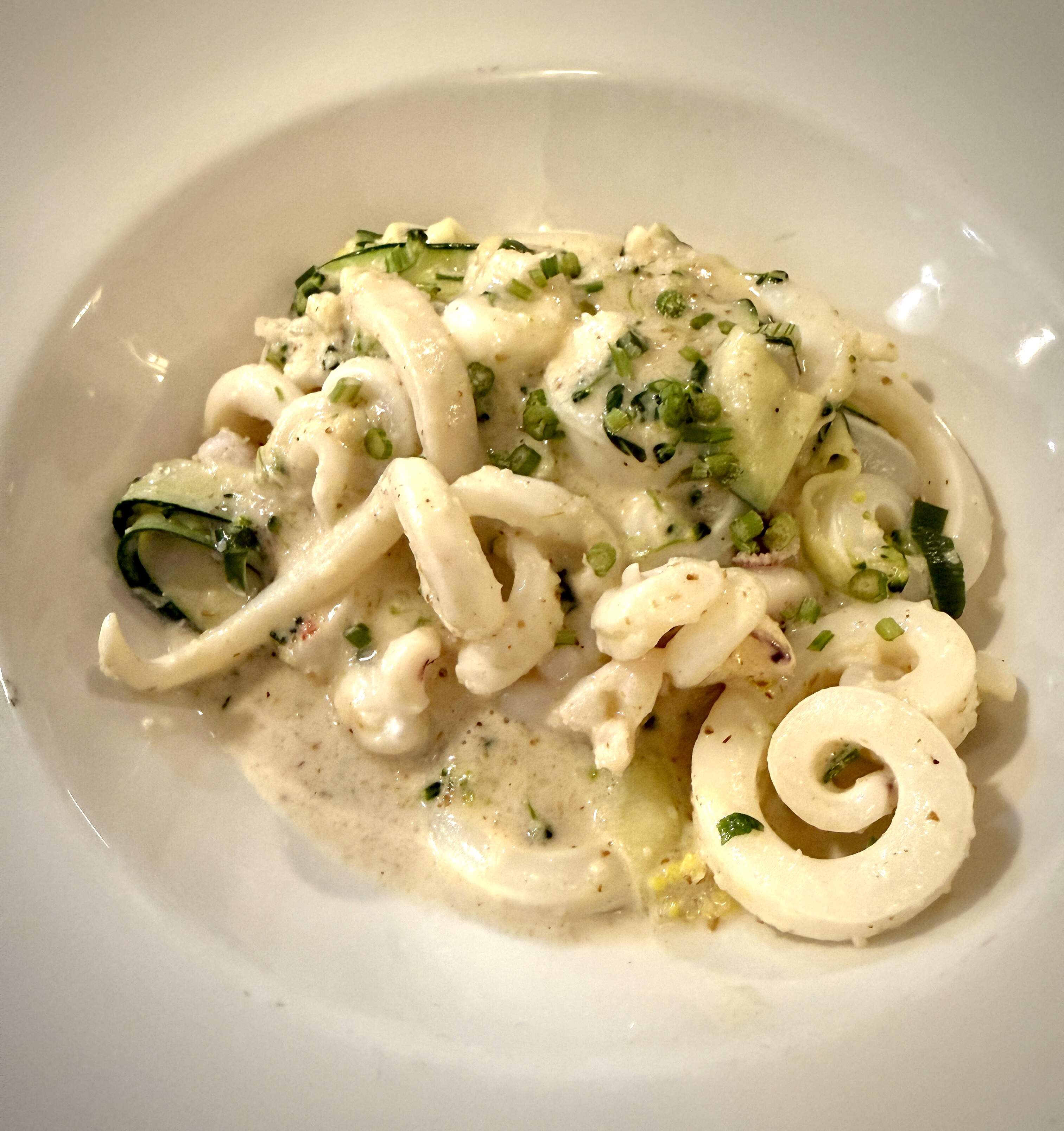 Coconut mojo. Baby squid with shredded zucchini. Very flavorful play on the pasta dish. Excellent.