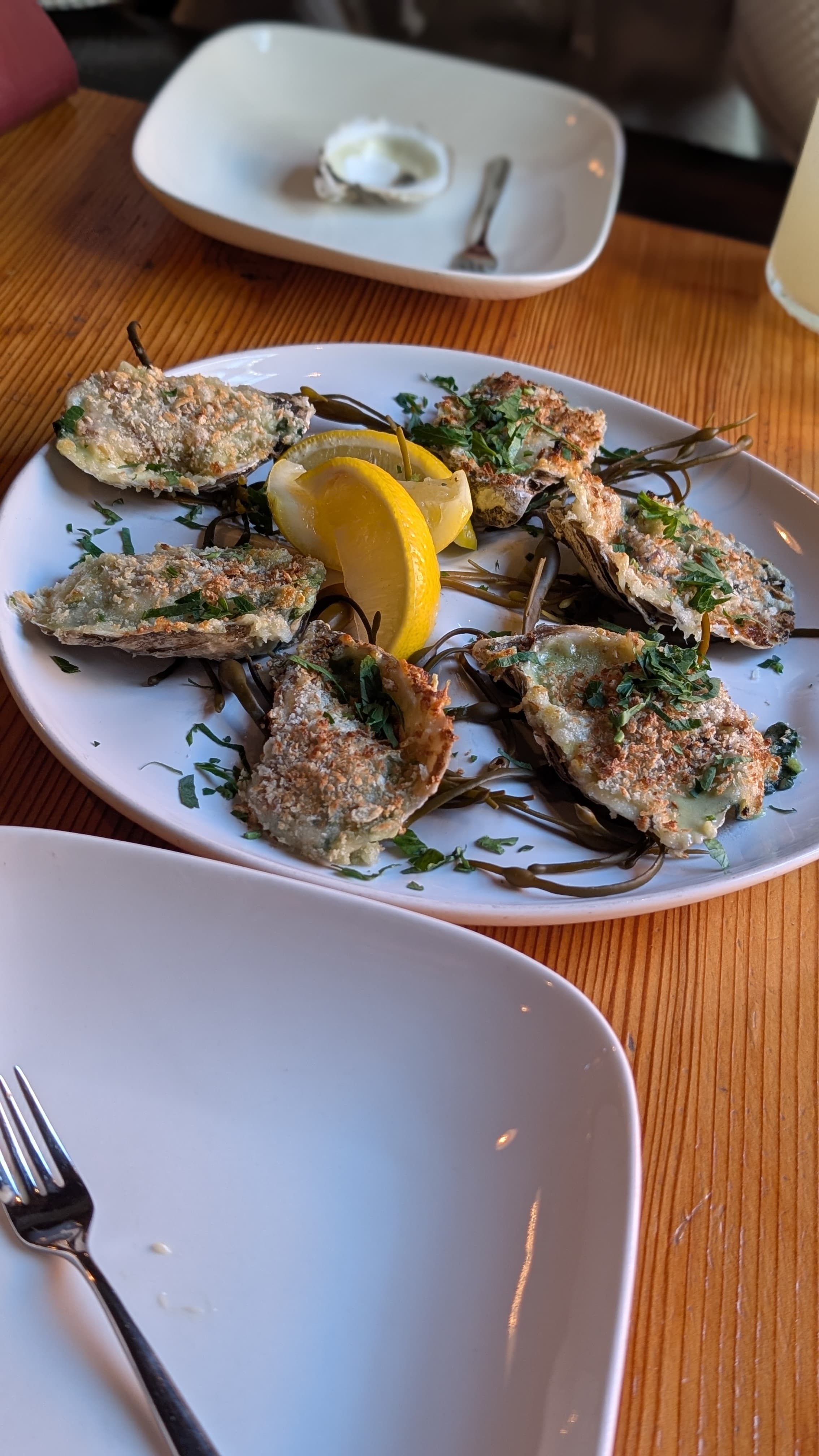 Tried lobster roll at pure spirits at the distillery meh. Nothing special imo as lots of filler (at that price point I expect more) oysters were not good at all went with the cooked type as friendâs prefer them that way