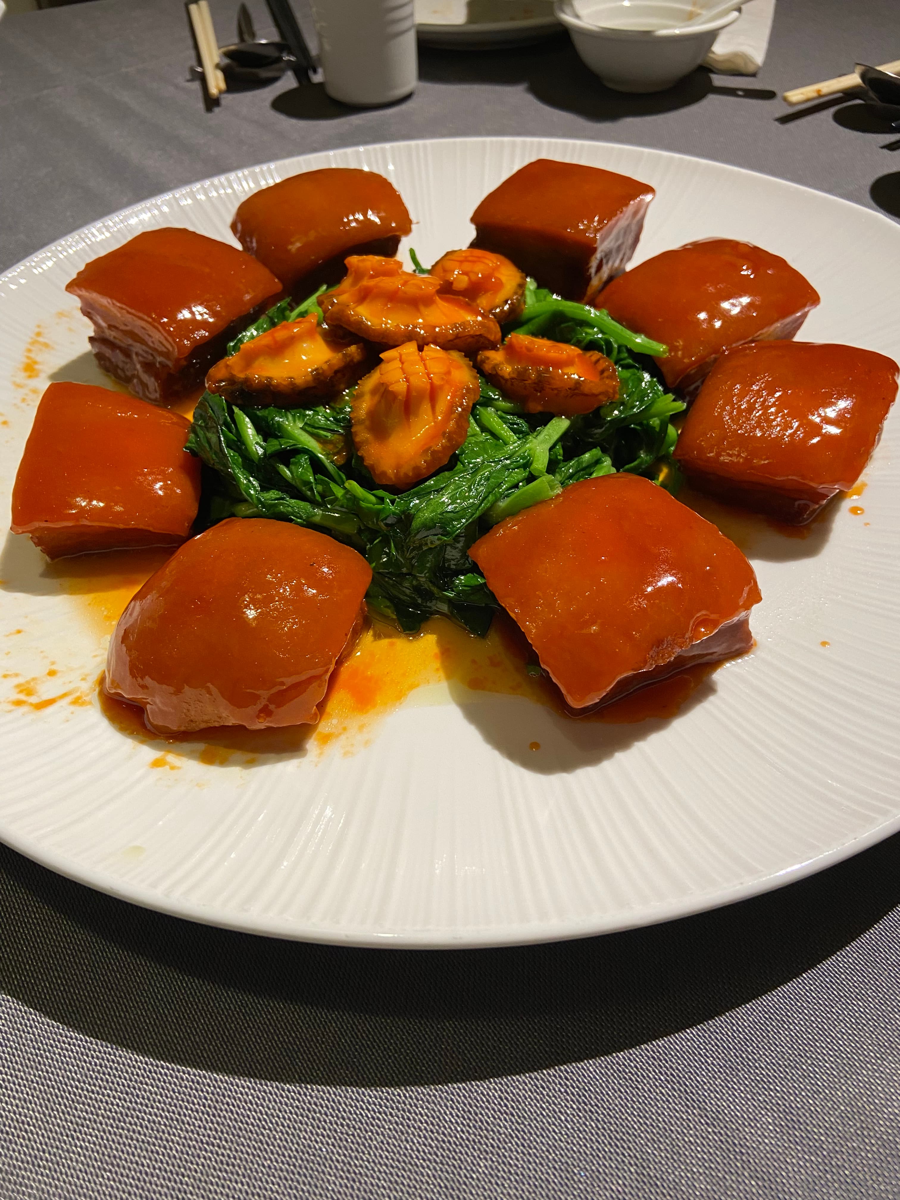 Red Braised ‘ Dong Bo ‘ Pork with Abalone ( Really huge portion! Tasty, fattening, gelatinous goodness! )